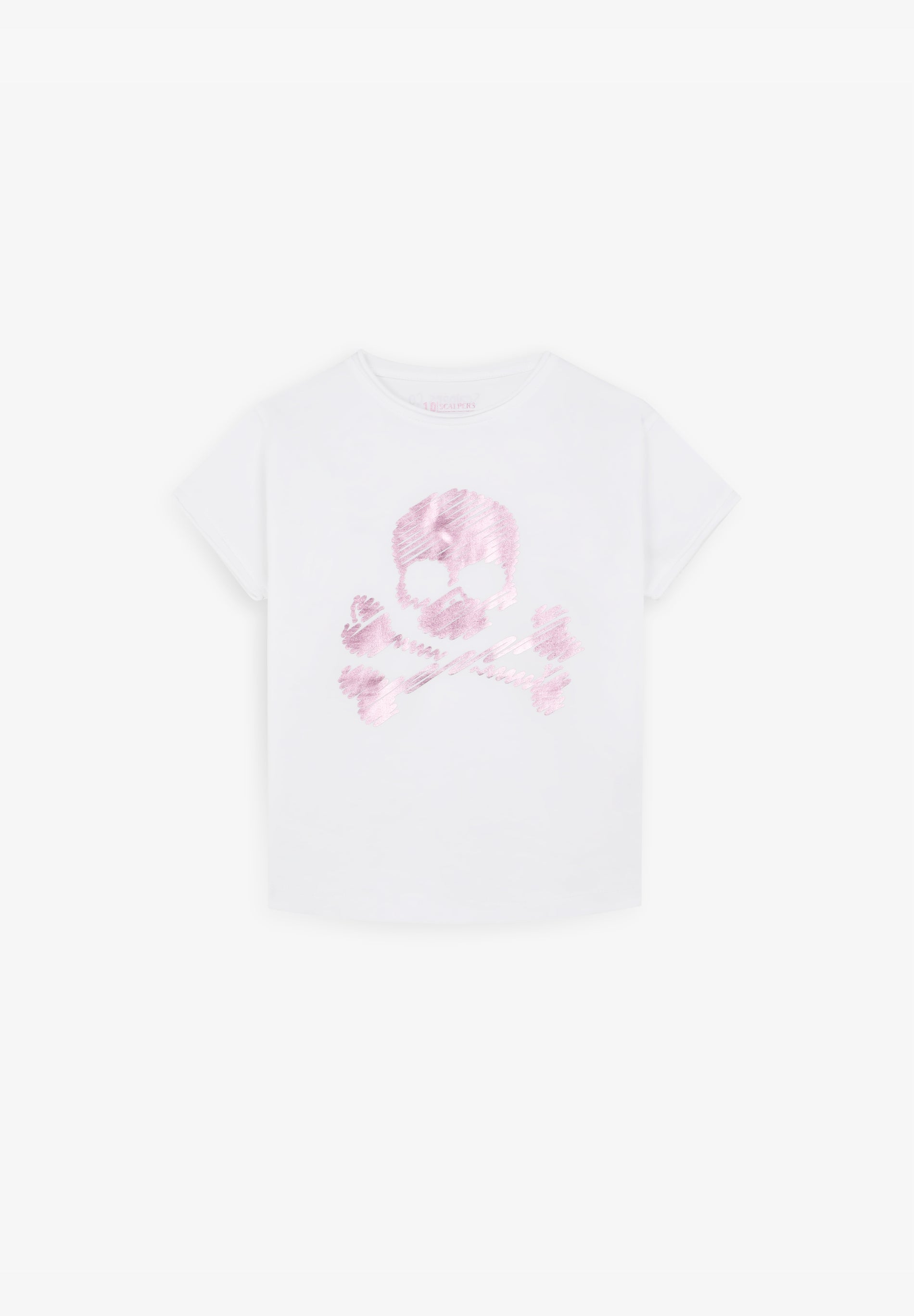 T-SHIRT WITH THREE-TONE EMBROIDERED SKULL