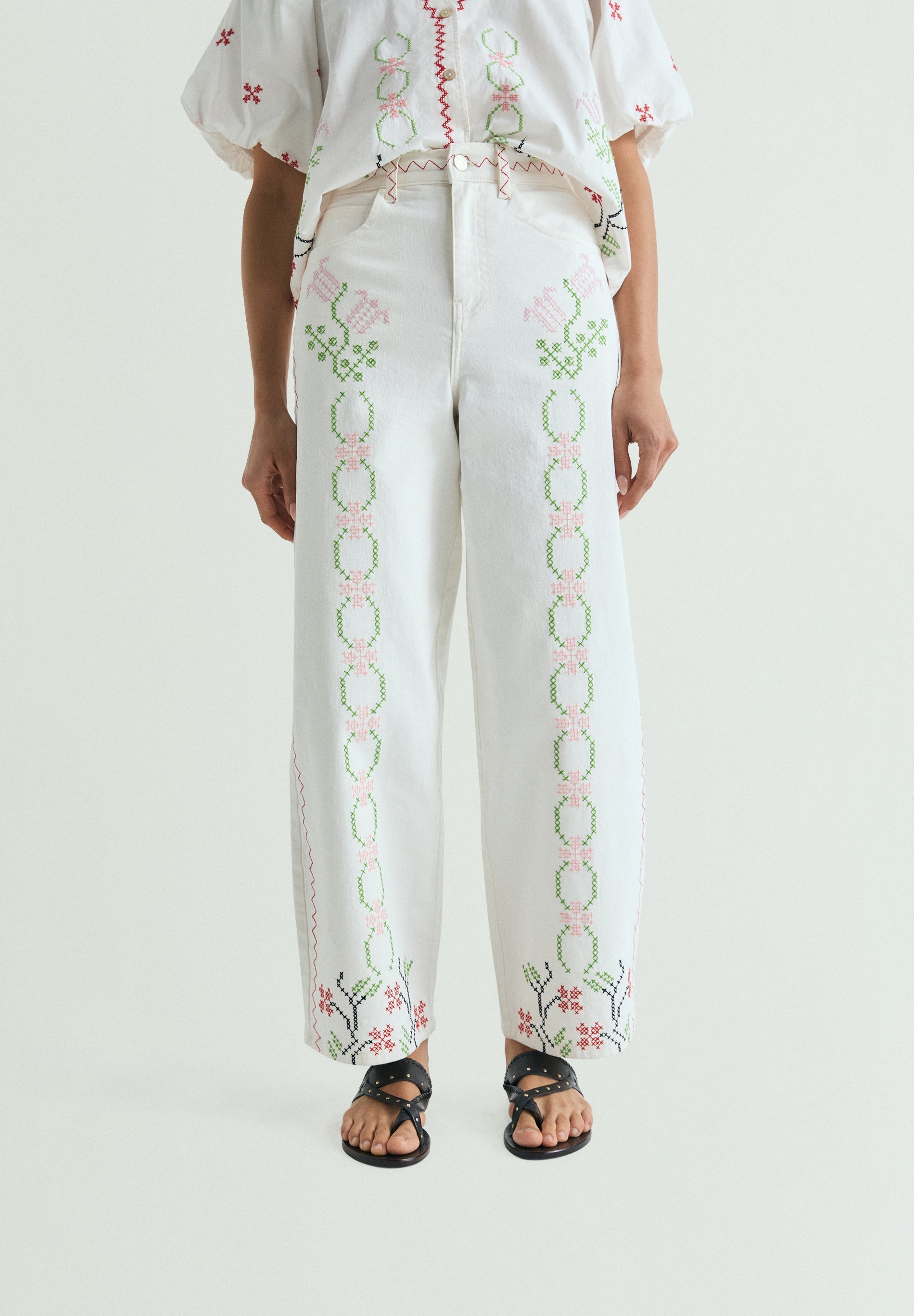 JEANS WITH CONTRAST EMBROIDERY