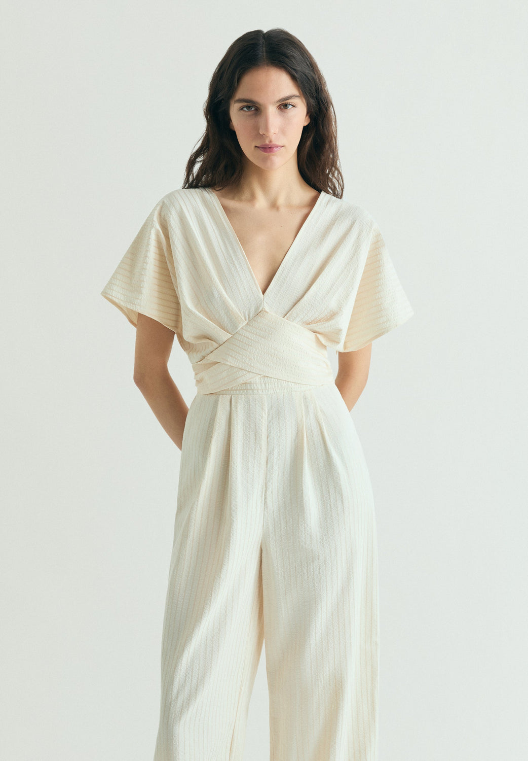 STRIPED JUMPSUIT WITH CROSSOVER WAIST