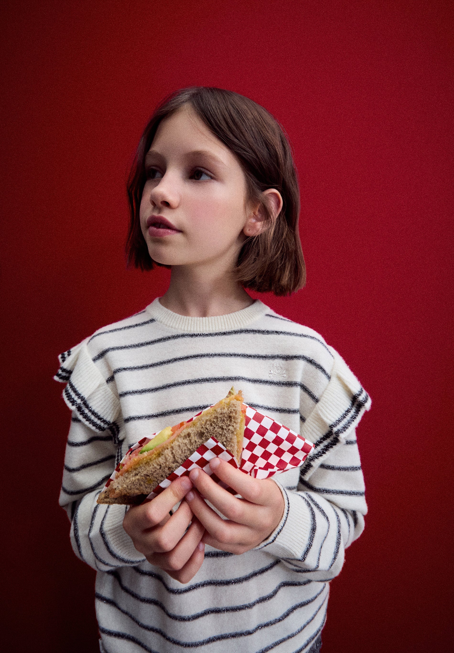 STRIPED SWEATER WITH RUFFLE