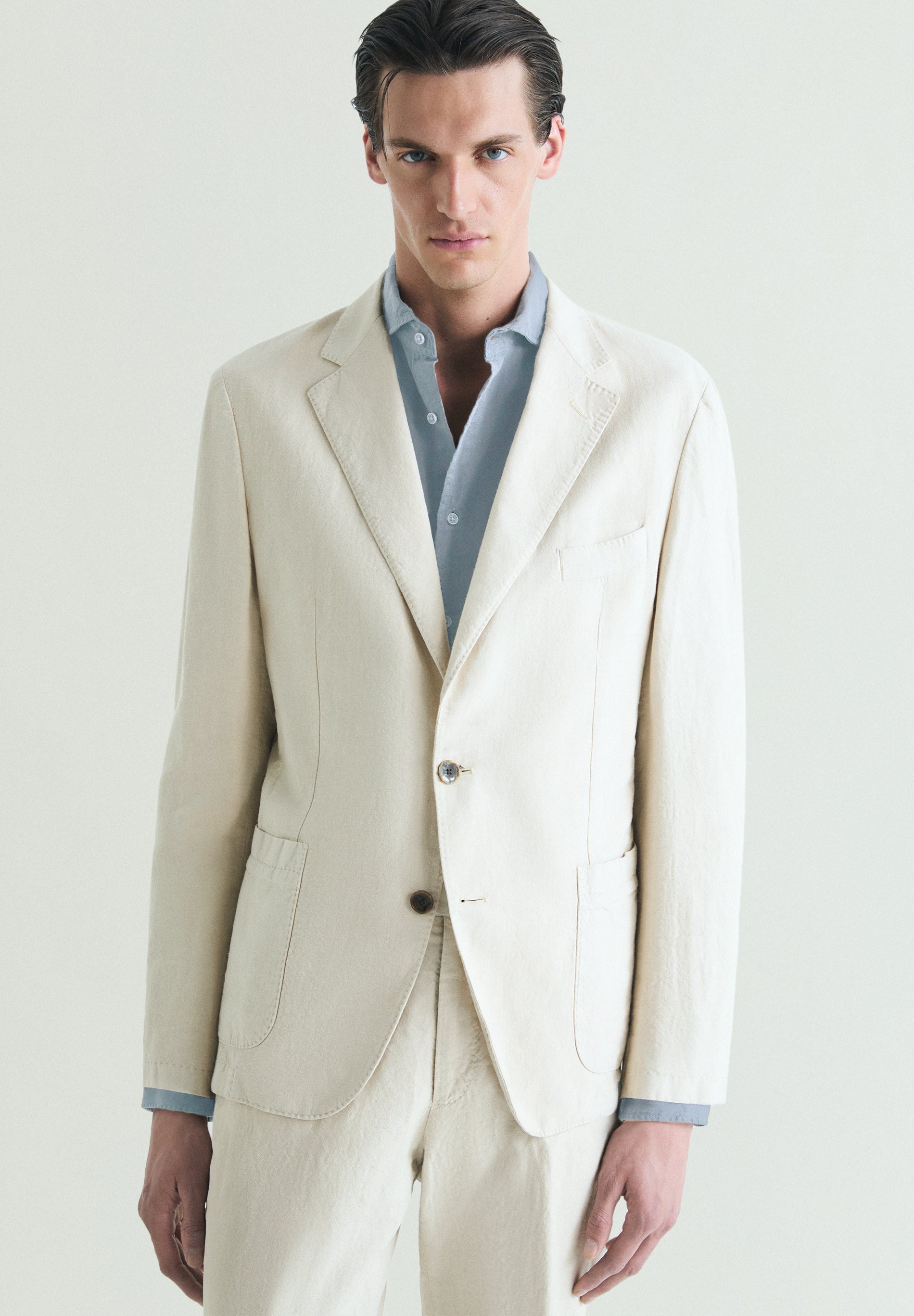 DOUBLE-BREASTED LINEN SUIT BLAZER