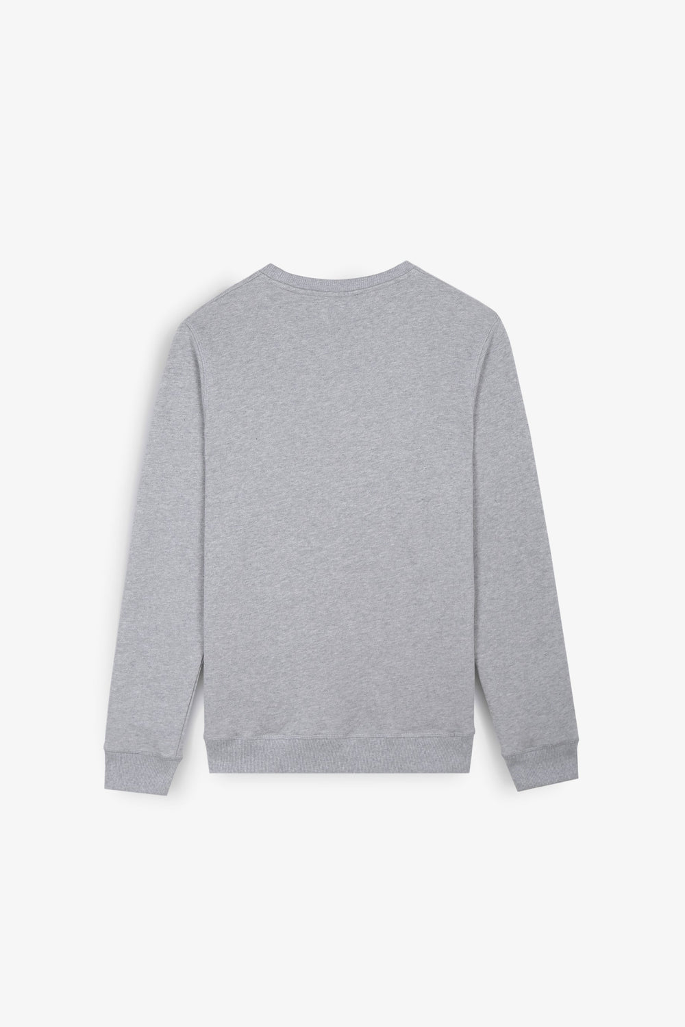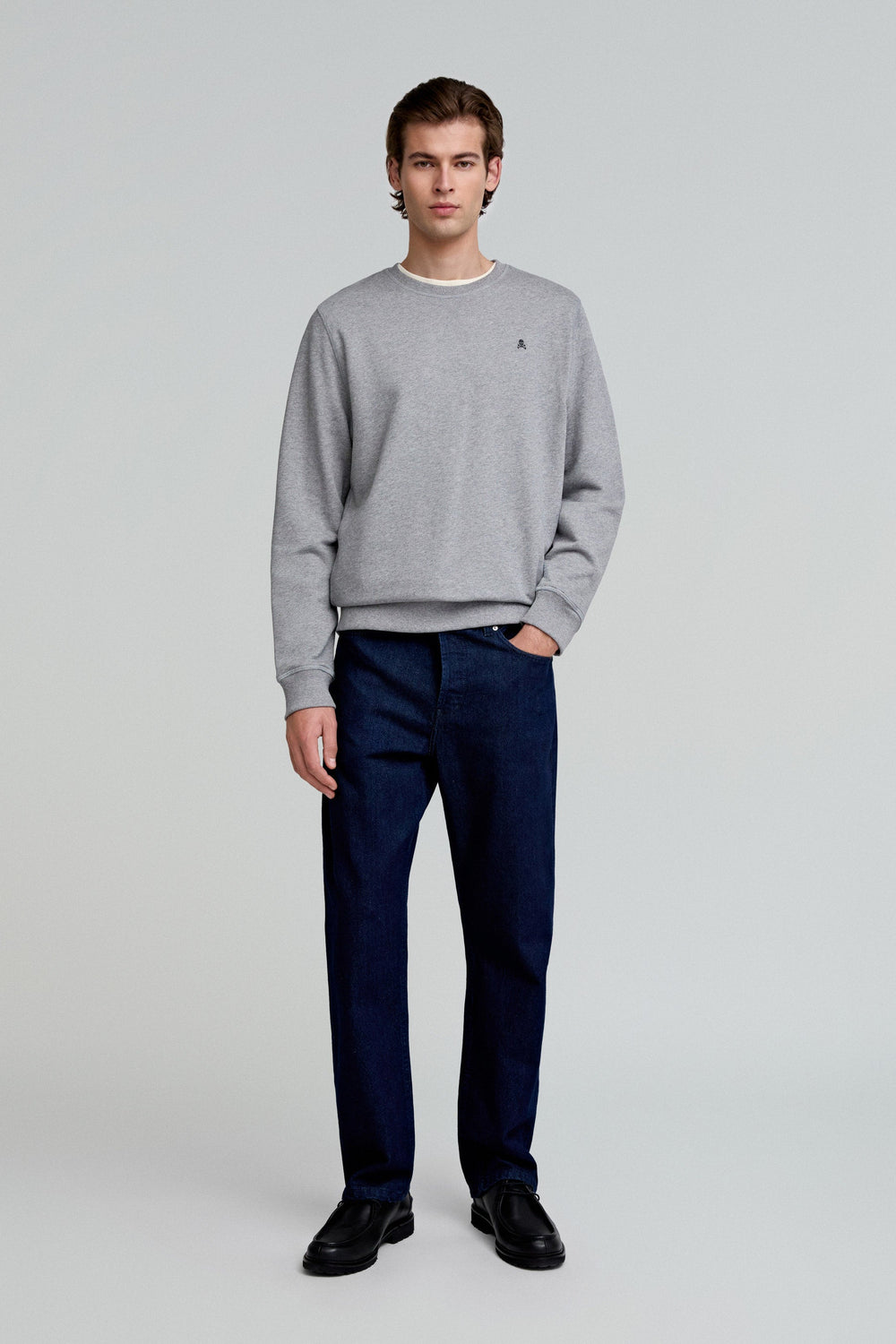 - Coupe droite, col rond et manches longues à poignets en bord-côte.