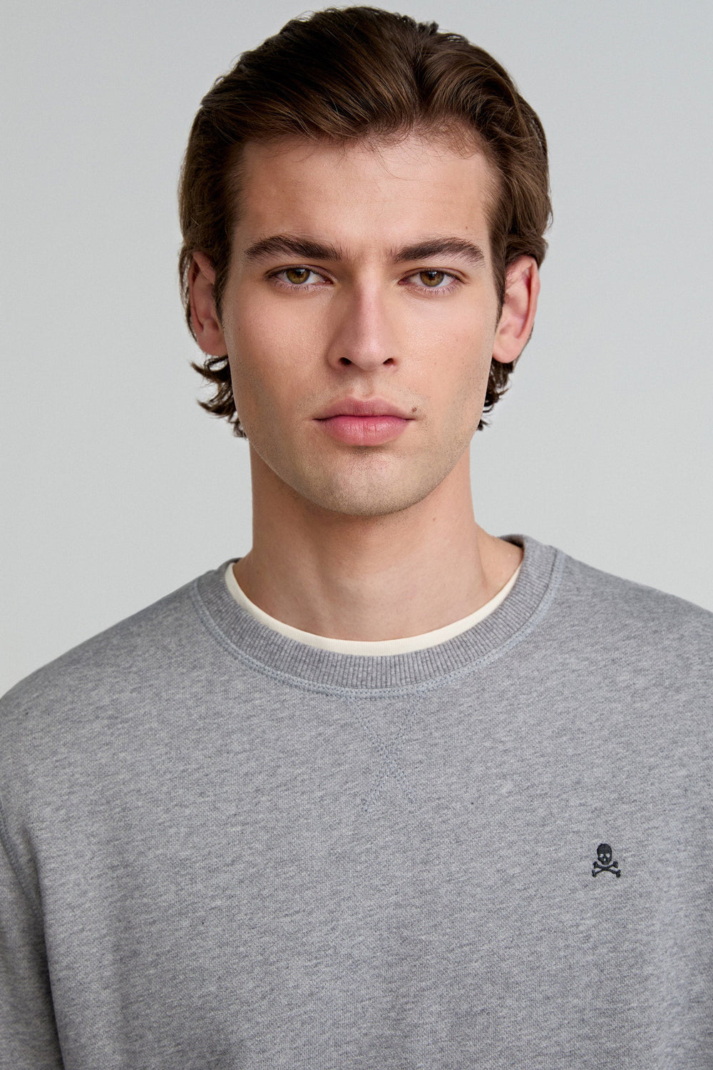 - Détail cousu en croix au col, étiquette décorative aux poignets et skull brodé ton sur ton sur la poitrine.