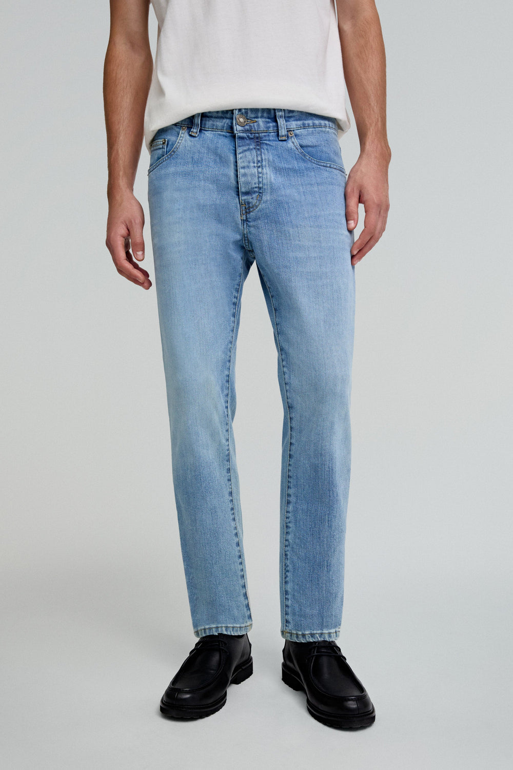 Jeans effet délavé. Coupe slim, boutons cachés par patte de boutonnage et cinq poches. Avec passants. Détail brodé sur la poche arrière. Big and tall collection. Big and tall est une collection capsule qui propose des vêtements basiques, conçus pour les personnes grande taille ne trouvant pas ce qui leur convient parmi les produits de la collection.