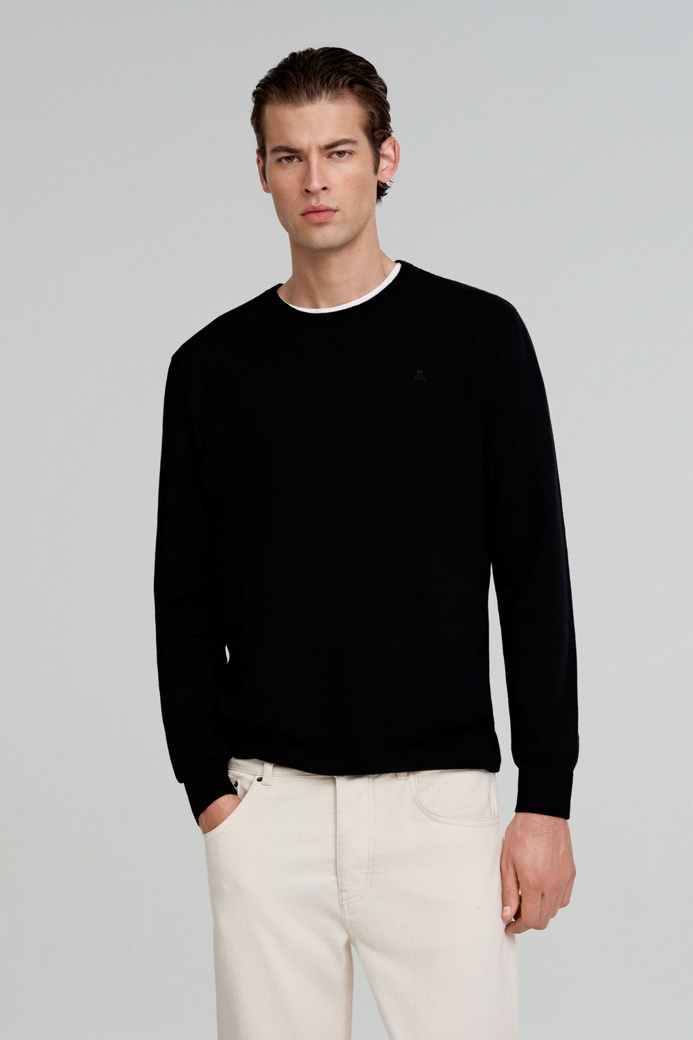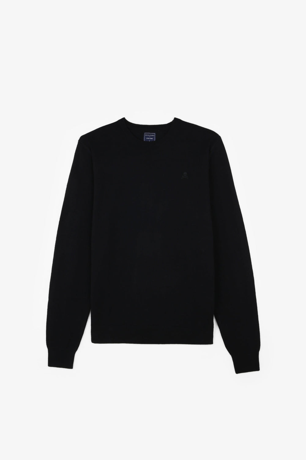 Pull en tissu coton BCI et cachemire. Coupe droite, col rond et manches longues. Skull brodé sur la poitrine.