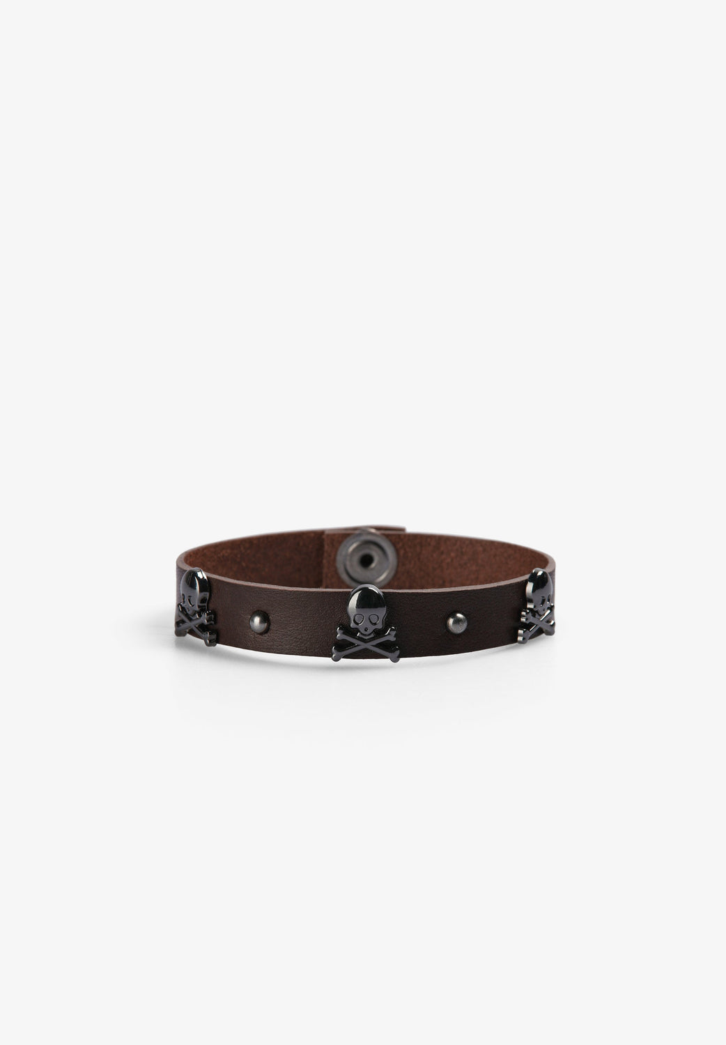 Bracelet en cuir avec clous et logo. Fermeture bouton-pression.