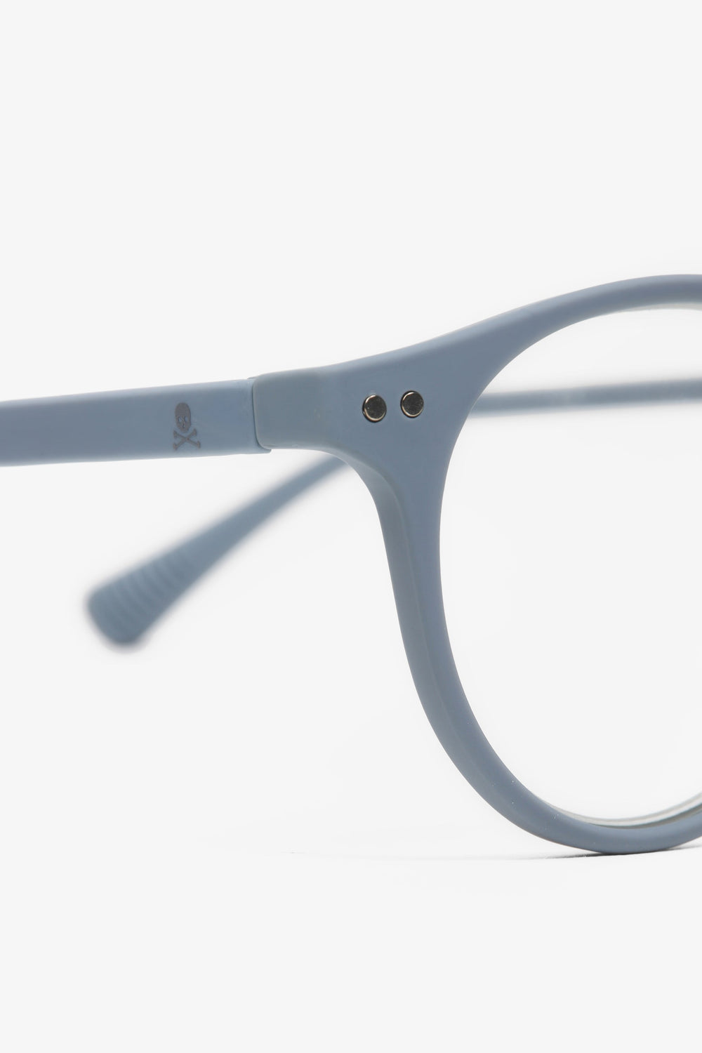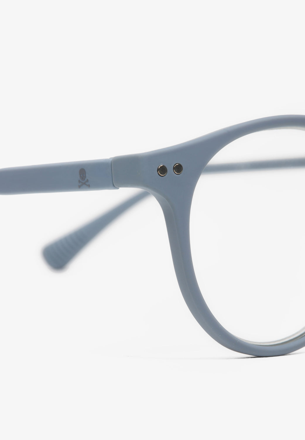 Lunettes rondes en polycarbonate. Verres correcteurs et logo skull sur le côté.
