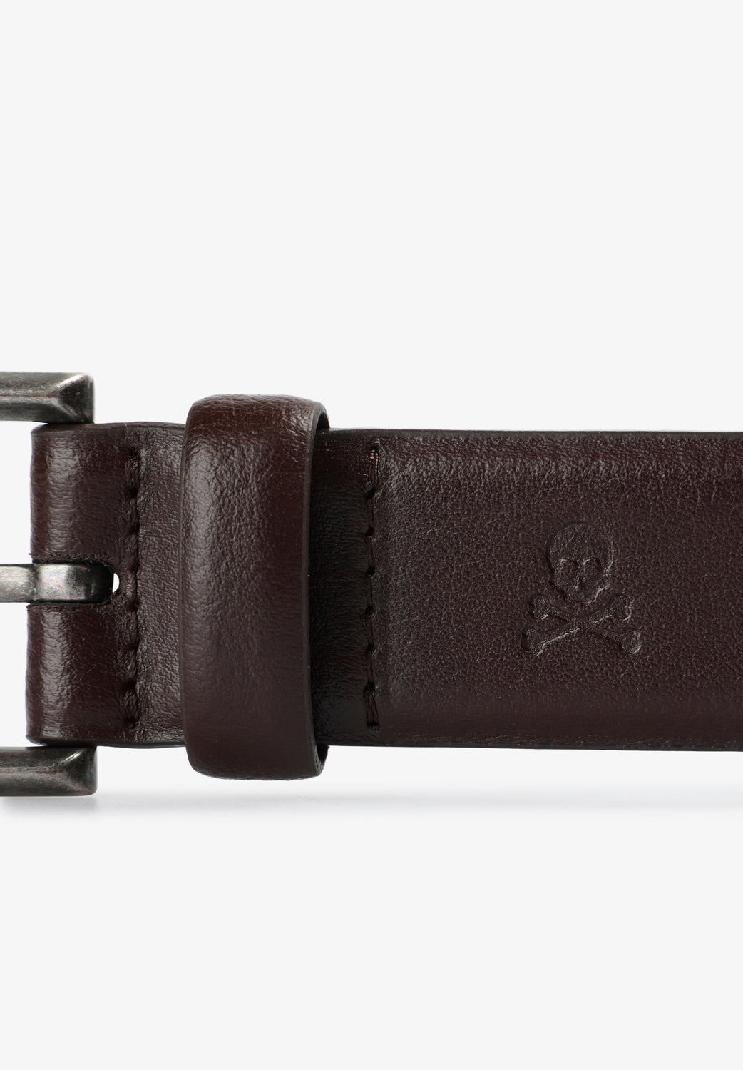 Ceinture 100% cuir avec boucle en métal. Tête de mort en relief.