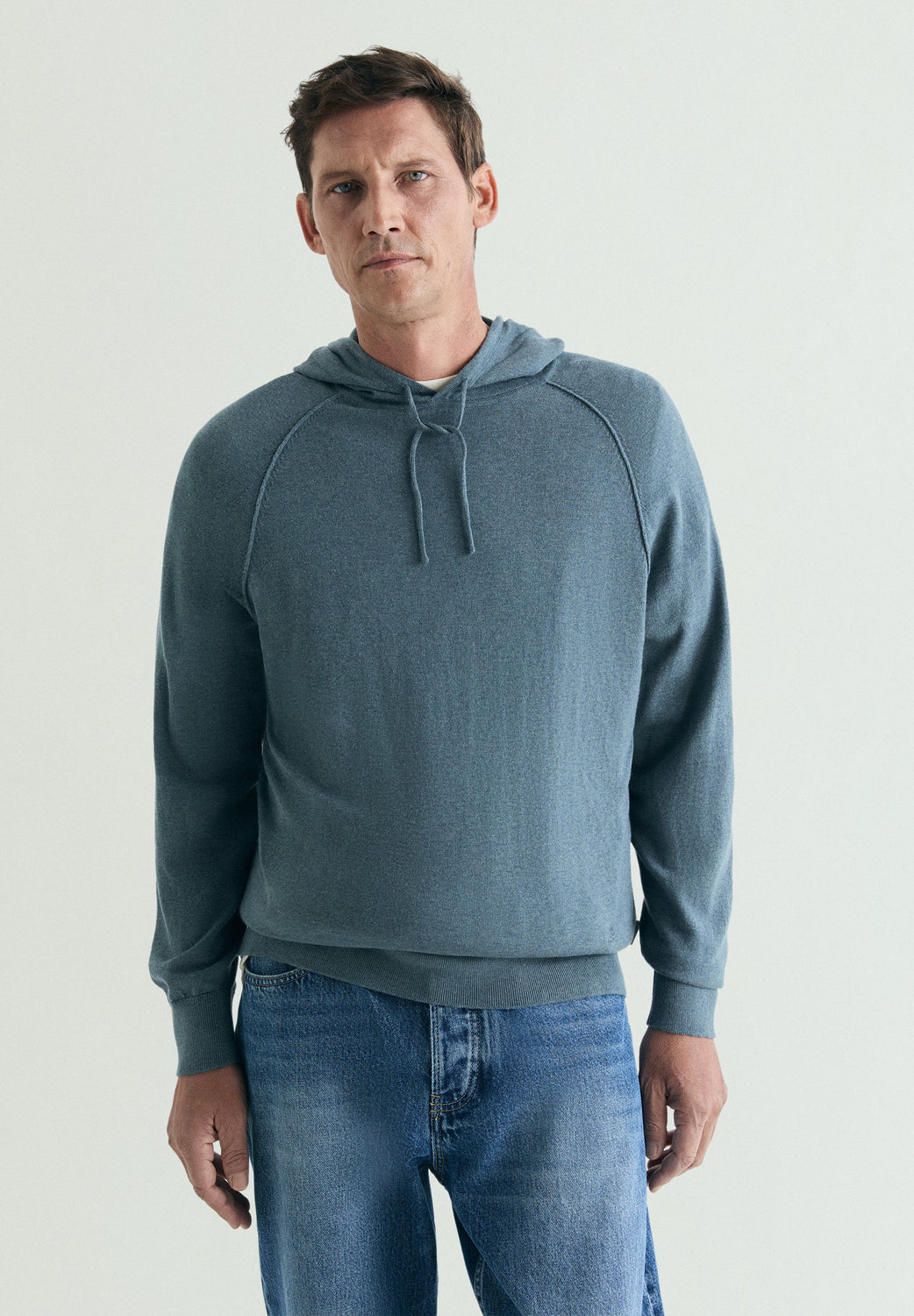 Hooded sweatshirt made of a blend of BCI cotton, cashmere and silk. Long sleeves. Ribbed trim.