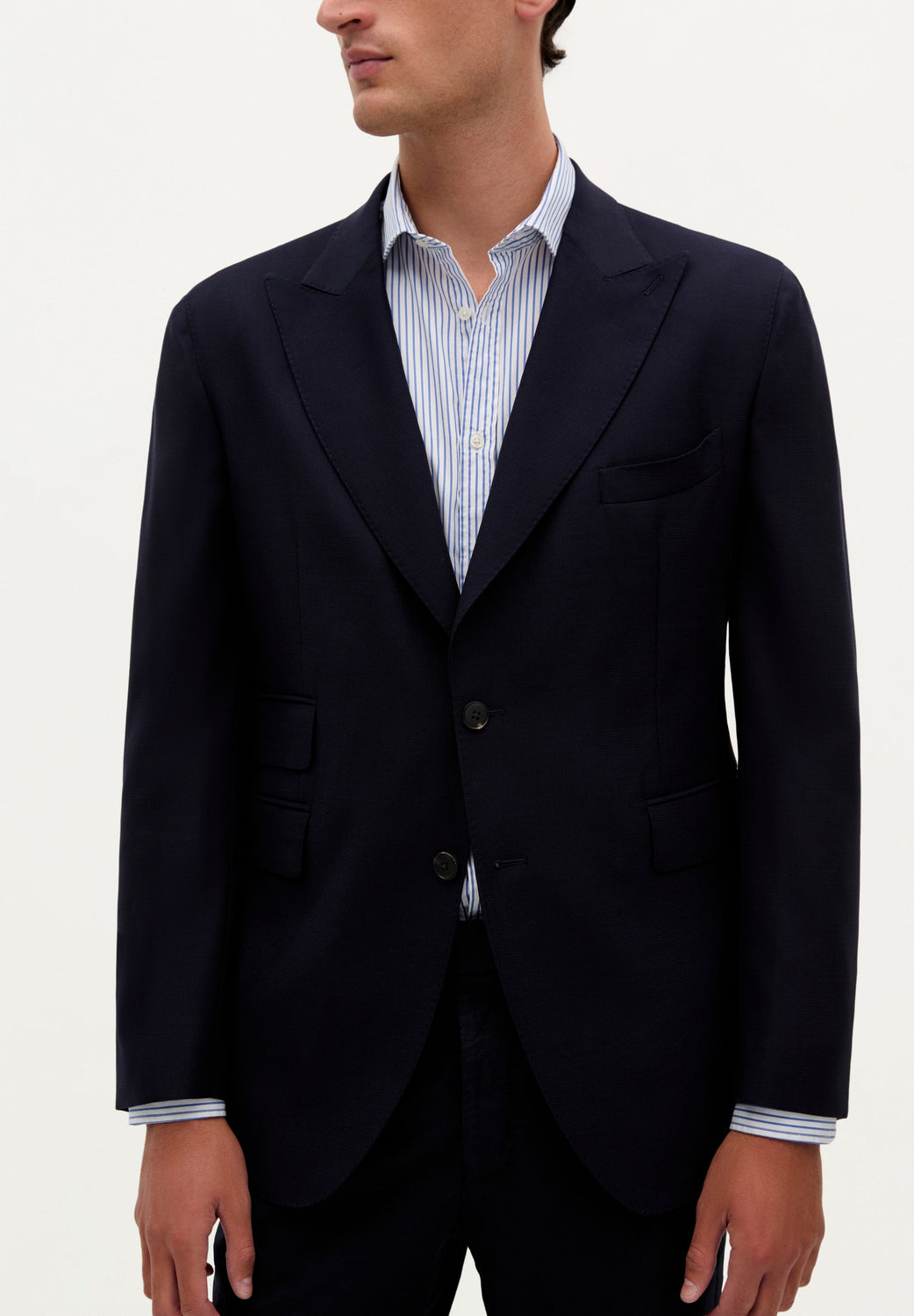 Veste confectionnée dans un mélange de laine. Coupe slim, revers cranté et boutonnière, fermeture avec deux boutons. Manches longues à poignet trois boutons et poches sur le devant. Fentes à l’arrière et poches intérieures.