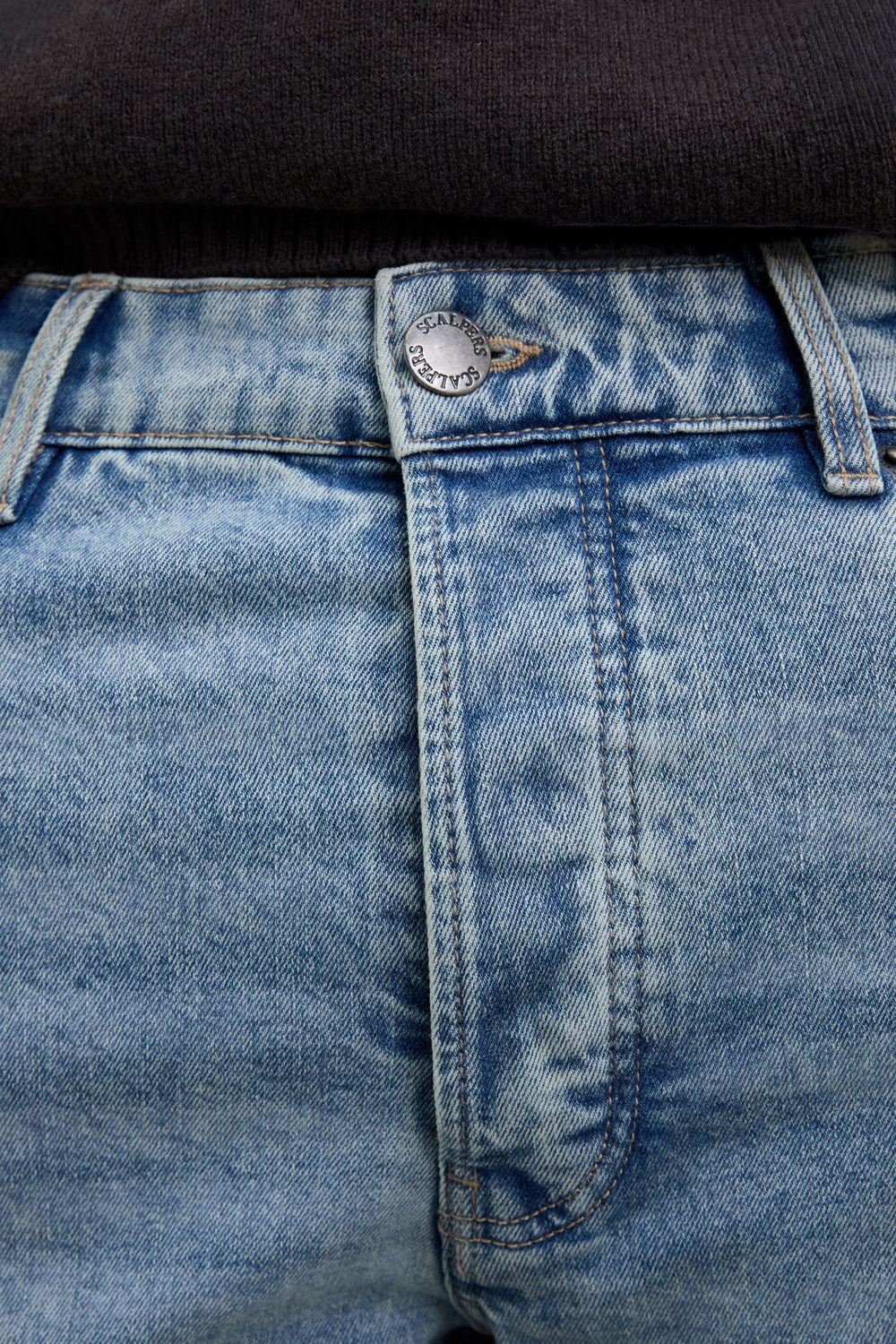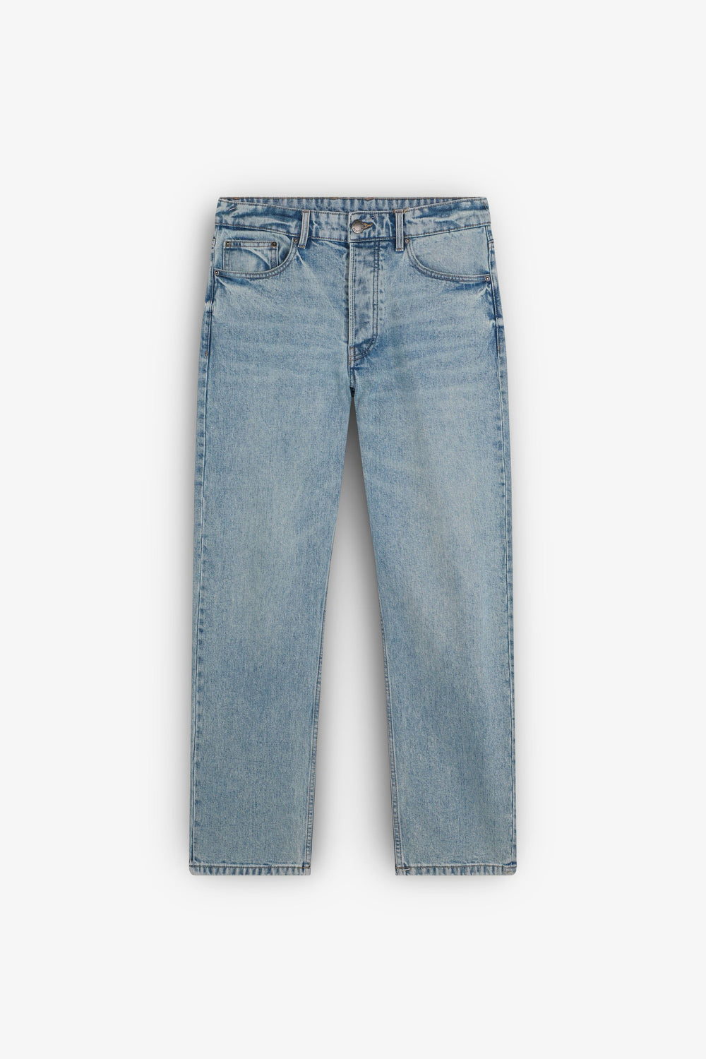Jean en coton BCI légèrement extensible. Coupe droite, fermeture boutonnée et poches sur les côtés et à l’arrière. Passants de ceinture.