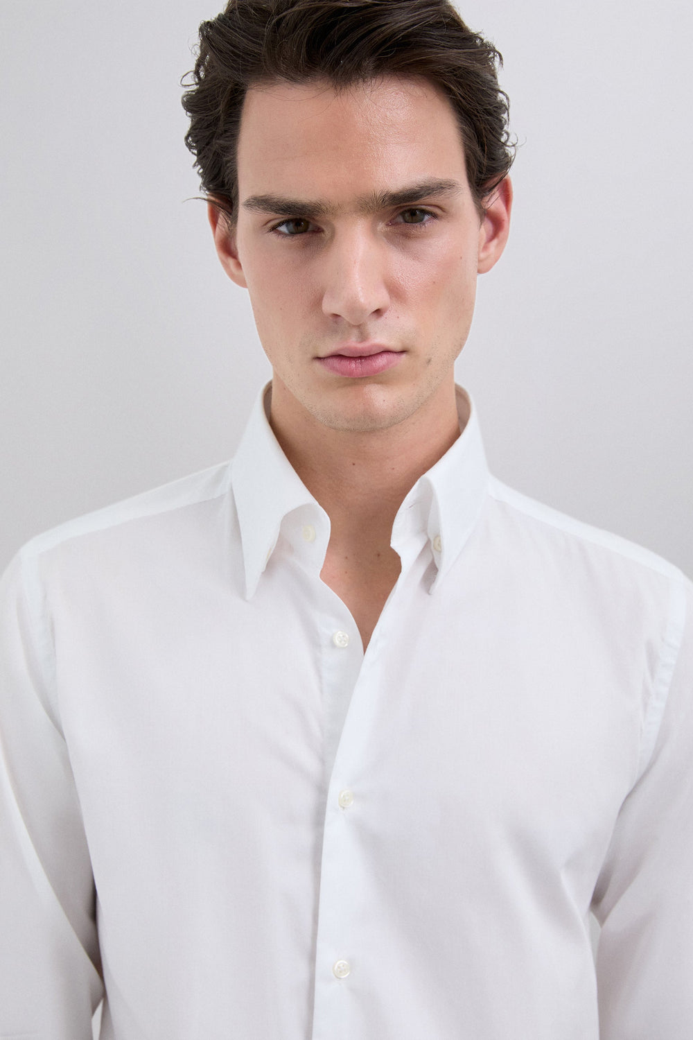 Shirt made of 100% organic BCI cotton. Long sleeves. Adjustable button cuffs. Embroidered logo. Front button fastening. Made in Portugal.