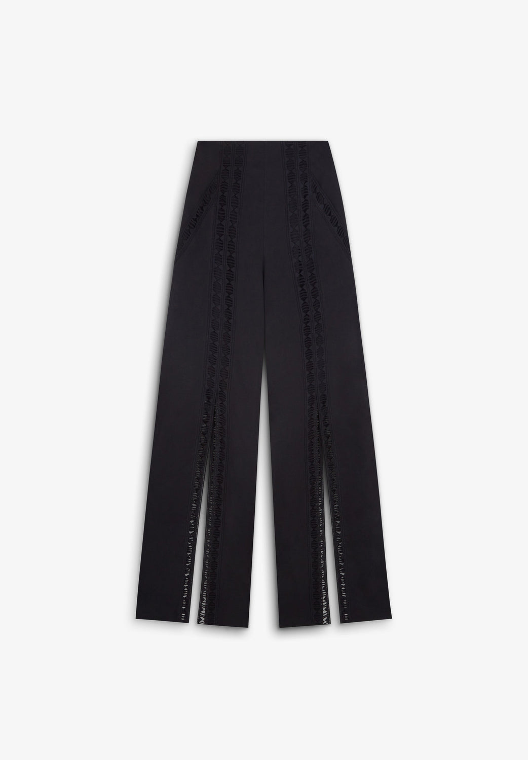 100% cotton trousers with slits and embroidered details. Full length, regular fit.
