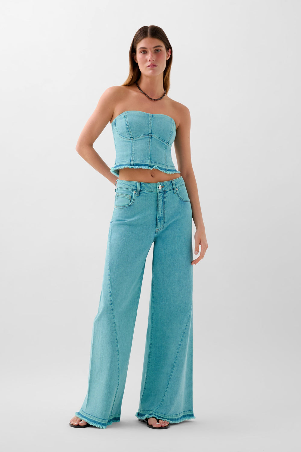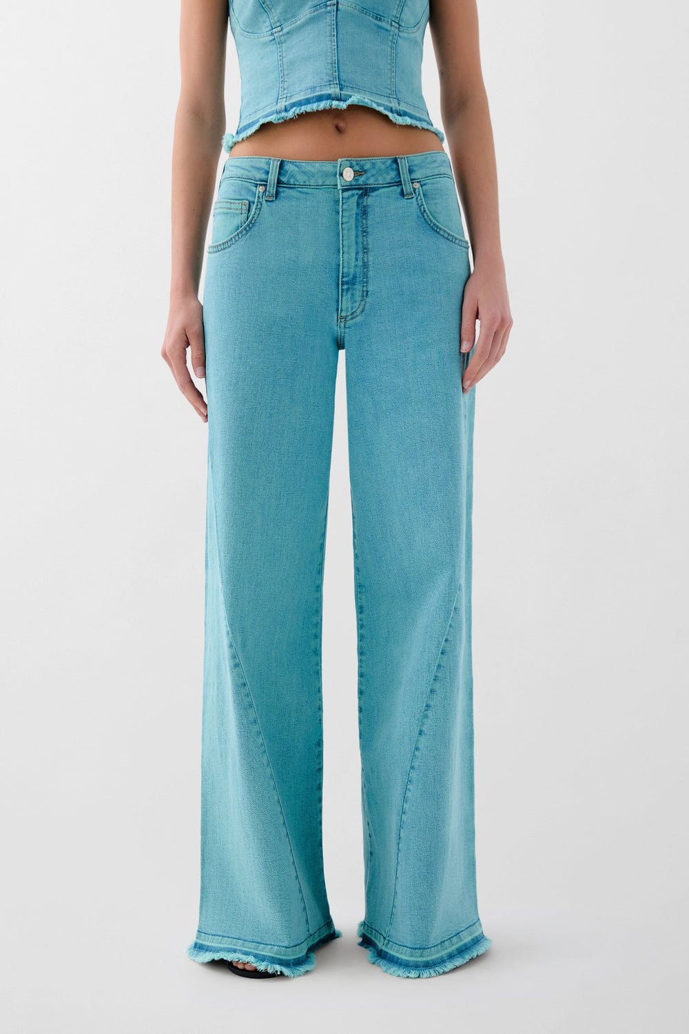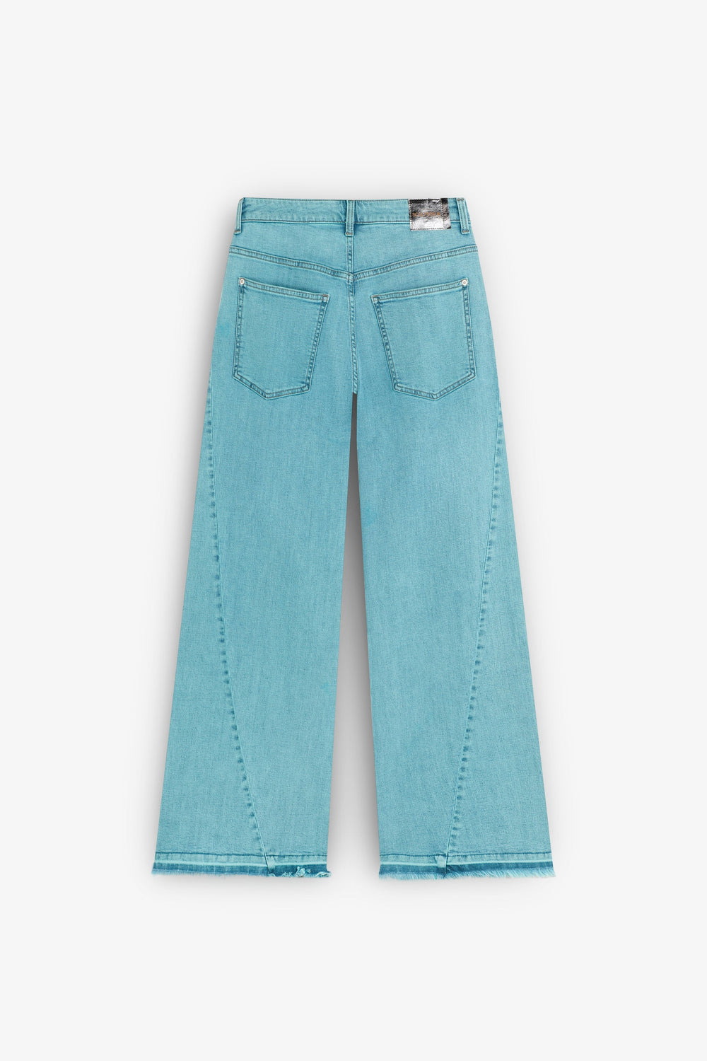 Jeans made of cotton. Regular fit, culotte style, faded. Zip and button fastening. Front slant pockets and back patch pockets Frayed hems.