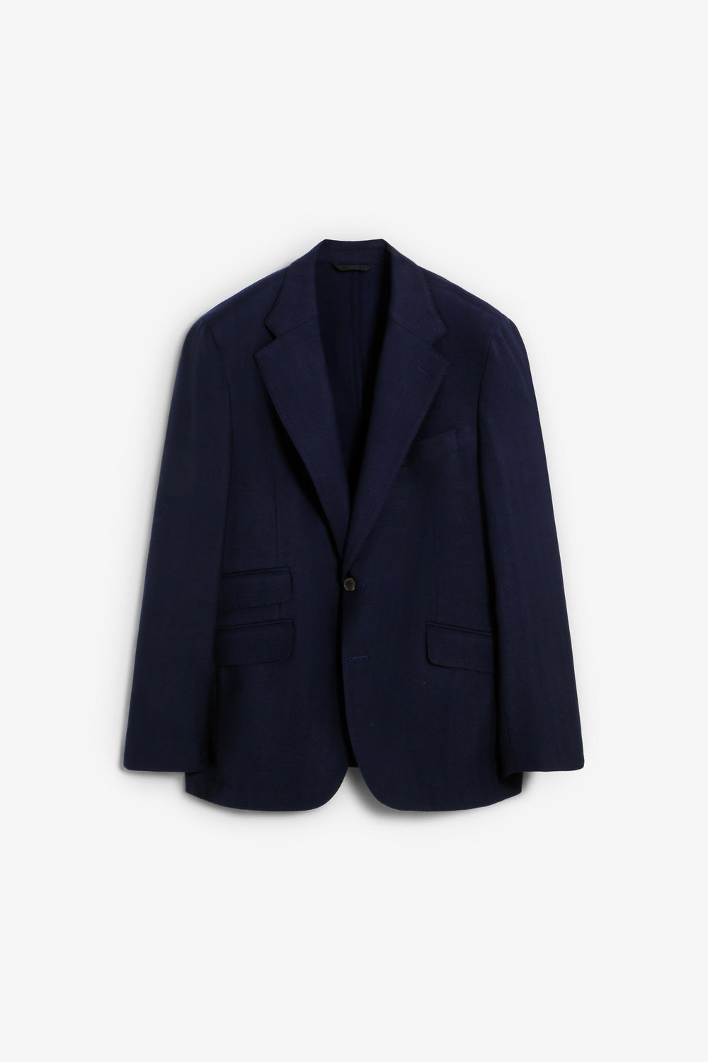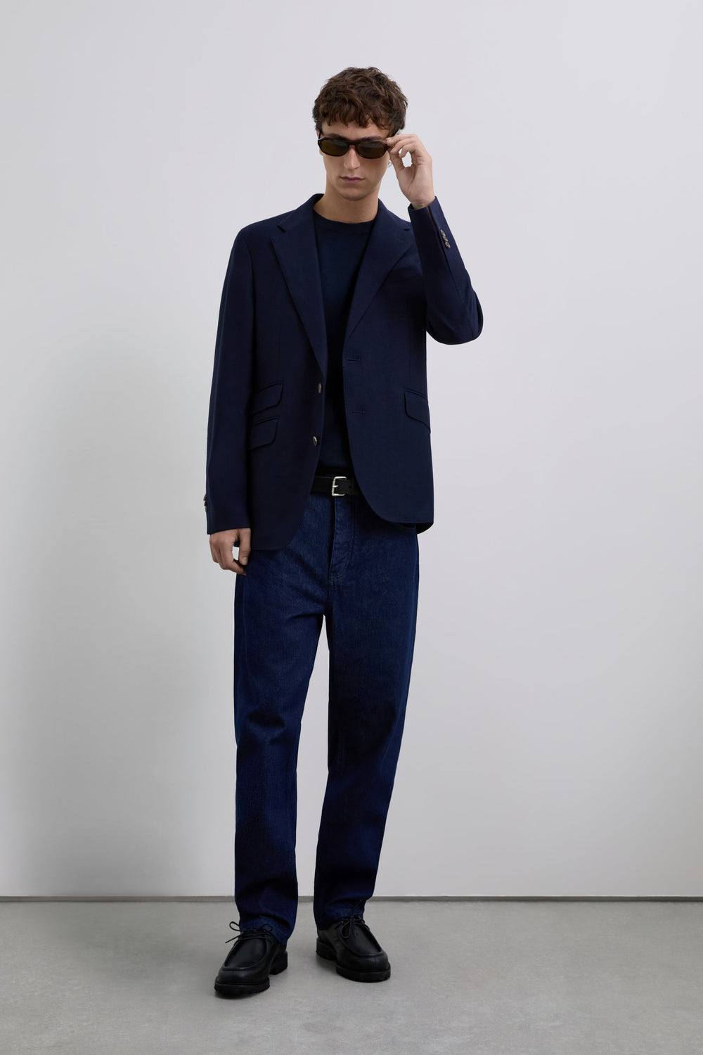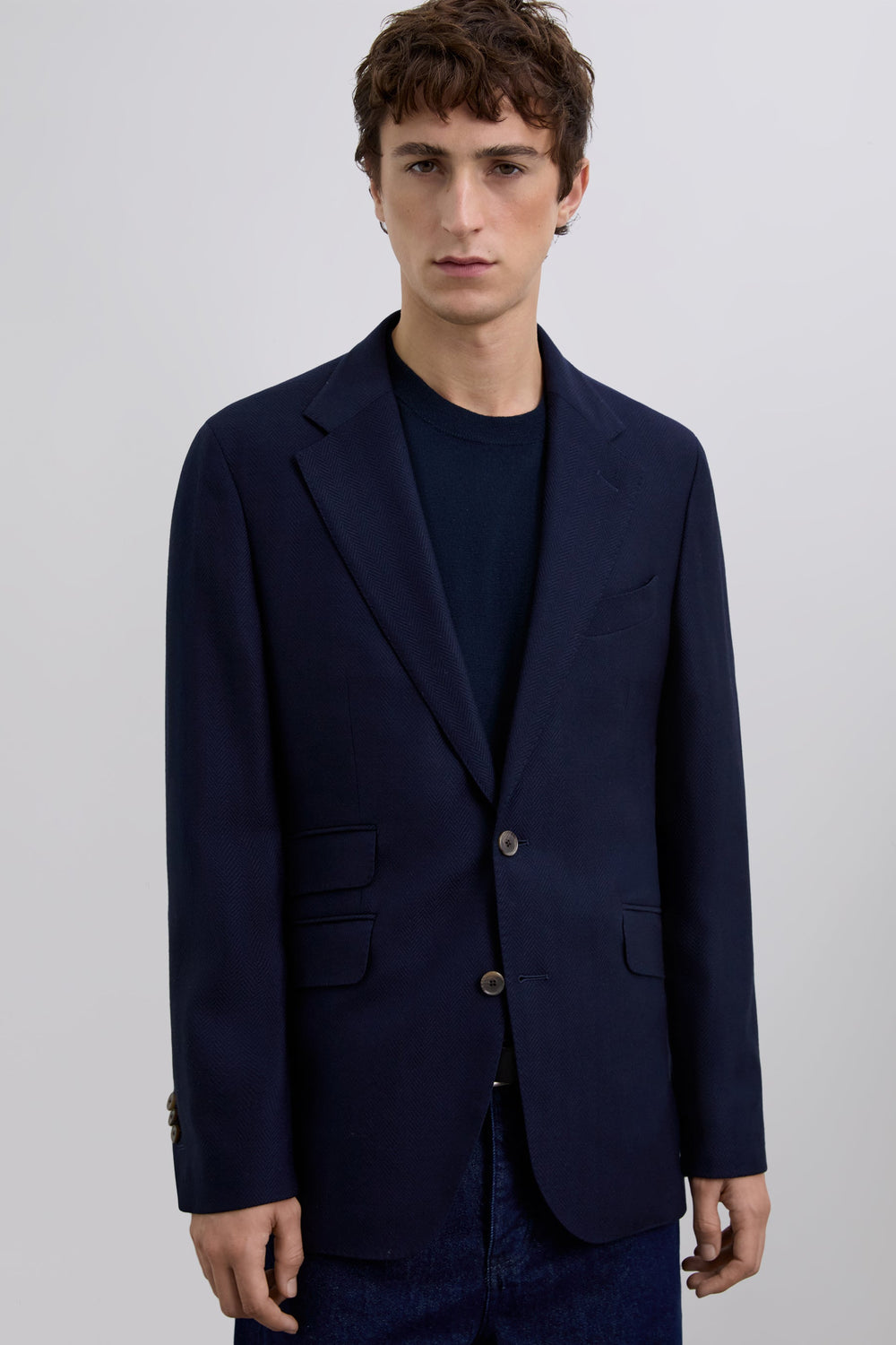 Blazer made of wool. Classic lapel. Chest welt pocket and three slanted flap pockets. Two button fastening at the front. Long sleeves.