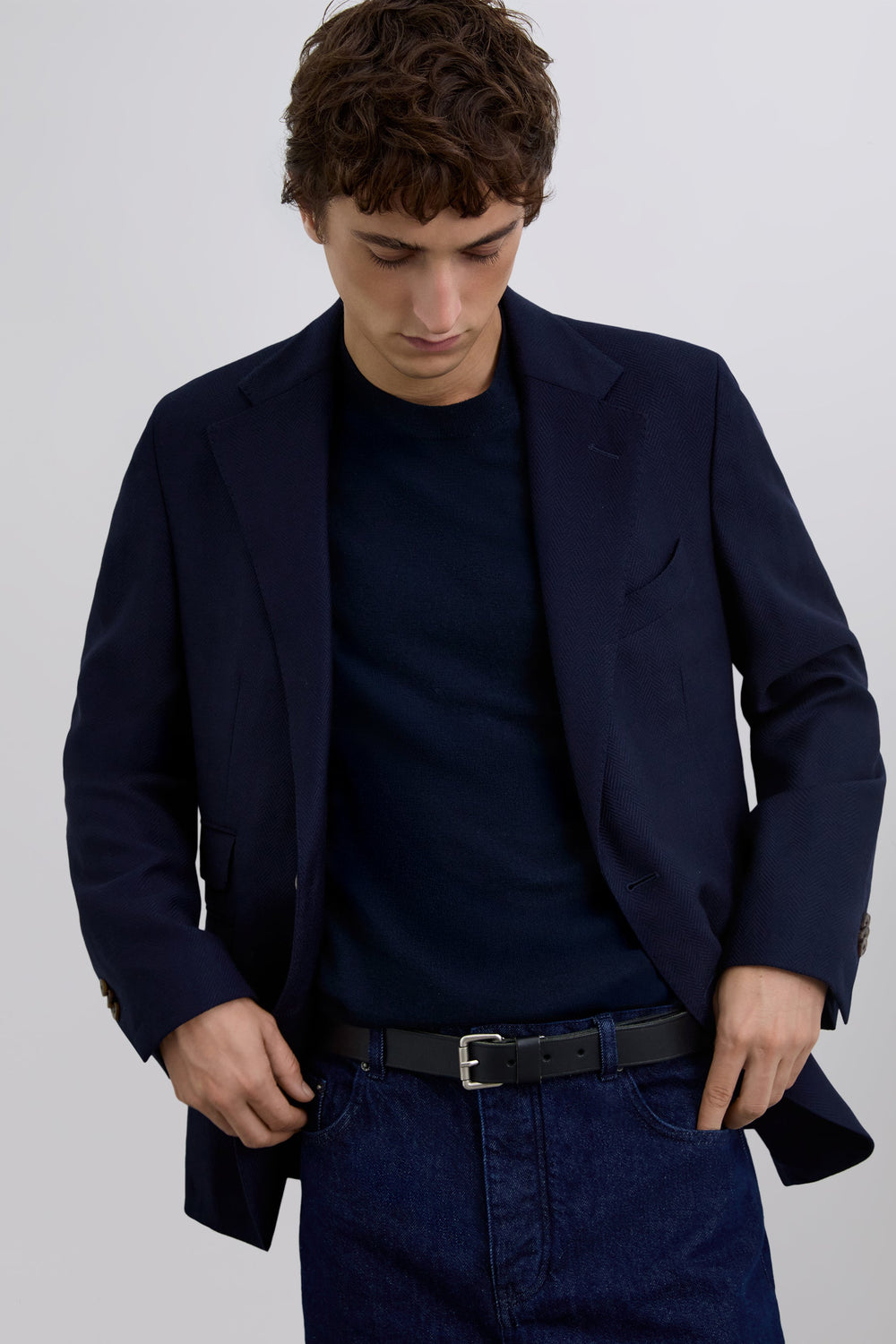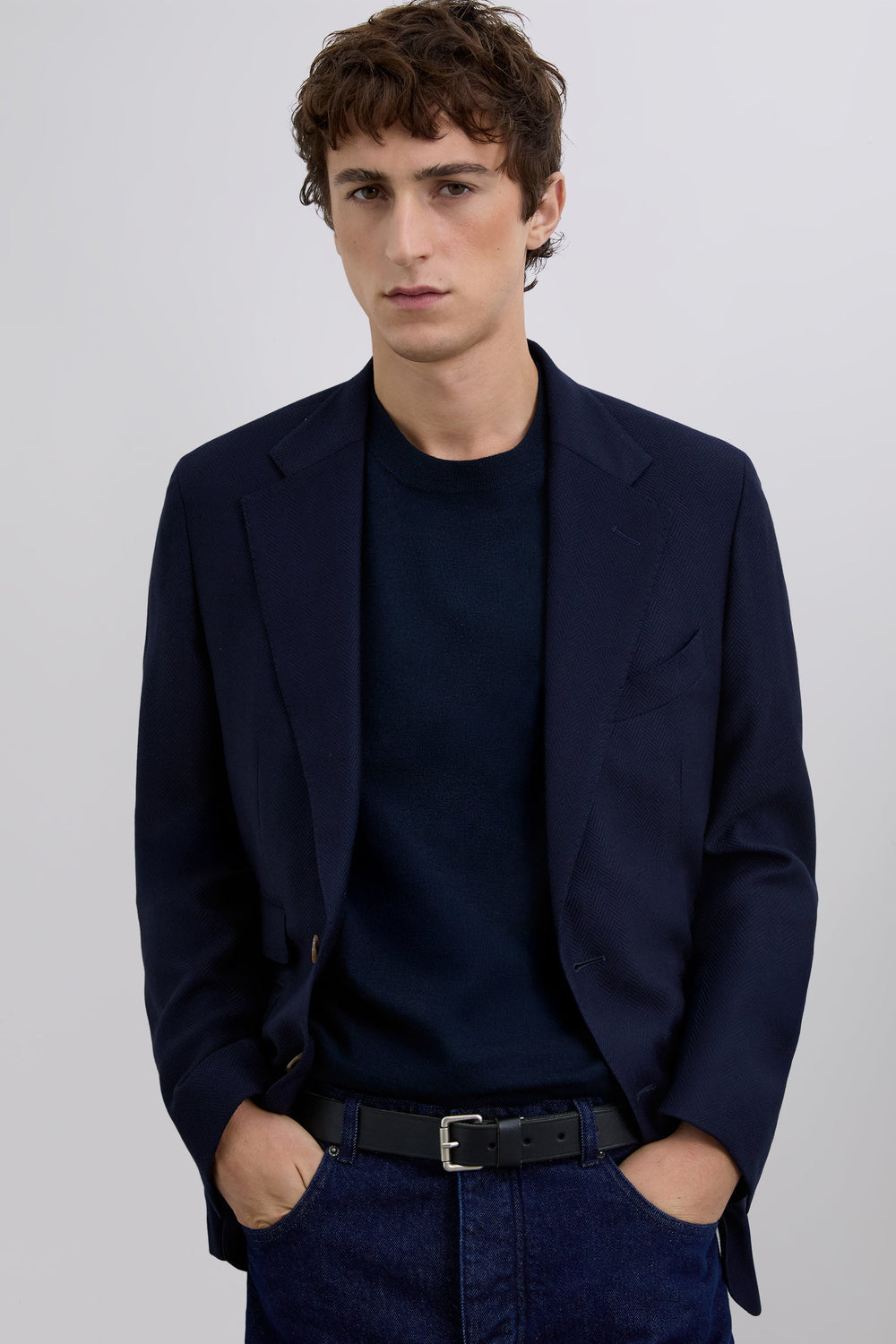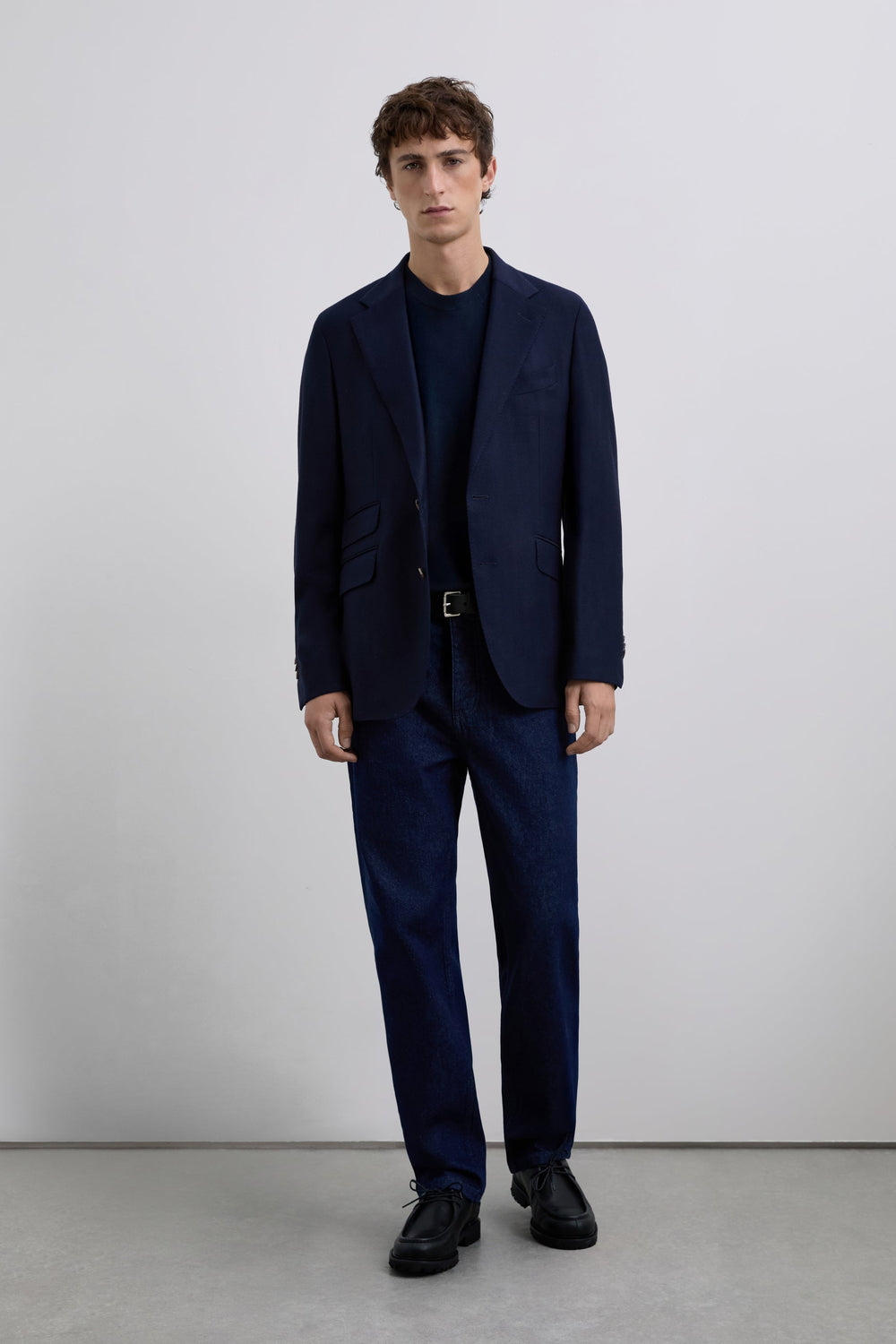 Blazer made of wool. Classic lapel. Chest welt pocket and three slanted flap pockets. Two button fastening at the front. Long sleeves.