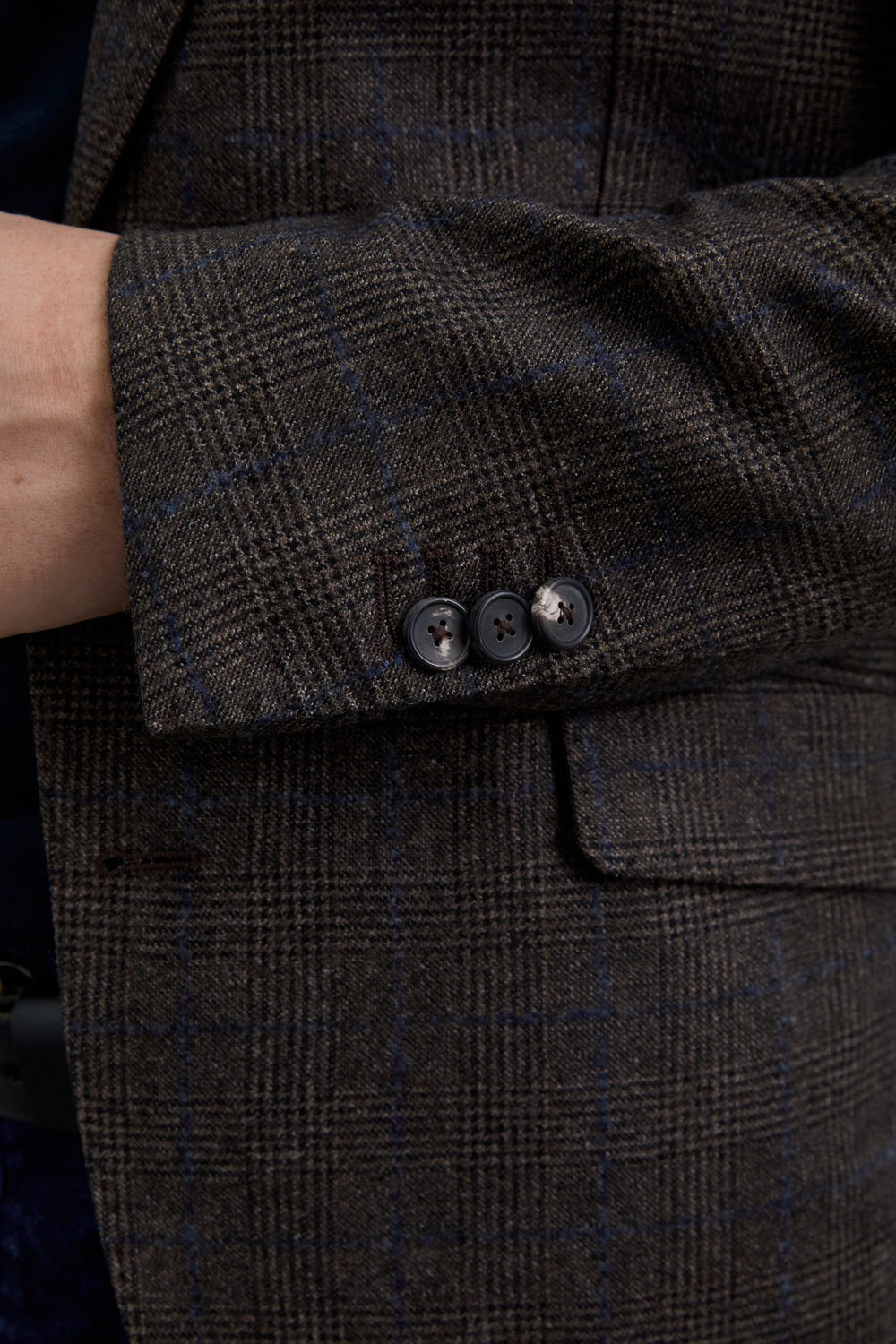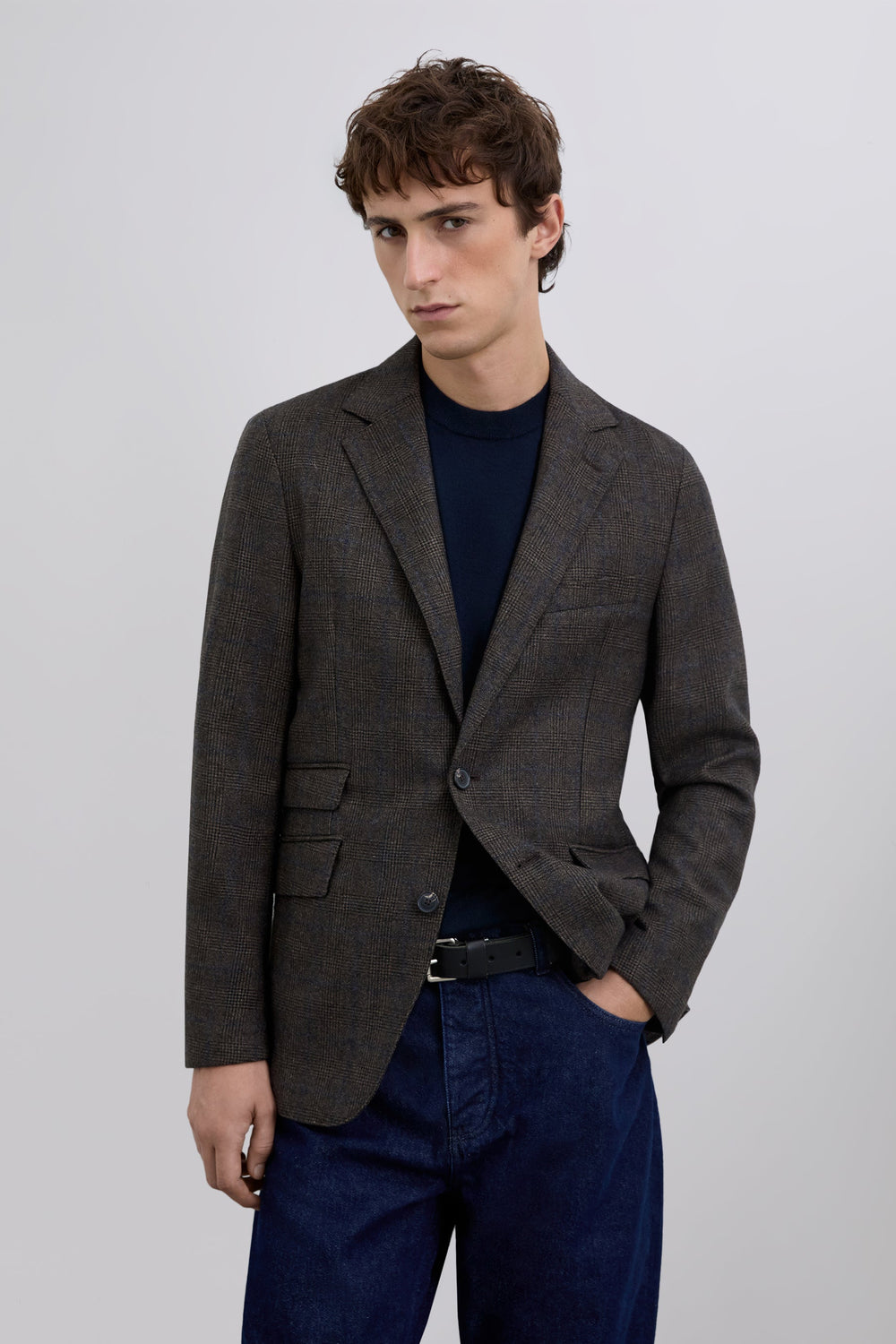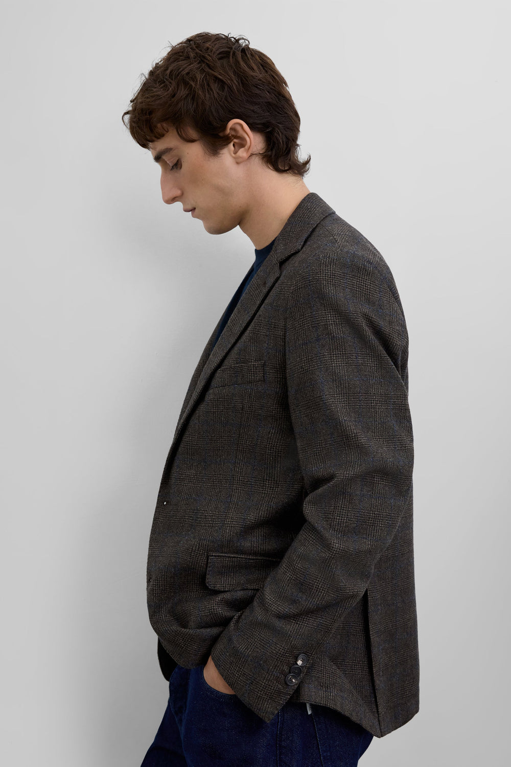 Blazer made of 100% wool. Regular fit. Check print. Notched lapel collar. Button fastening. Flap and ticket pockets. Long sleeves with working buttoned cuffs.