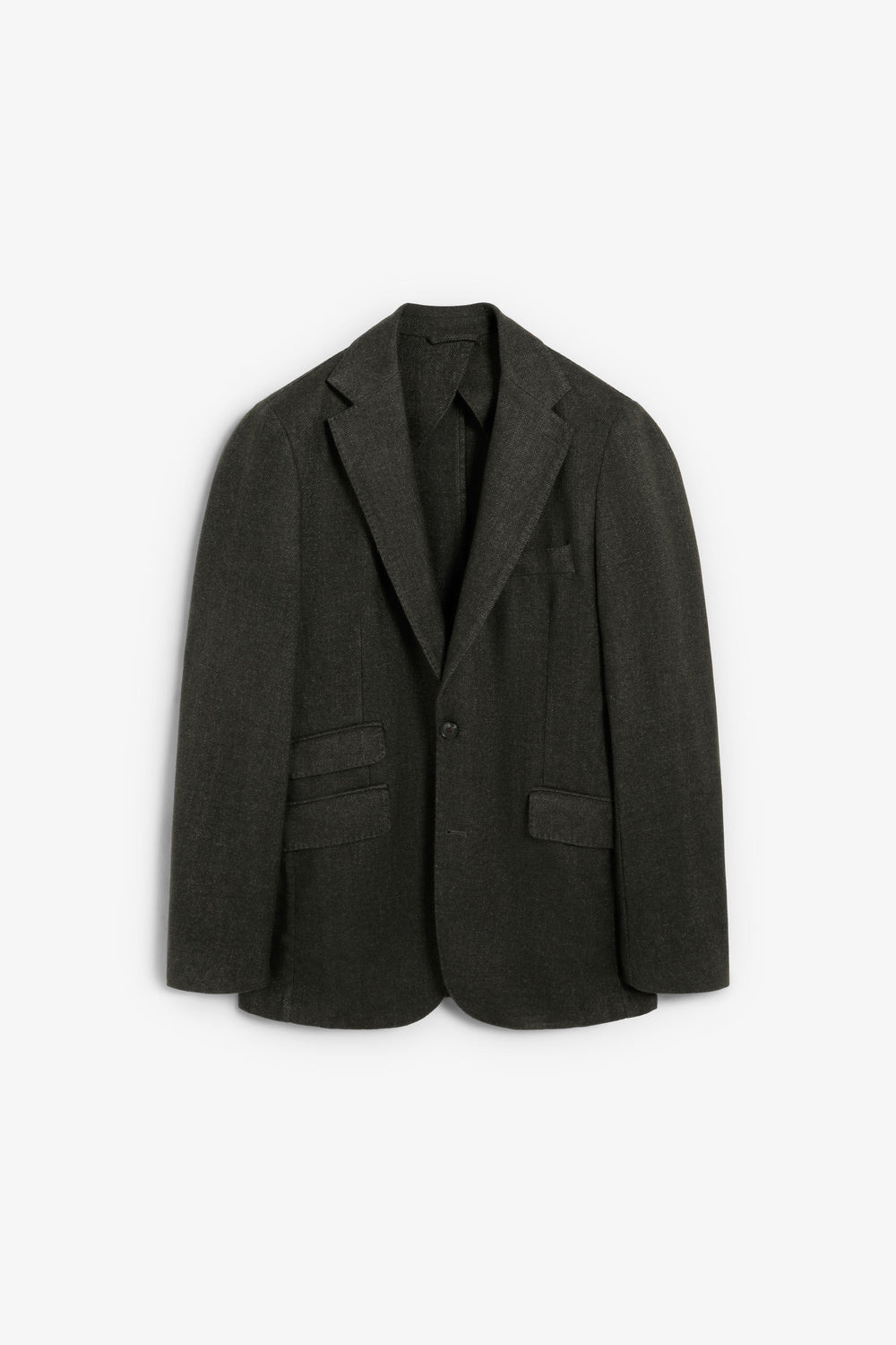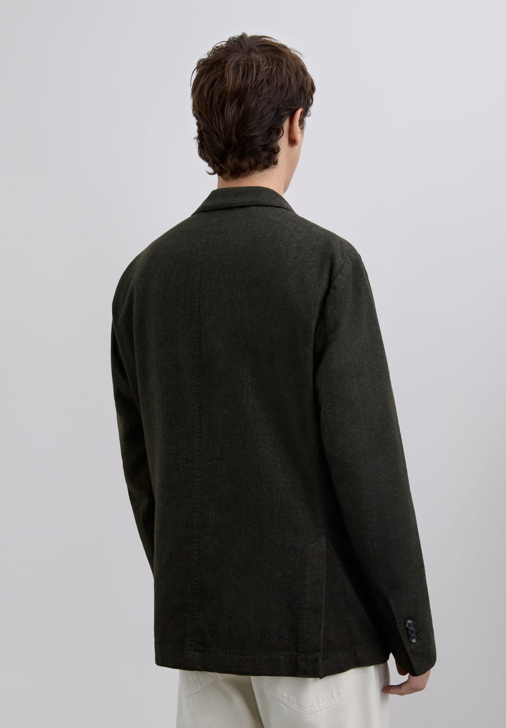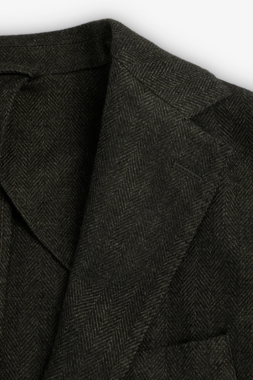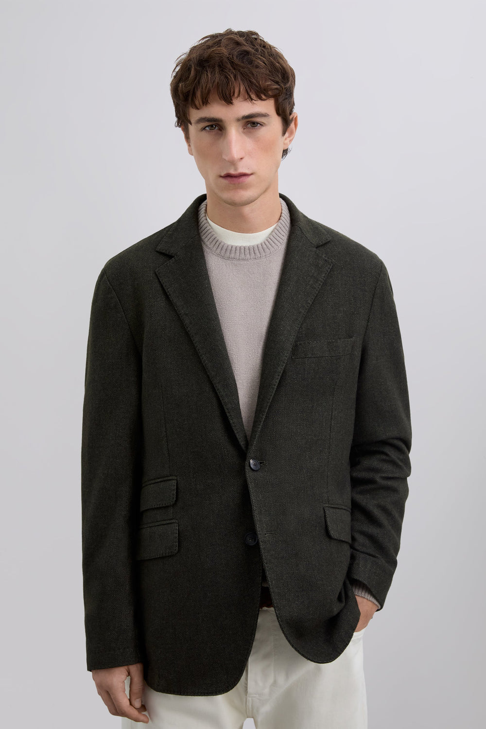 Blazer made of wool. Herringbone design. Three flap pockets. Two button fastening. Chest pocket with piping. Long sleeves.