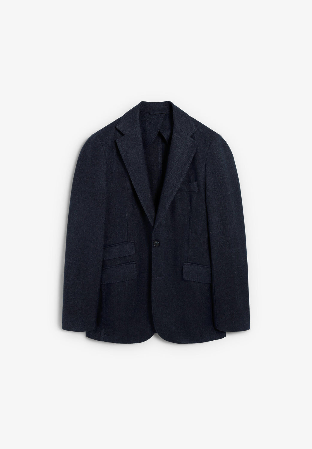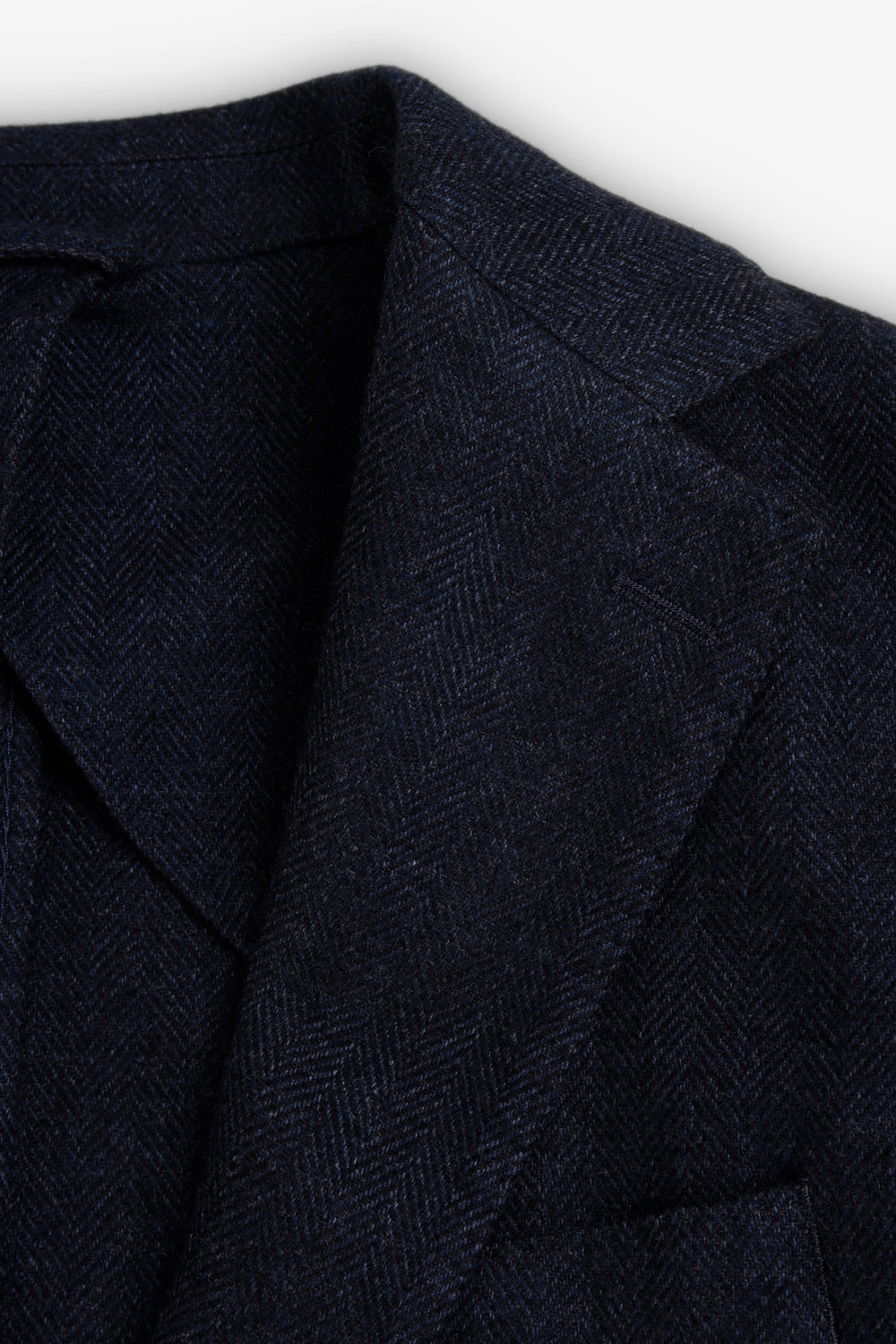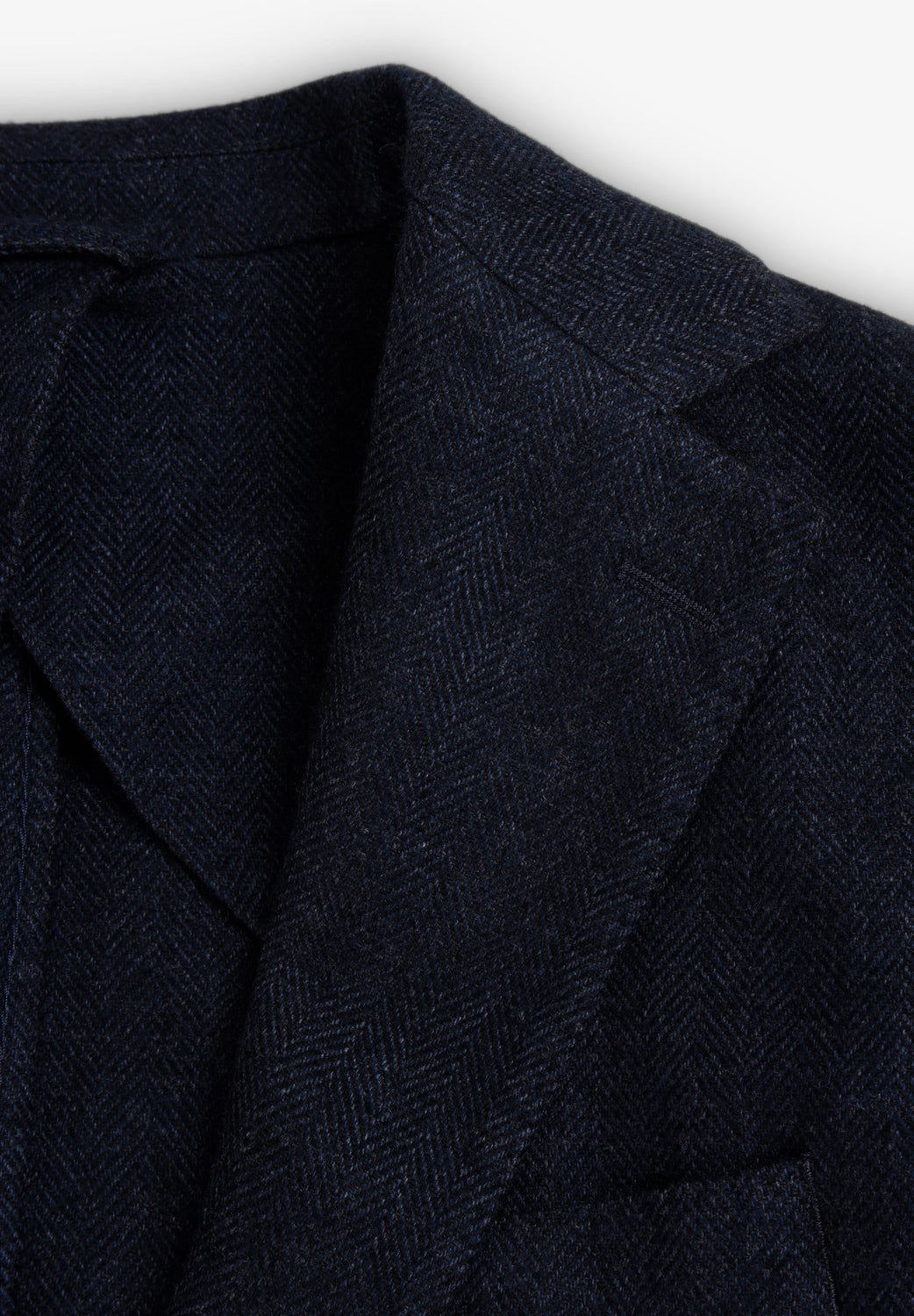 Blazer made of wool. Herringbone design. Three flap pockets. Two button fastening. Chest pocket with piping. Long sleeves.
