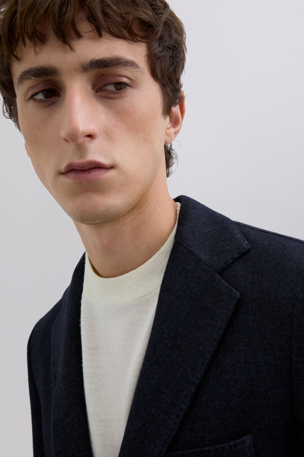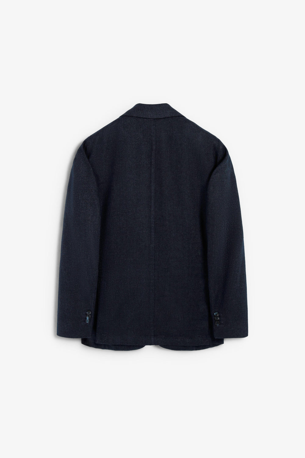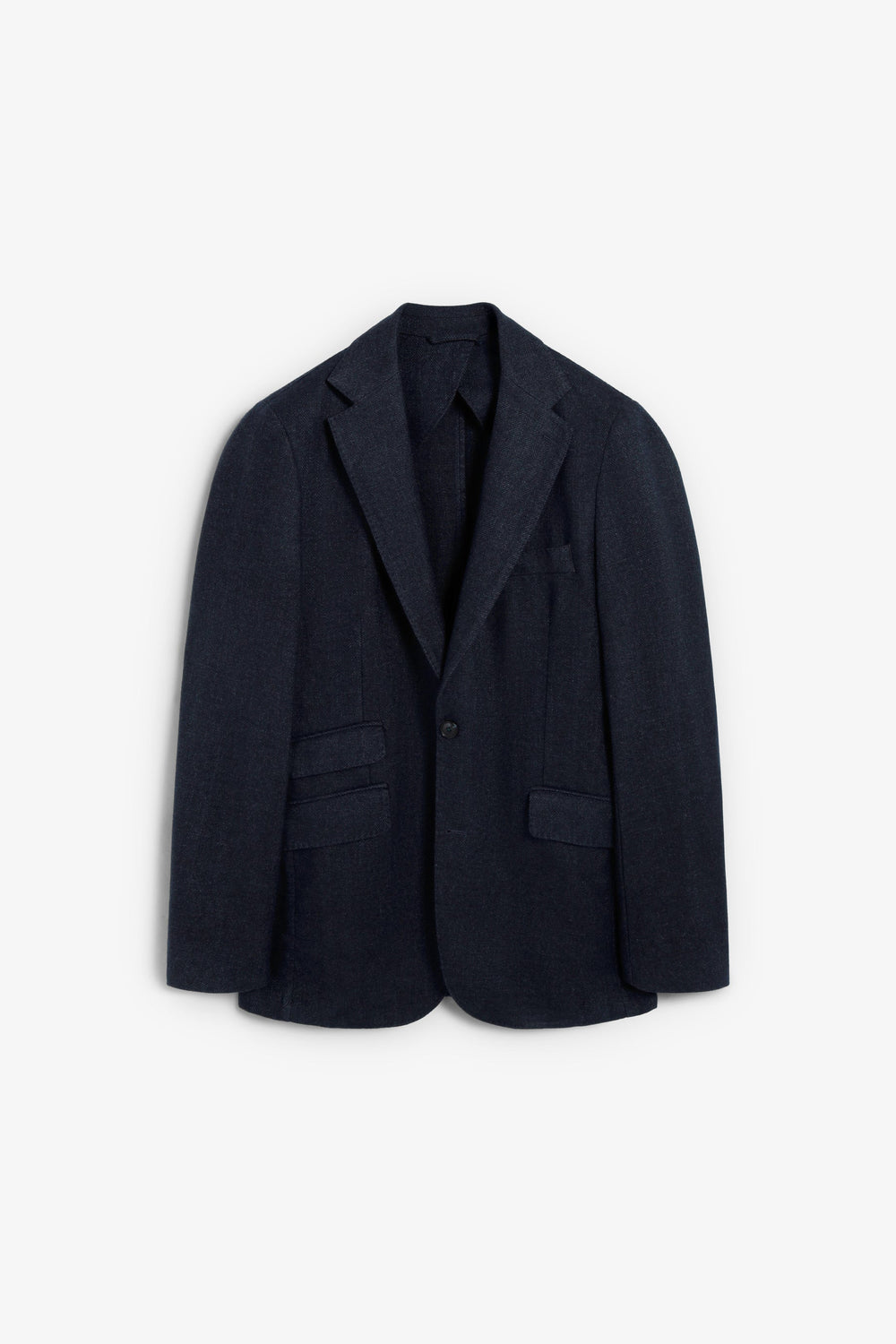Blazer made of wool. Herringbone design. Three flap pockets. Two button fastening. Chest pocket with piping. Long sleeves.