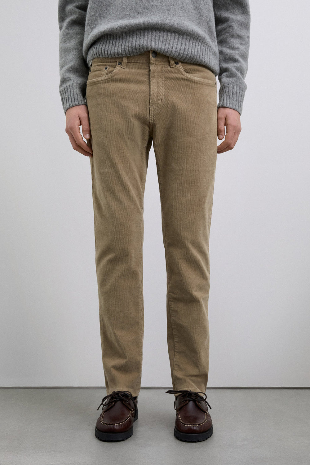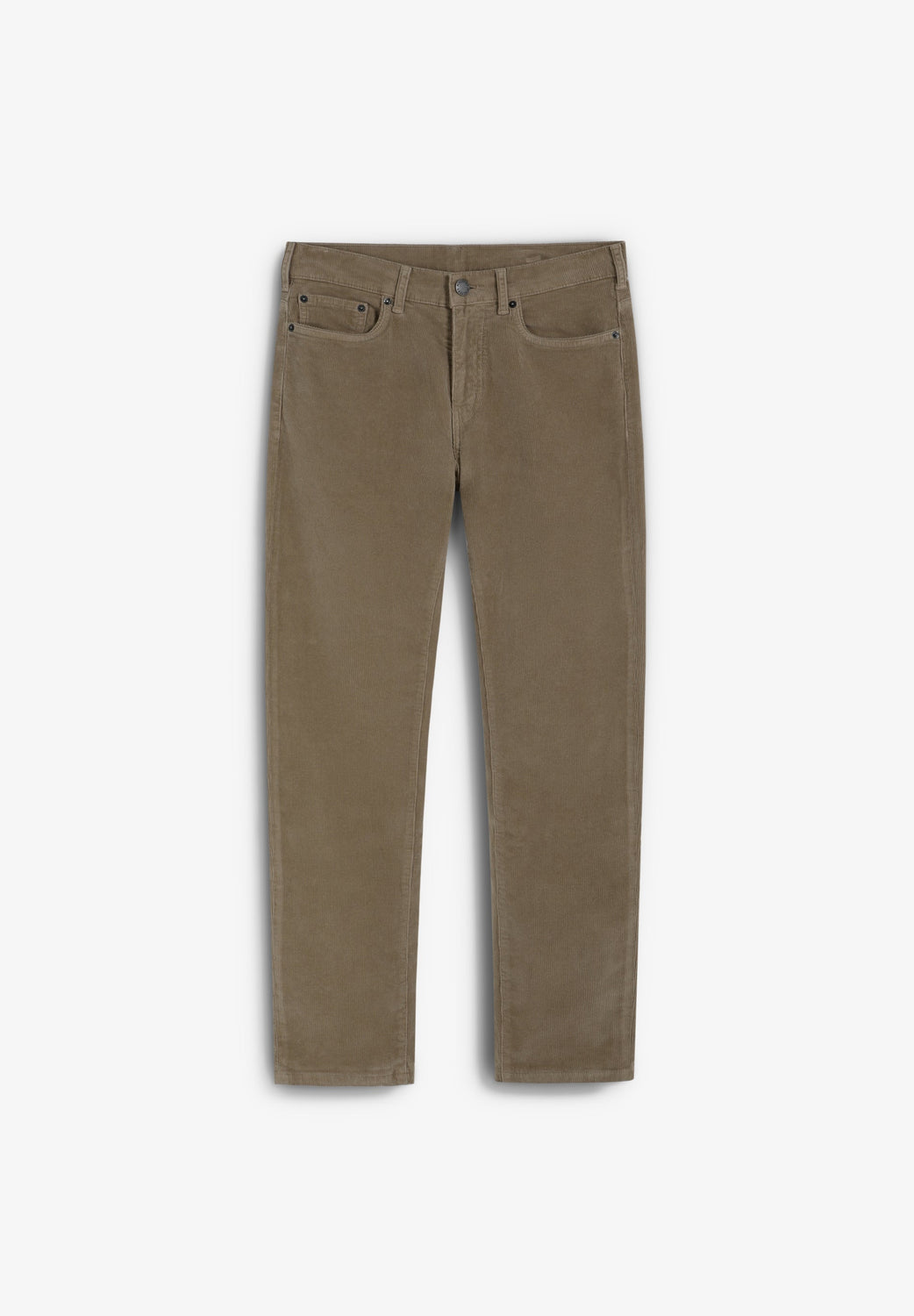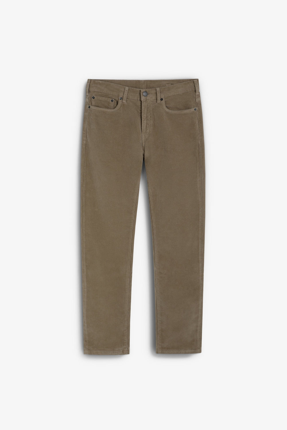Trousers made of BCI cotton. Slightly stretchy. Button and zip fastening. Regular fit. Side and back pockets. Belt loops. Label detail on the back.