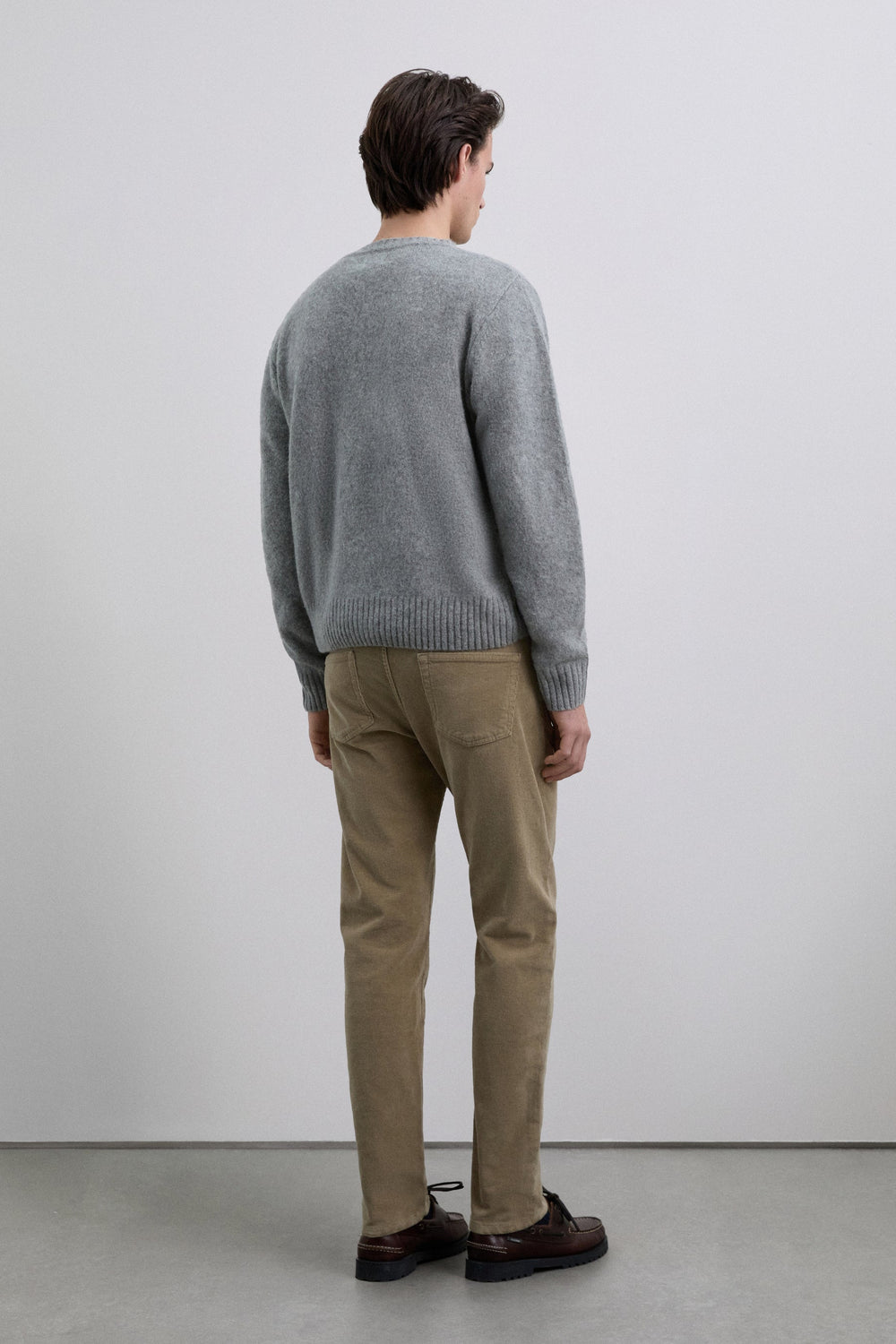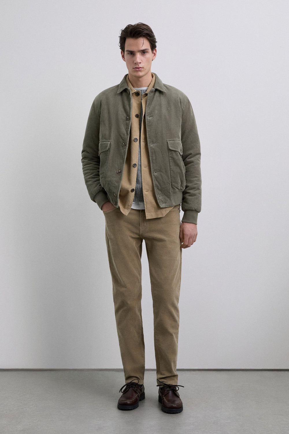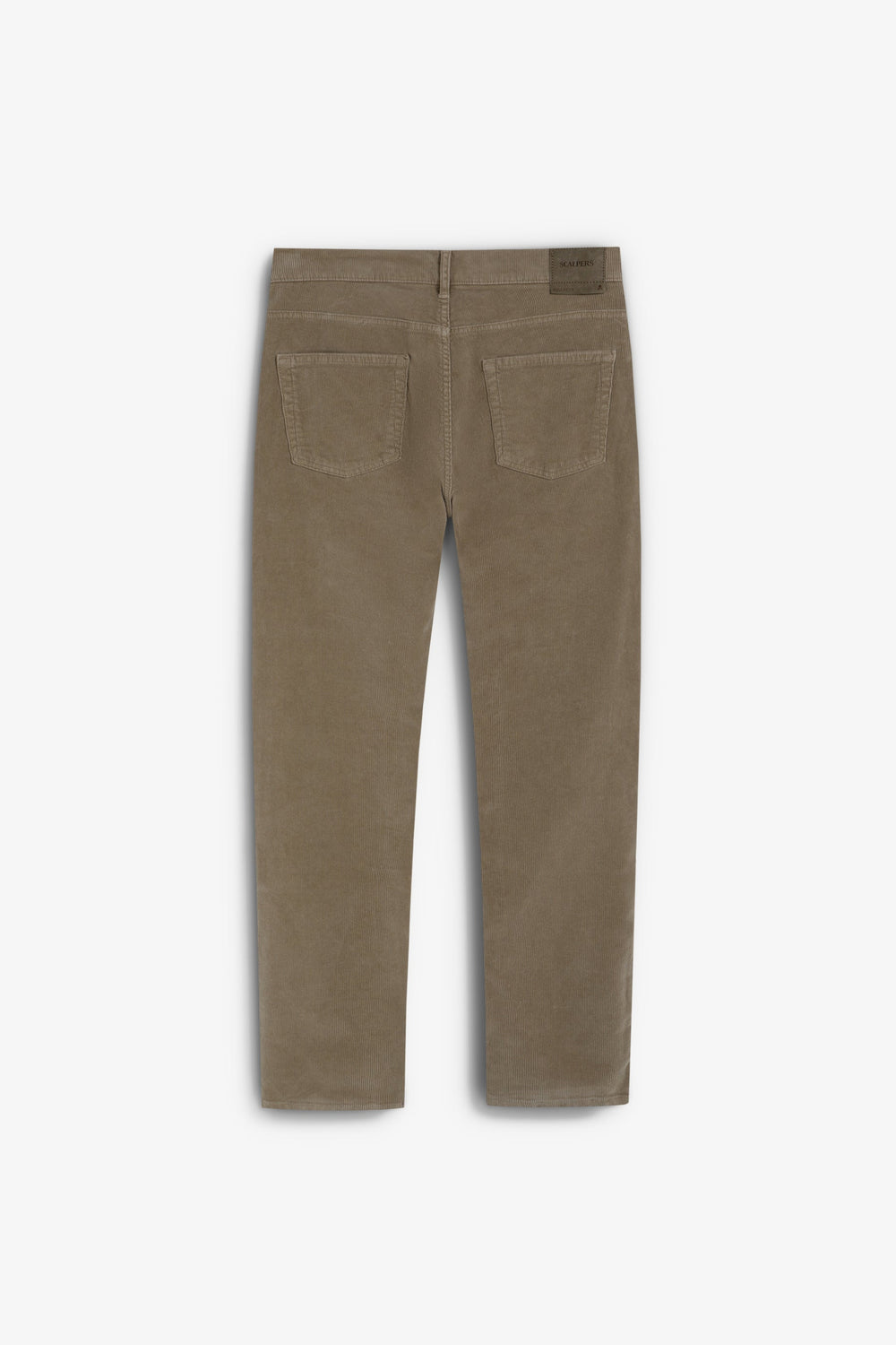 Trousers made of BCI cotton. Slightly stretchy. Button and zip fastening. Regular fit. Side and back pockets. Belt loops. Label detail on the back.