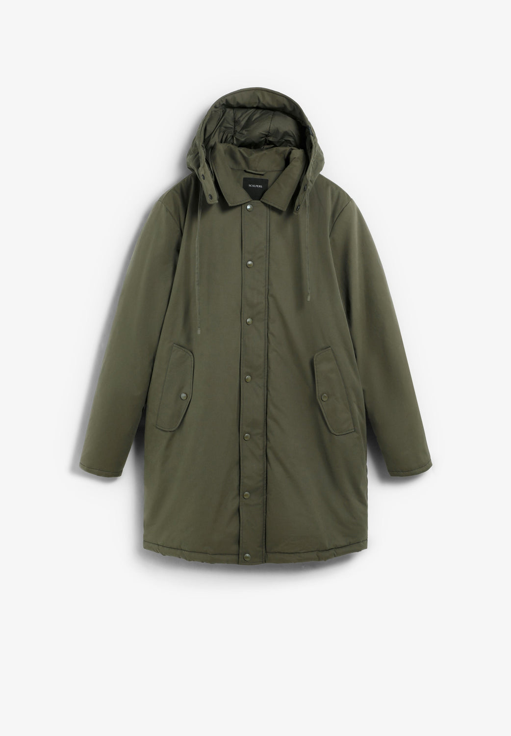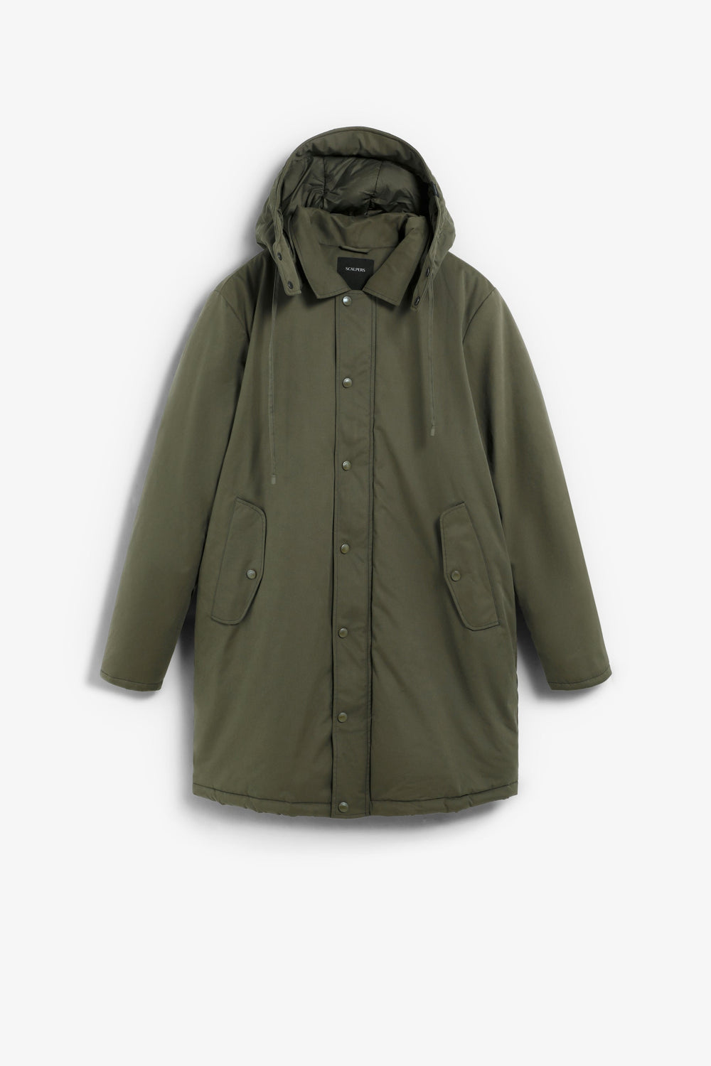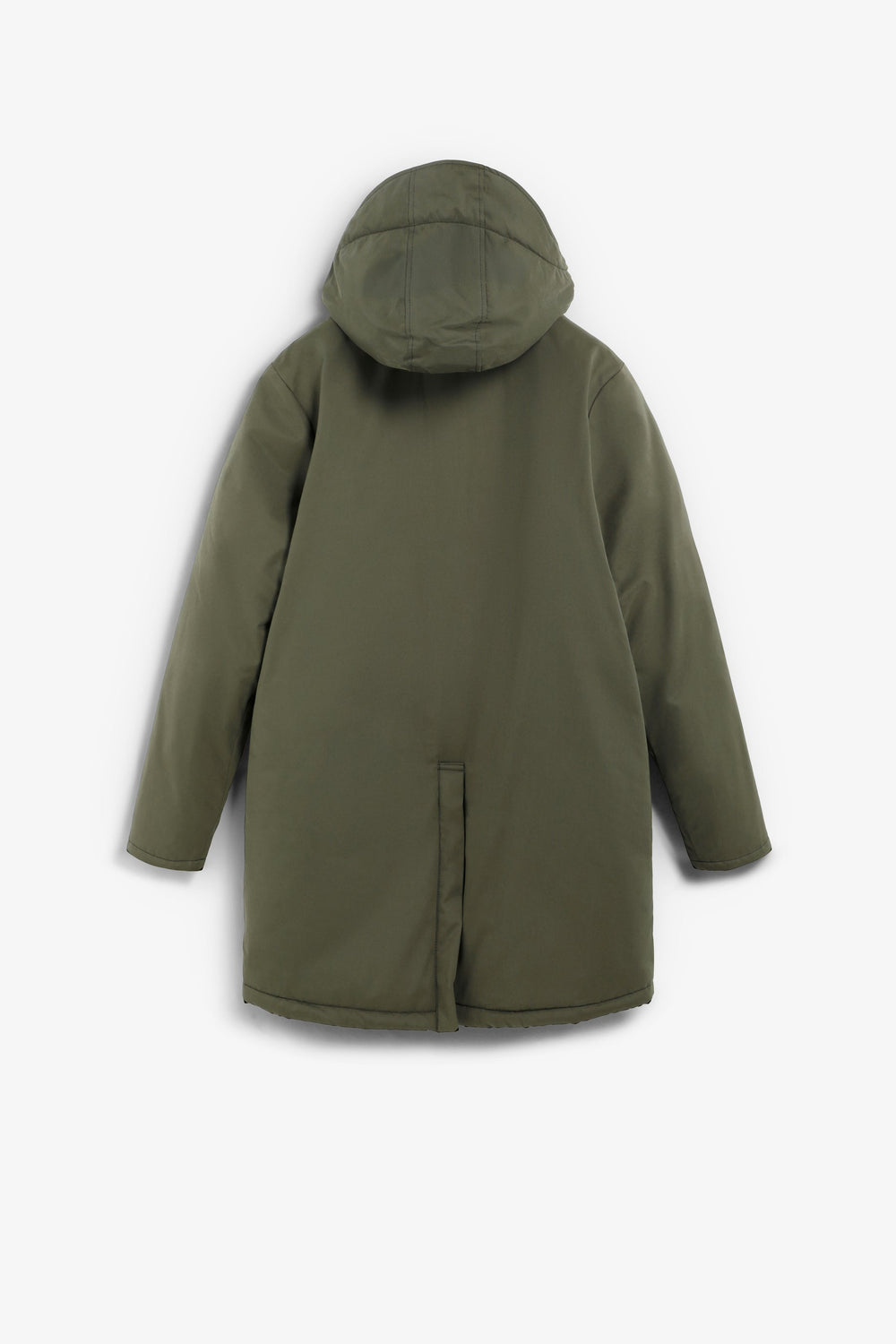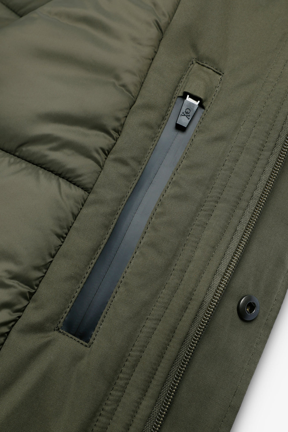 Parka made of cotton. Detachable drawstring hood. Front flap pockets. Thermolite® filling. High-density print on the sleeve. Thermo-sealed zip fastening. Logo detail on aglets.
