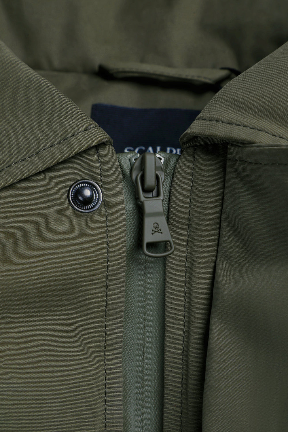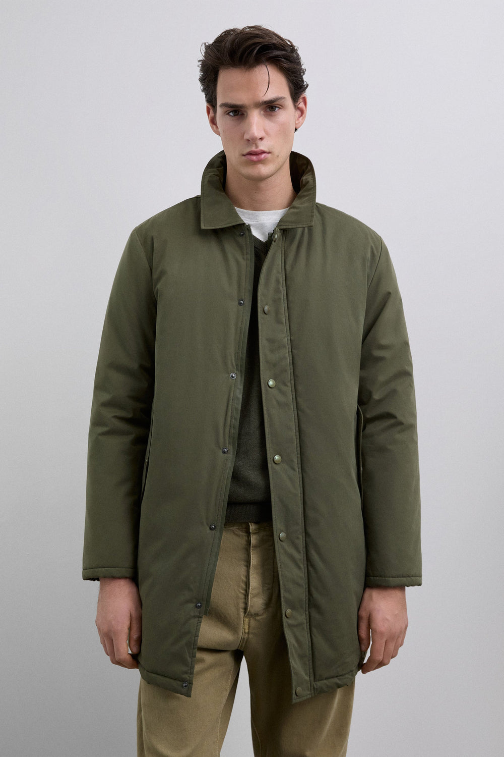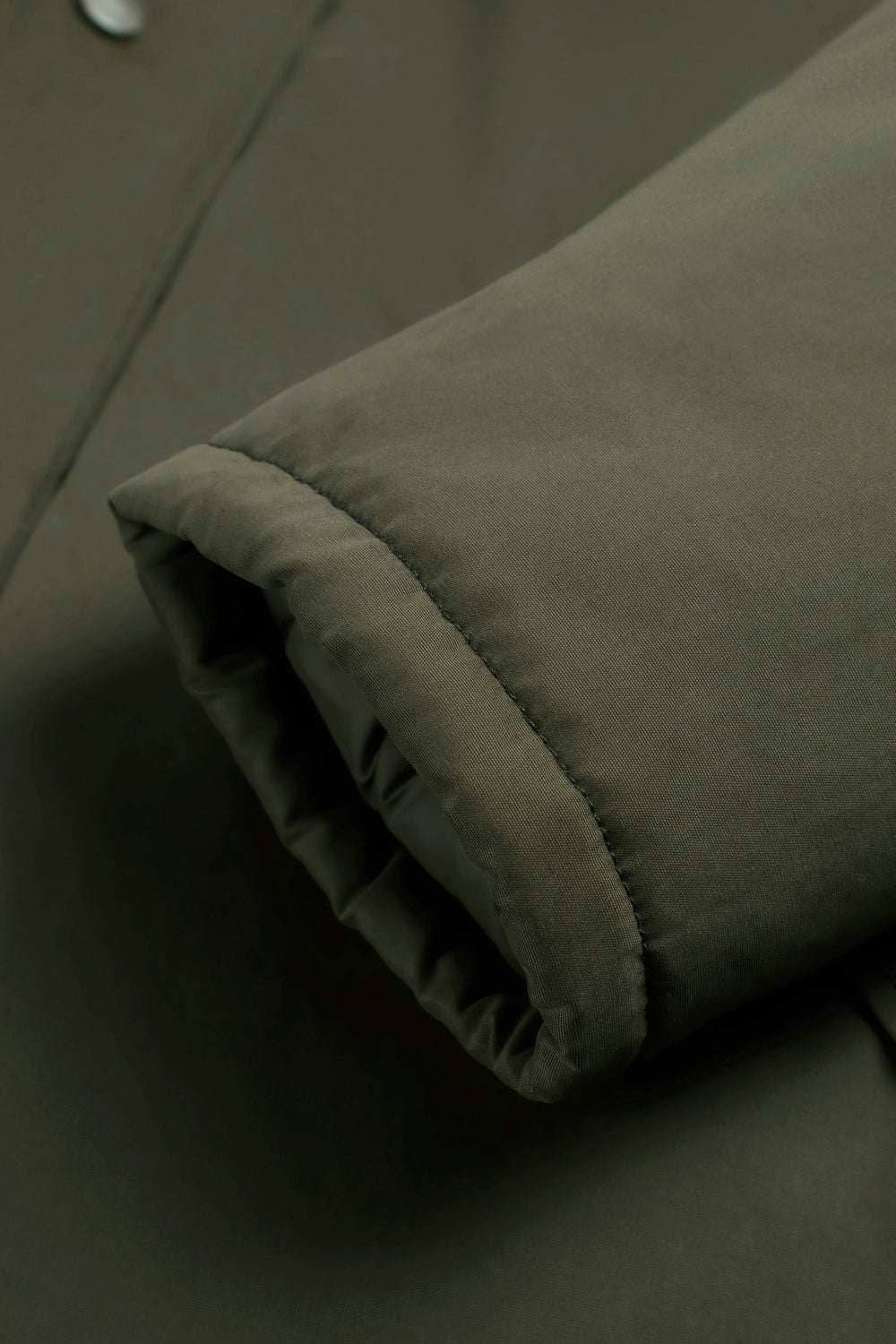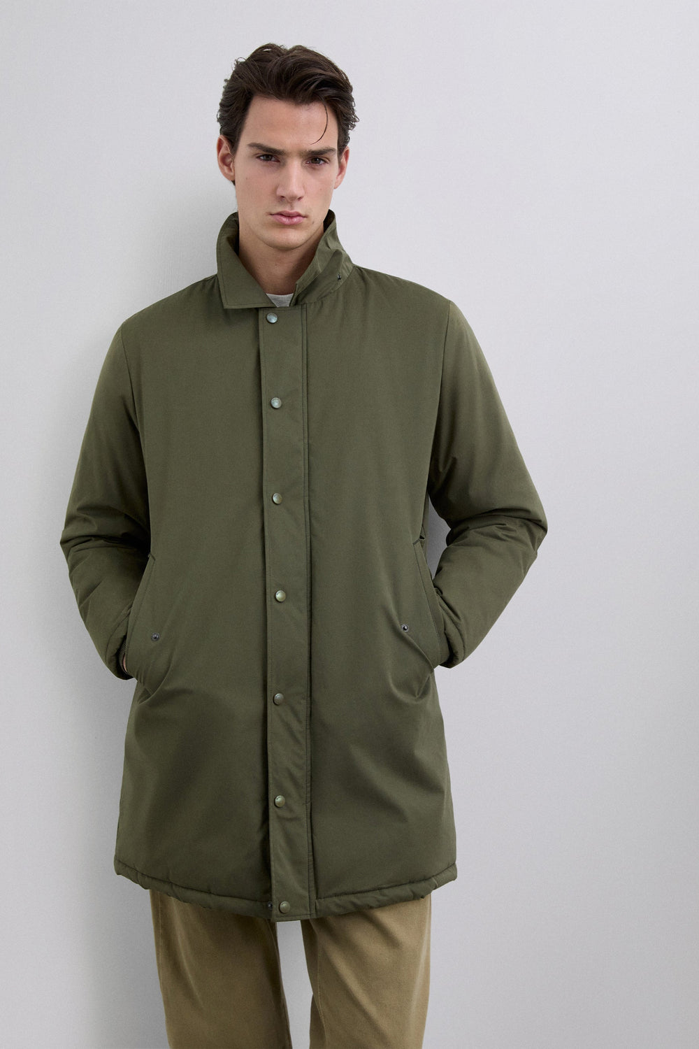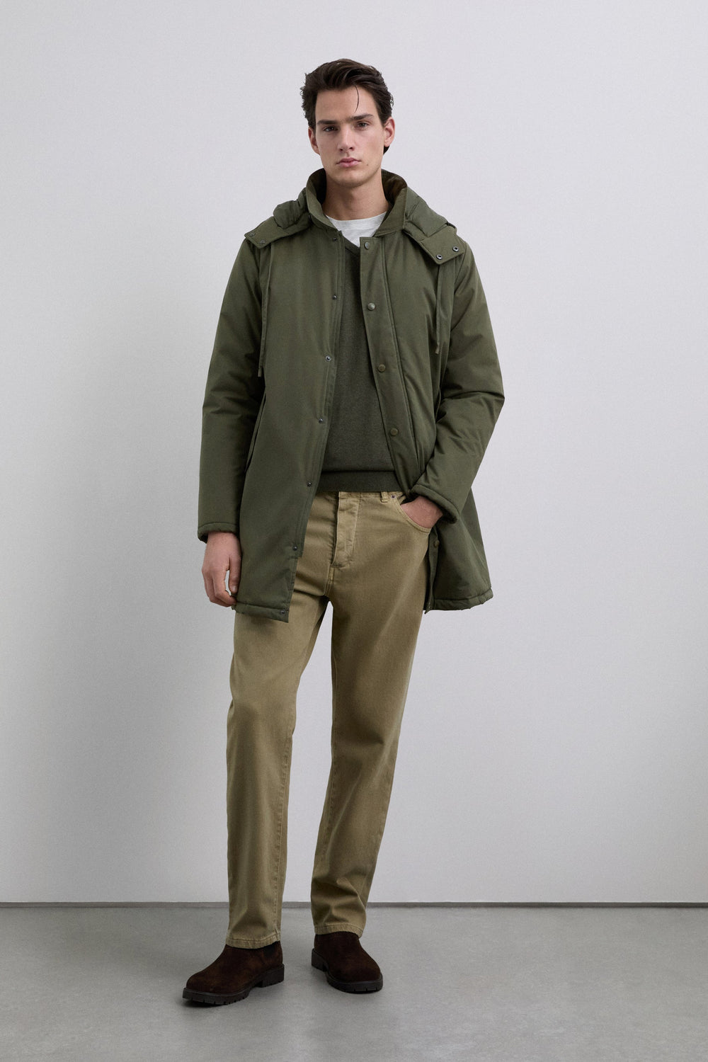 Parka made of cotton. Detachable drawstring hood. Front flap pockets. Thermolite® filling. High-density print on the sleeve. Thermo-sealed zip fastening. Logo detail on aglets.