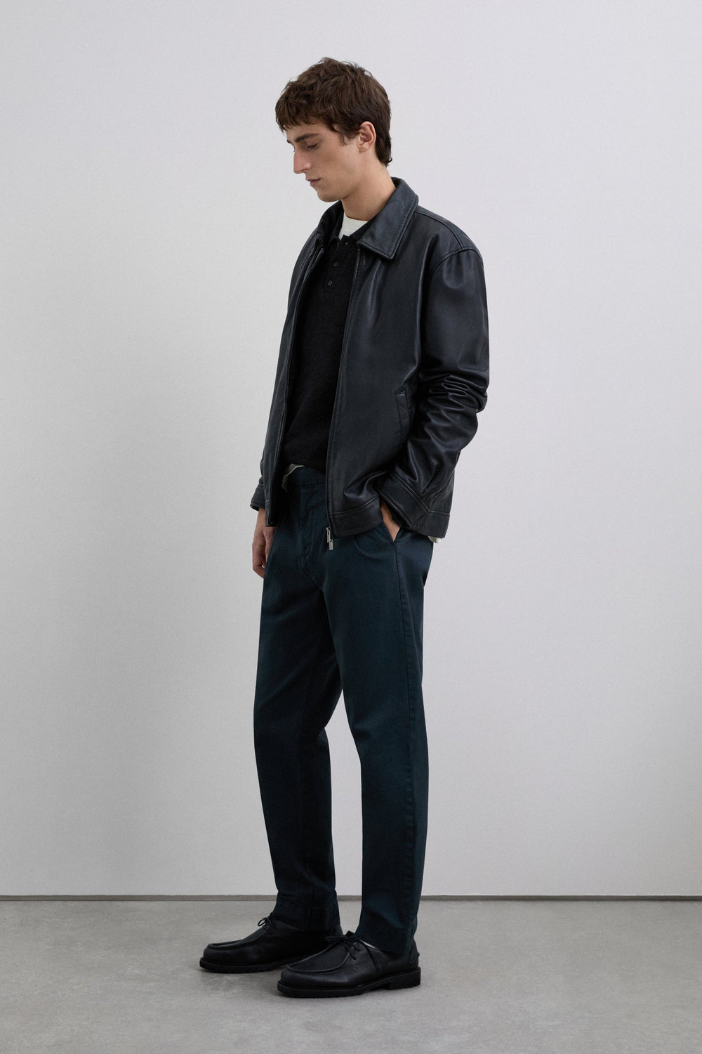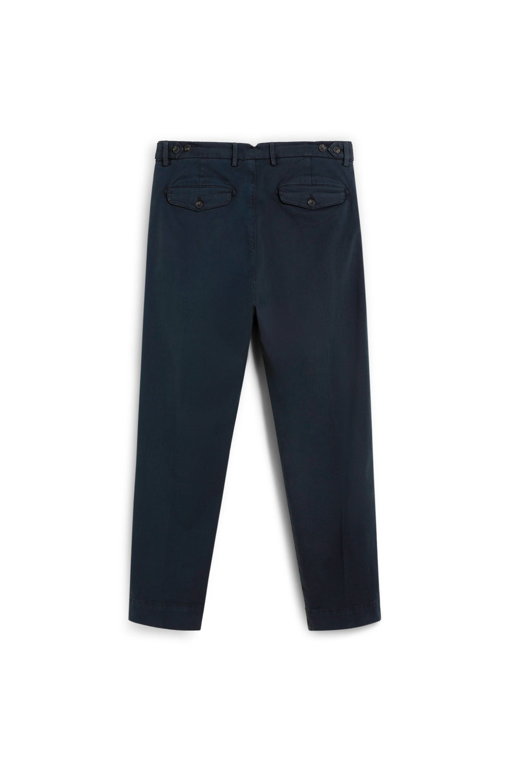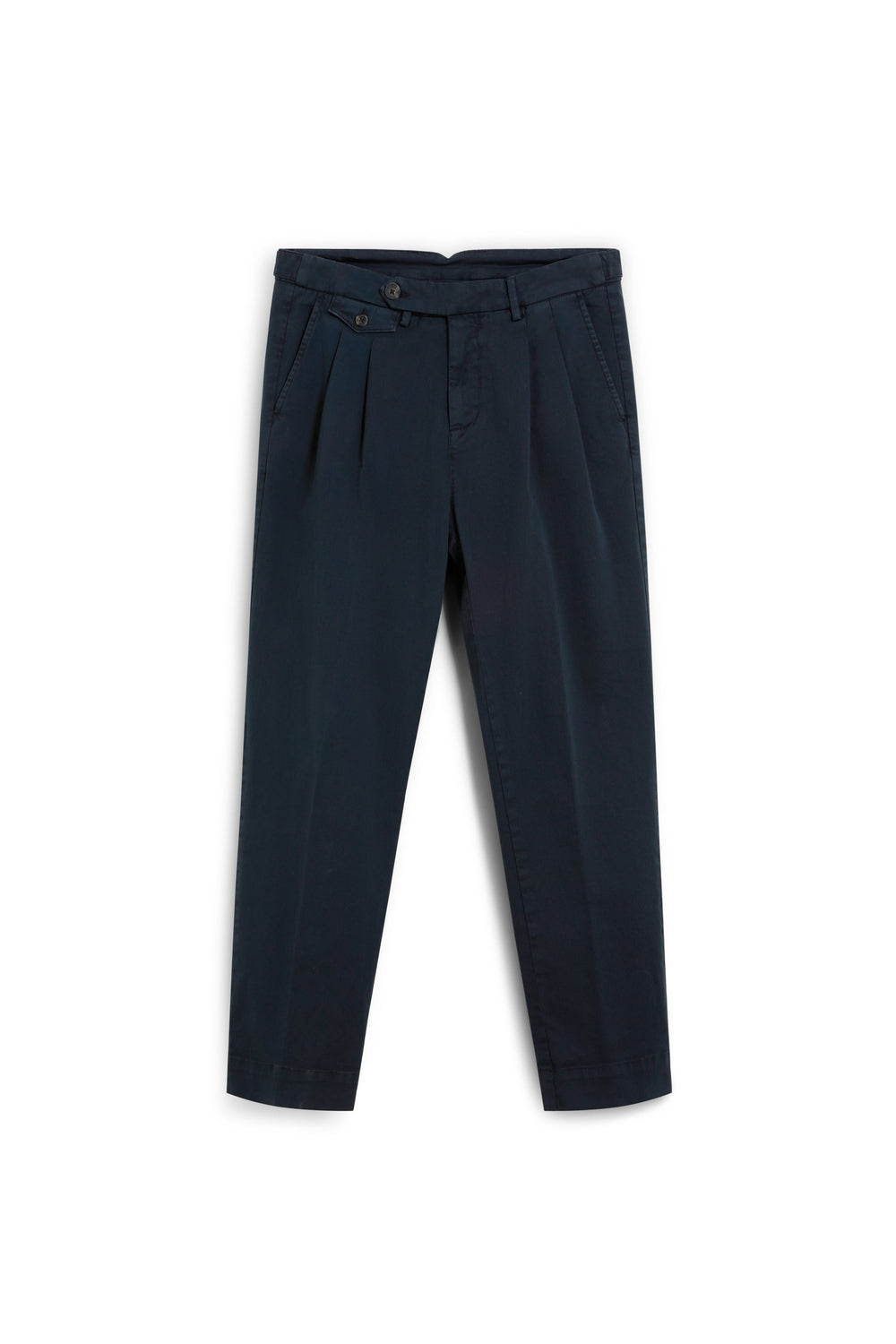 Cotton trousers with darts. Regular fit. Waistband with front pleat detail. Side pockets and back pockets with piped seam detail. Front zip and button fastening.