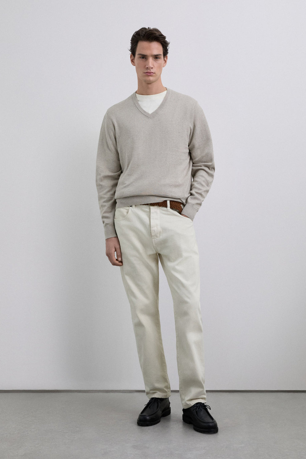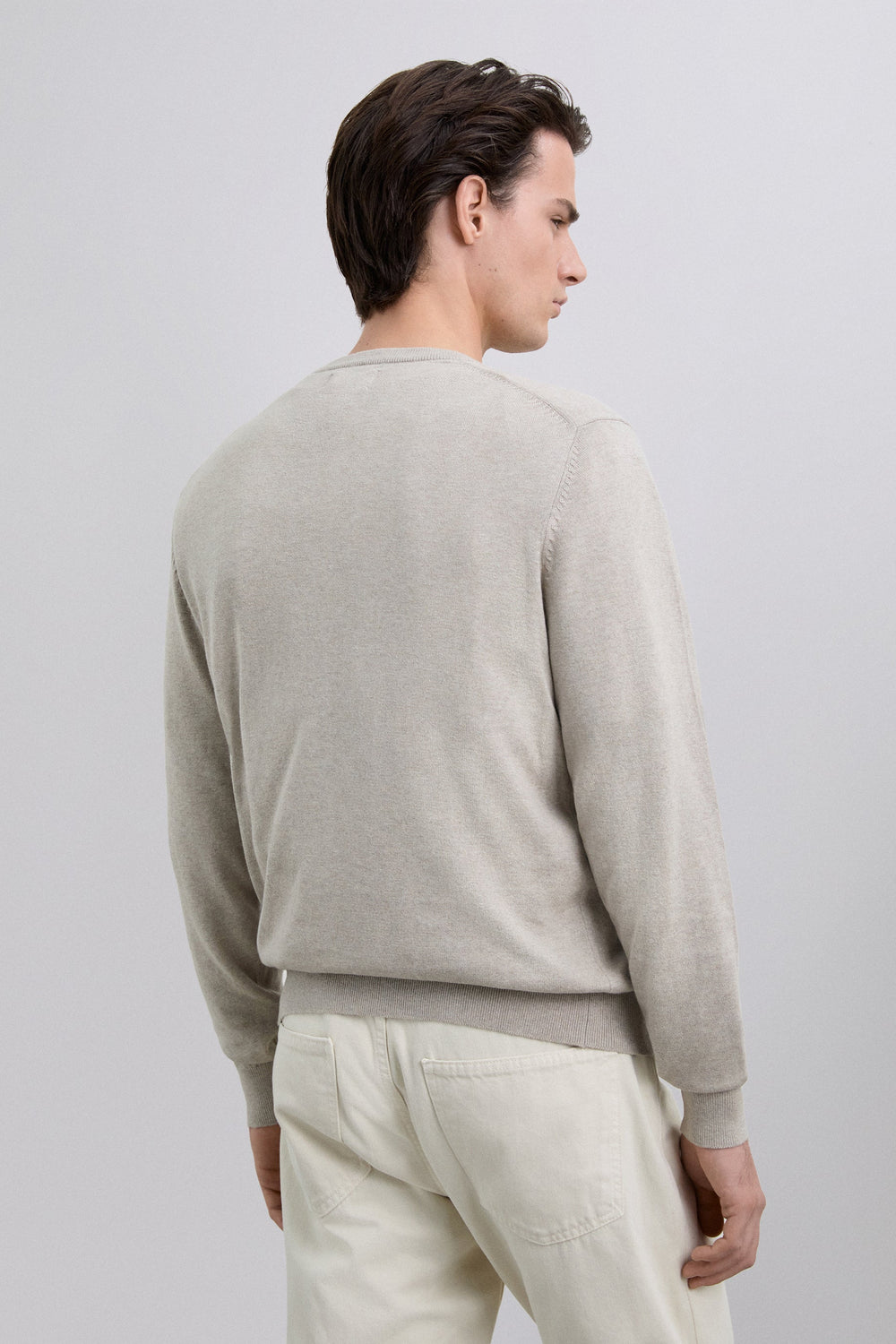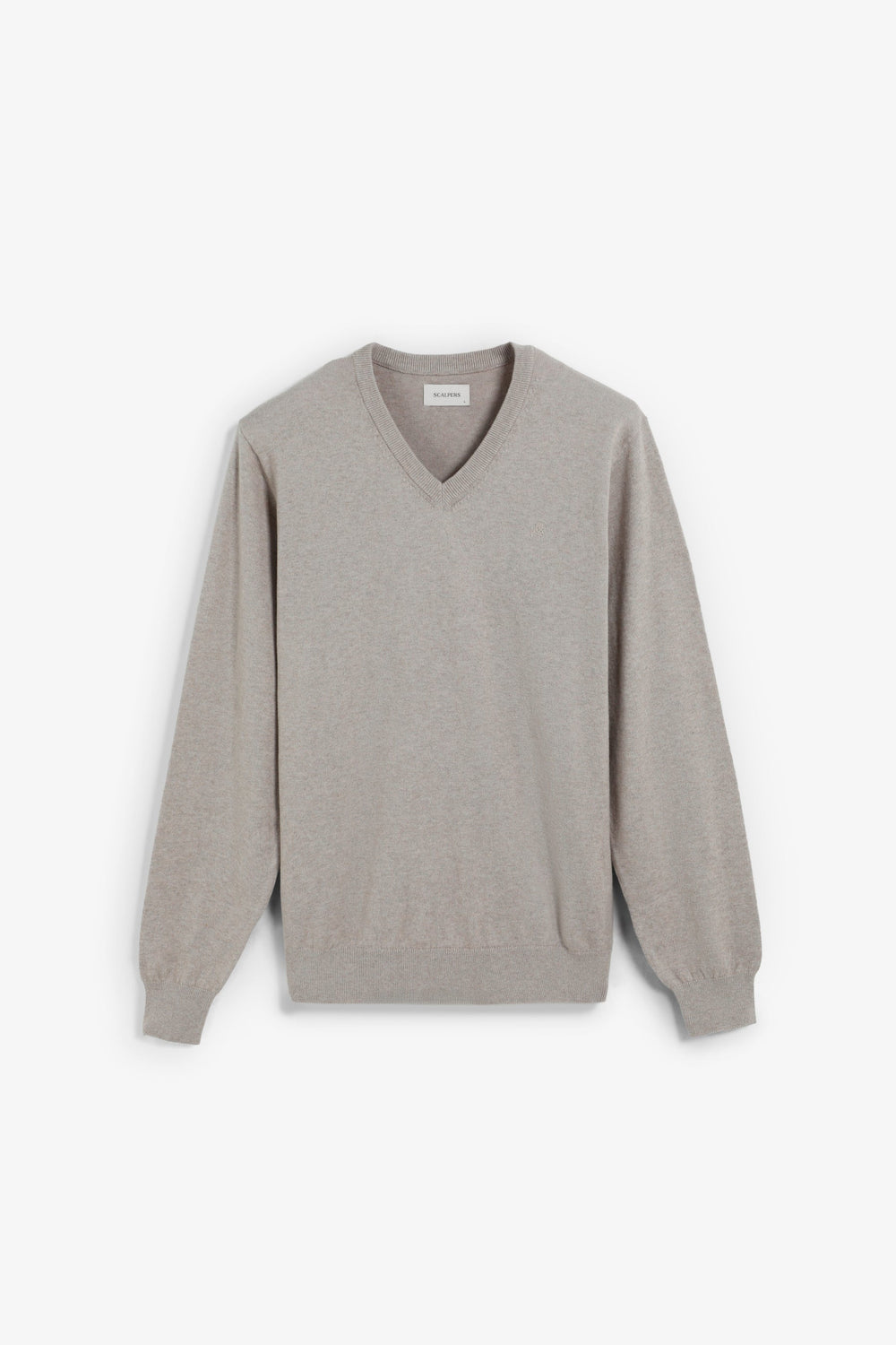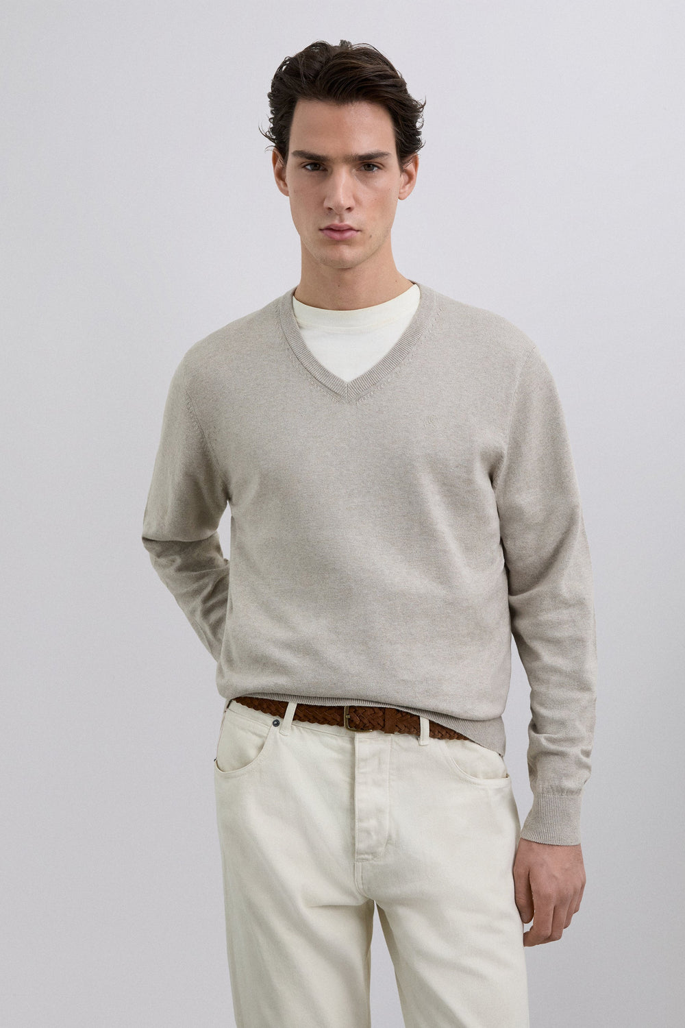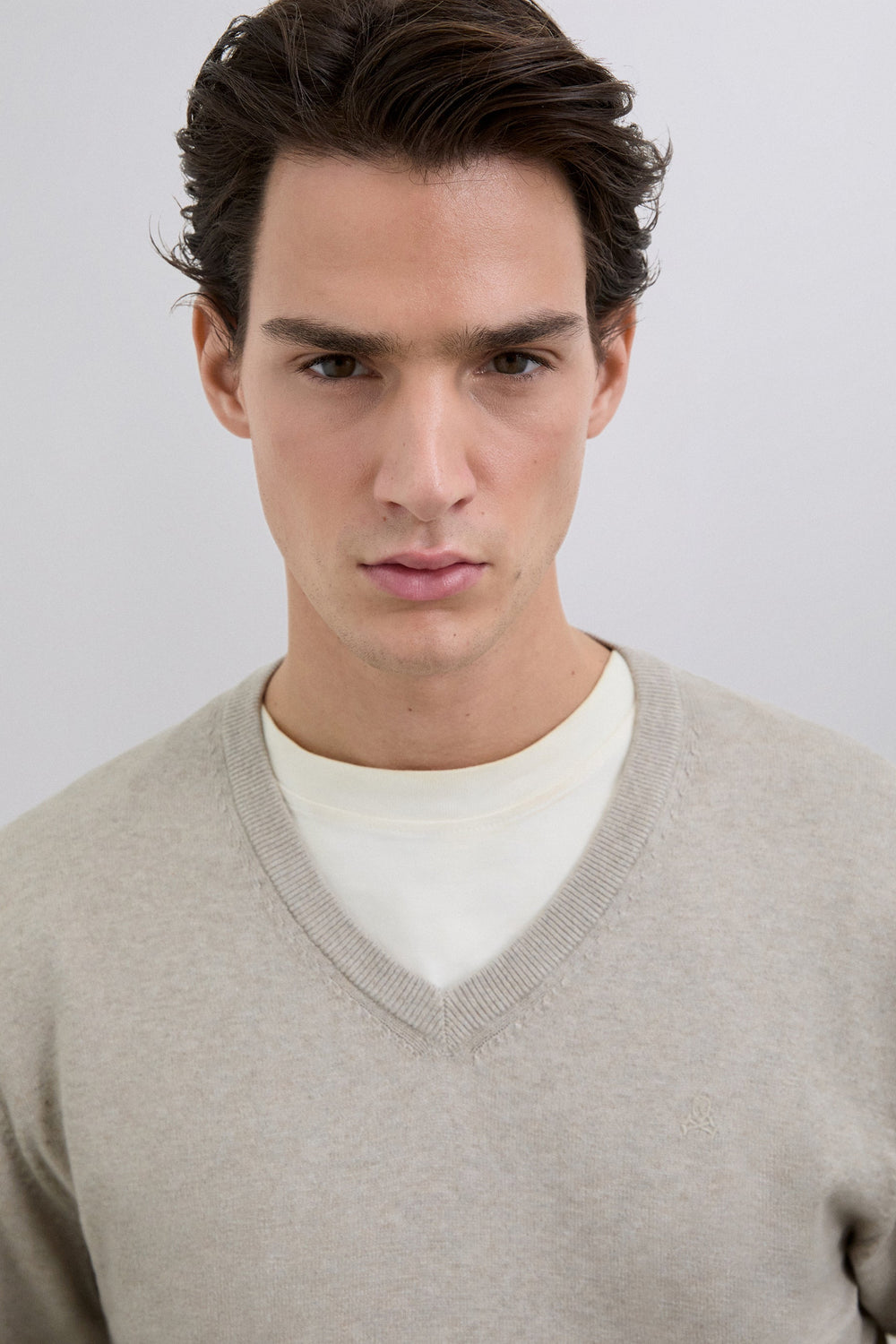 Sweater made of cotton. Regular fit. V-neck. Long sleeves. Ribbed cuffs and waistband. Matching embroidered skull detail on the chest.