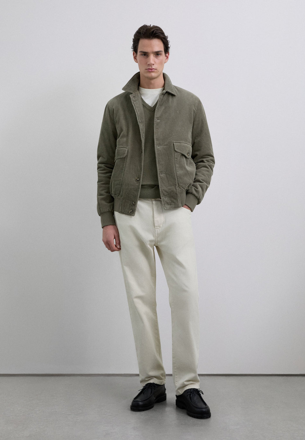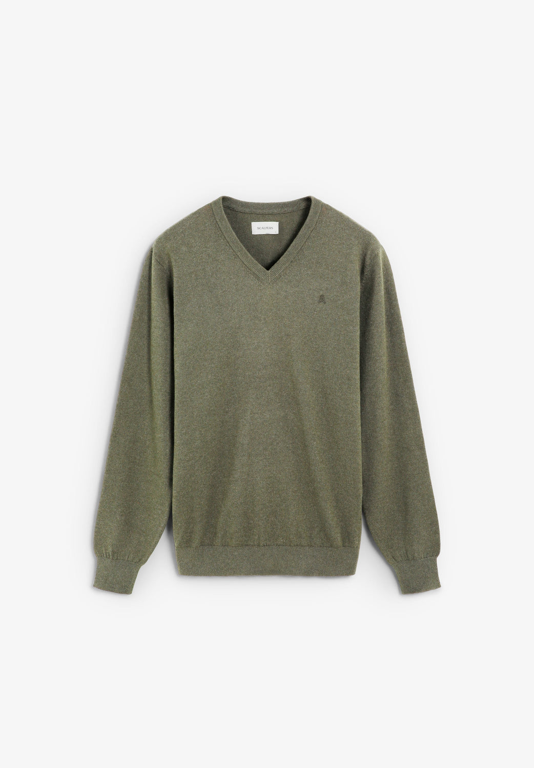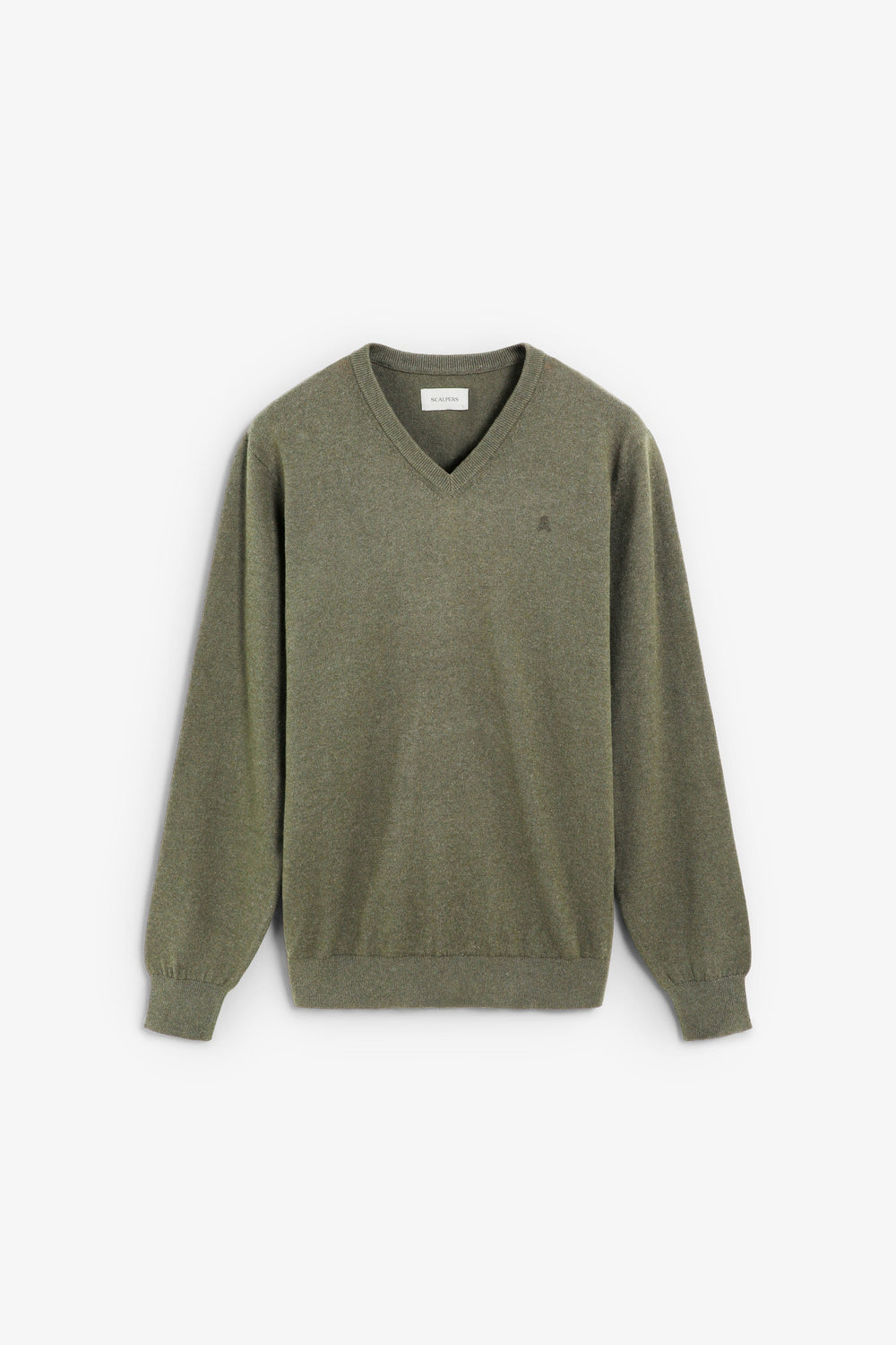 Sweater made of cotton. Regular fit. V-neck. Long sleeves. Ribbed cuffs and waistband. Matching embroidered skull detail on the chest.