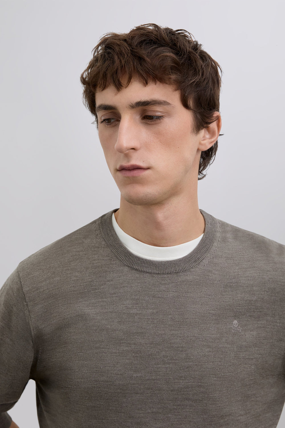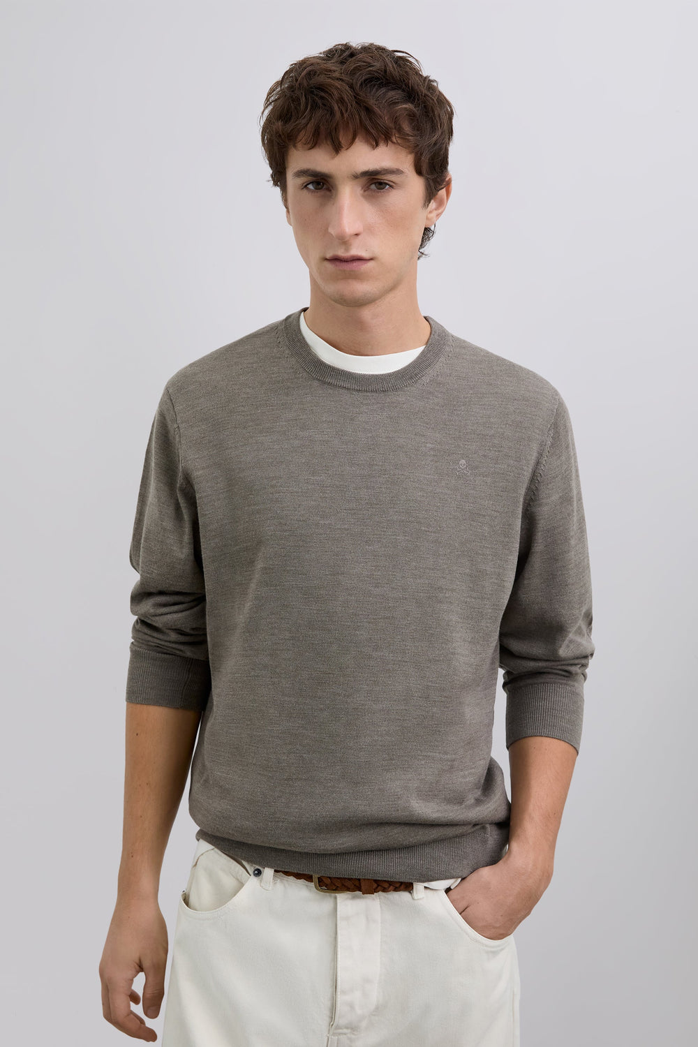 Sweater made of 100% wool. Regular Fit. Round neck. Long sleeves. Matching embroidered skull detail on the chest. Ribbed trim.