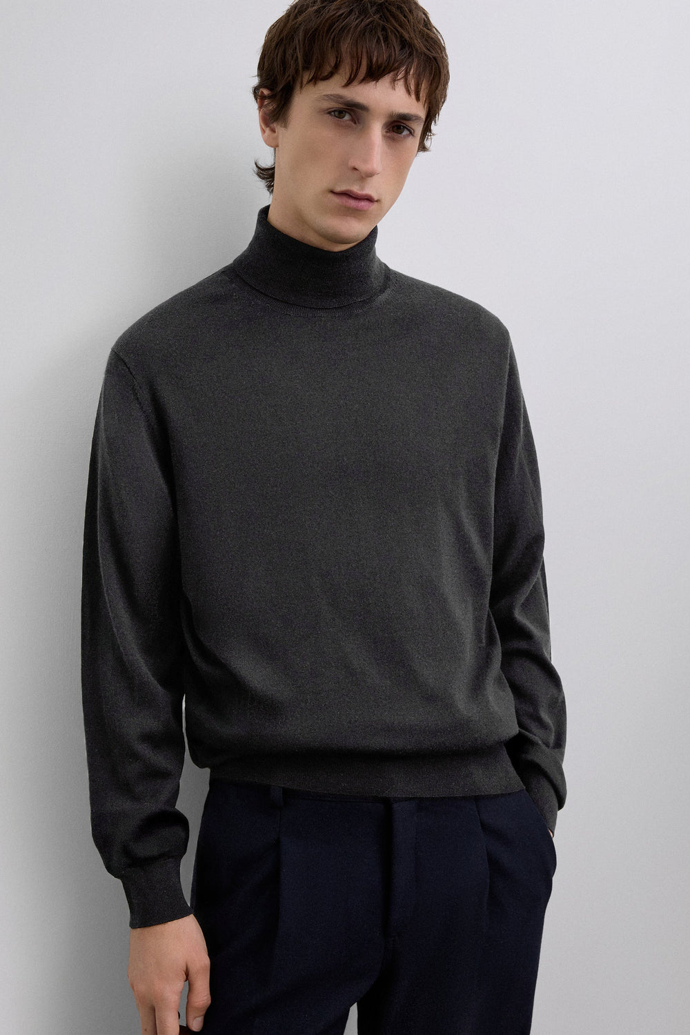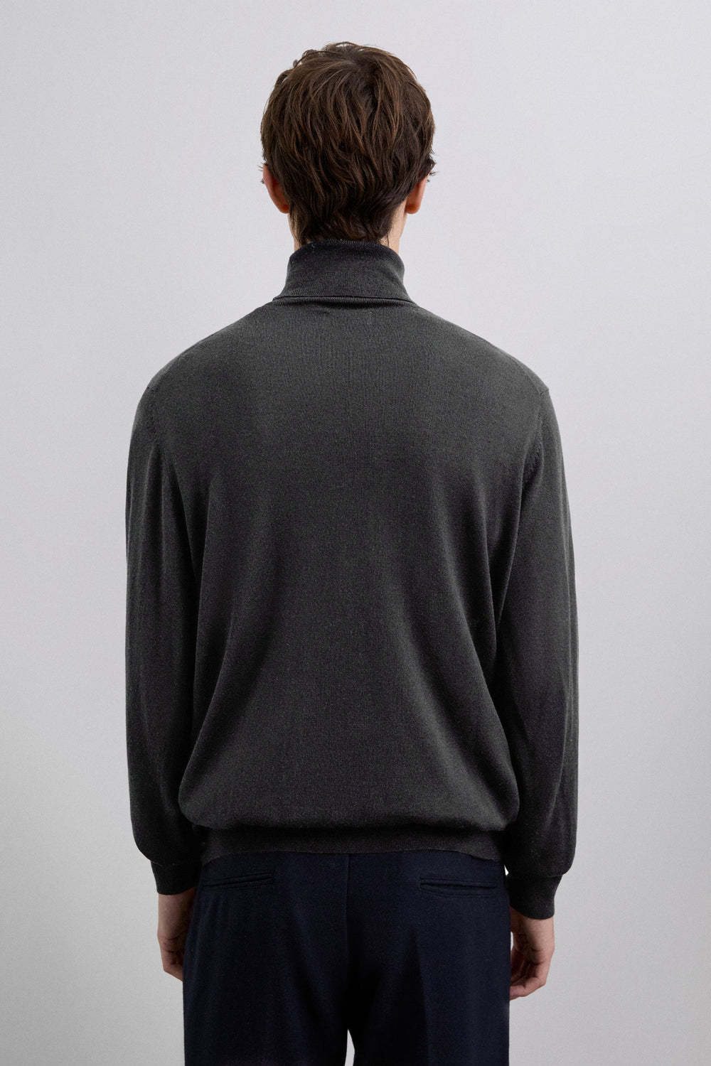 Sweater made of 100% merino wool. Long sleeves. Roll neck. Ribbed cuffs and hem. Matching embroidered skull detail on the chest.