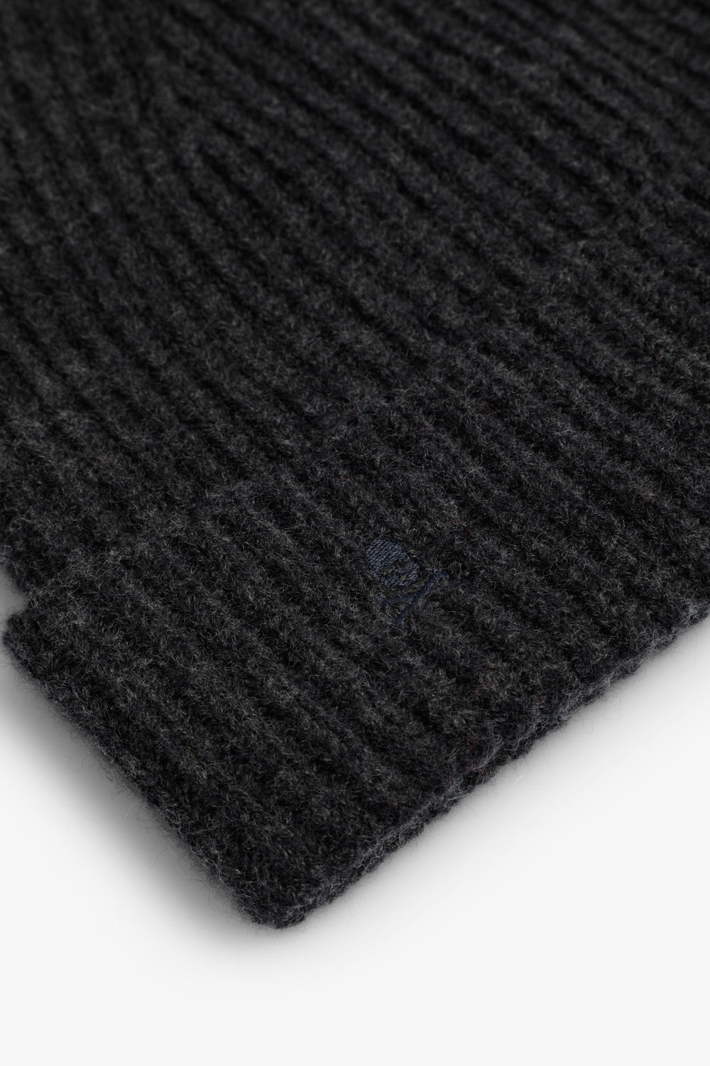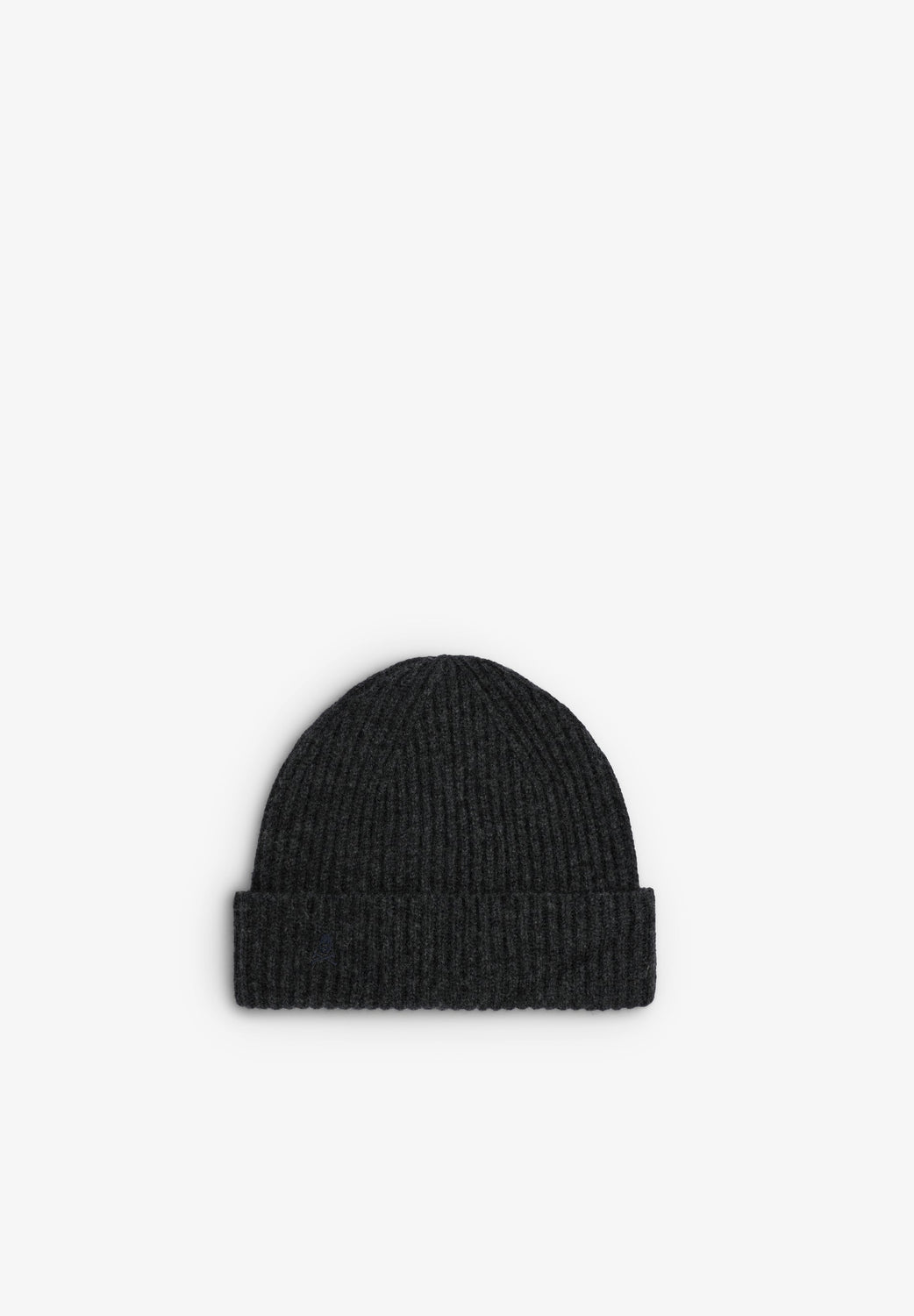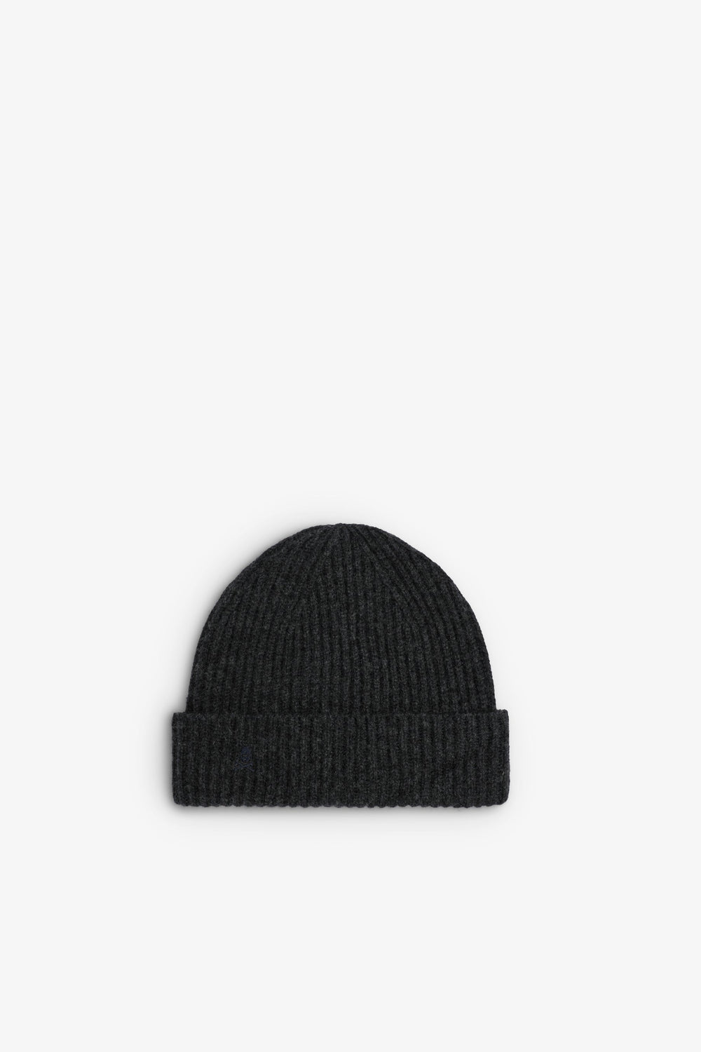 Knitted hat made of a wool and cashmere blend. Finished with a cuff. Tonal logo embroidery on the cuff.