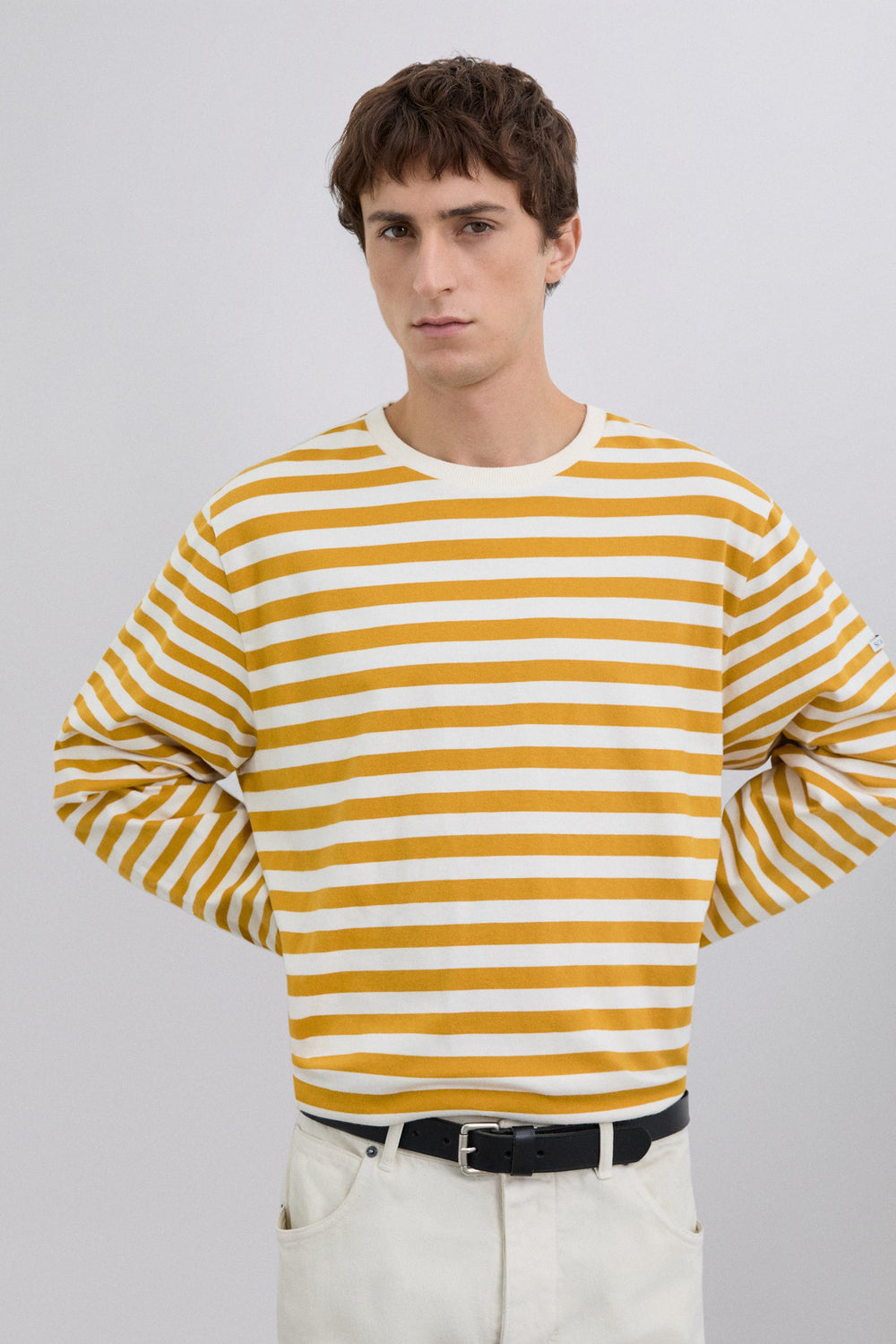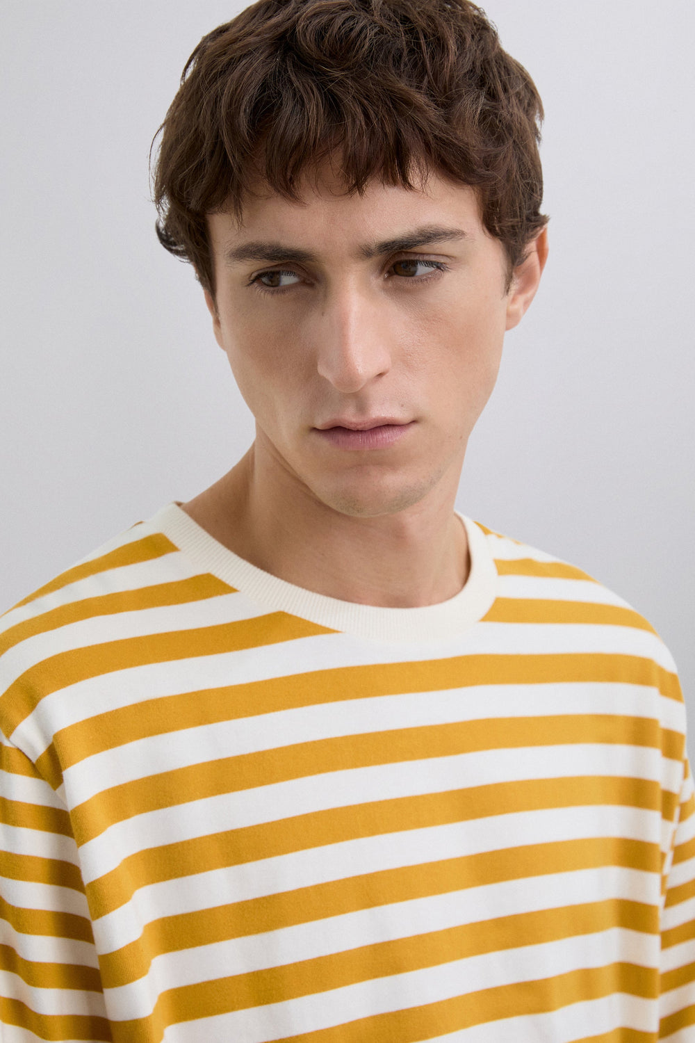 T-shirt with stripe print. Made of 100% BCI cotton. Regular fit. Round neck. Contrast neckline and cuff. Long sleeves.