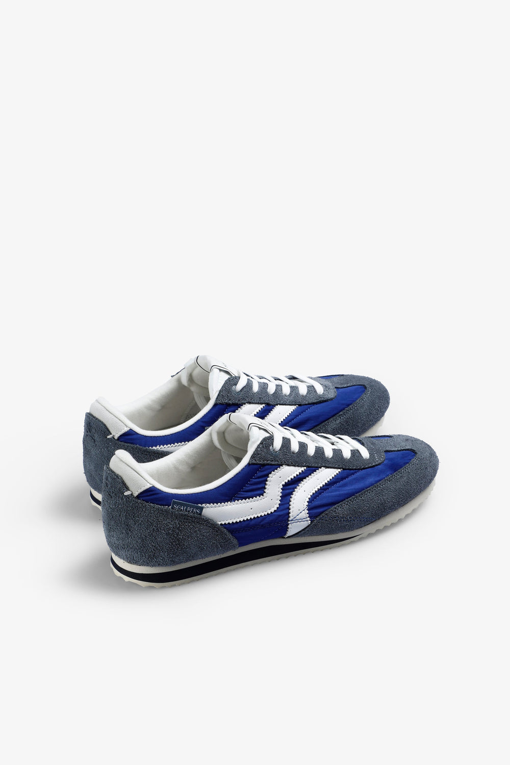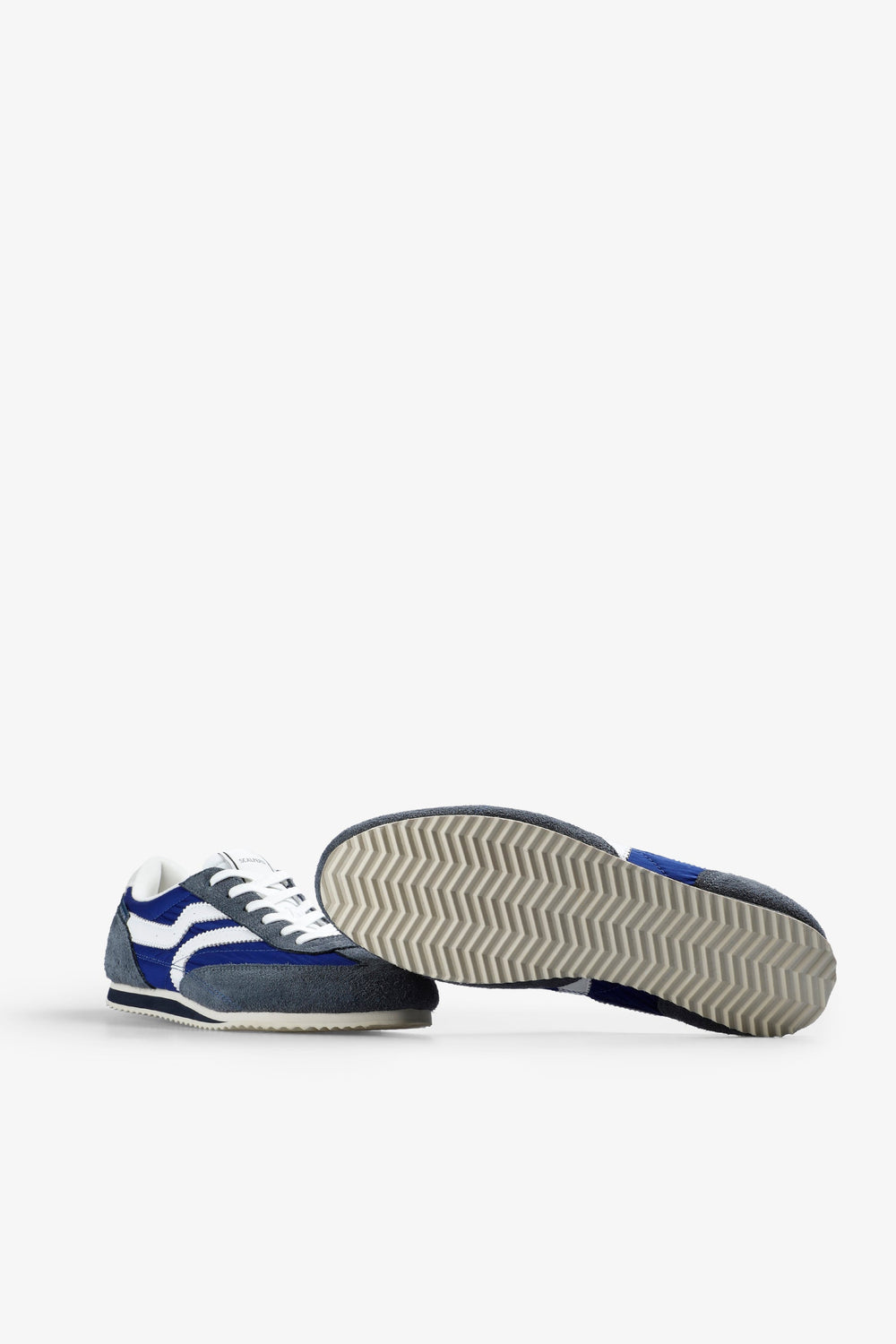Tennis style rétro. Dessus composé d’une combinaison de pièces en tissu technique et de détails en cuir finition croûte de cuir. Semelle fine à détail contrastant.