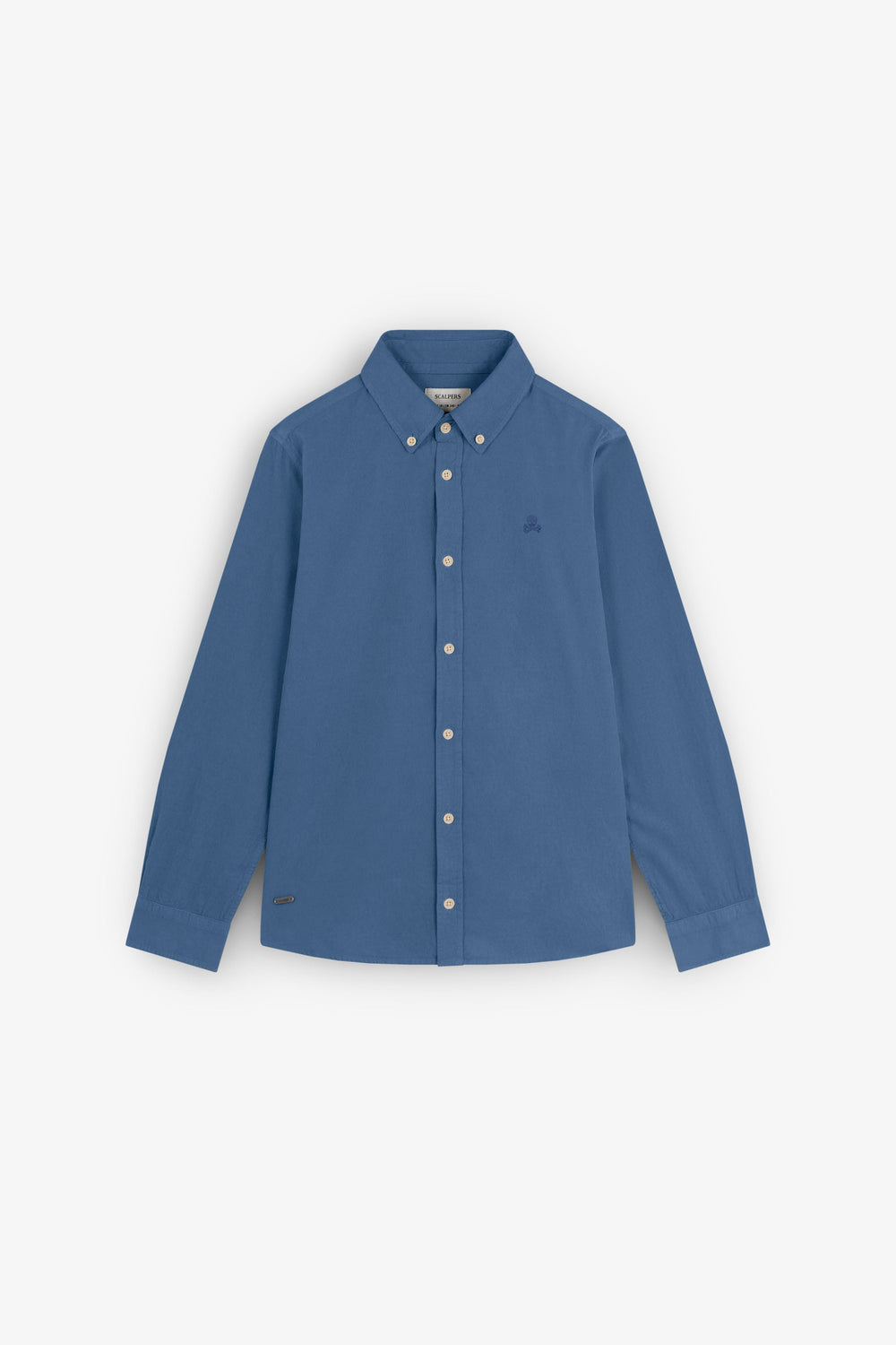 Oxford shirt made of 100% BCI cotton. Regular Fit. Classic collar and button fastening. Long sleeves with buttoned cuffs. Embroidered contrast skull on the chest. Detail of metallic lower front label with logo.