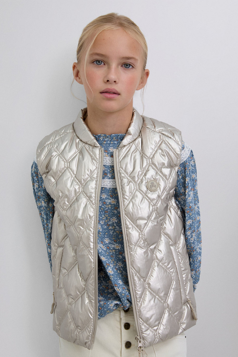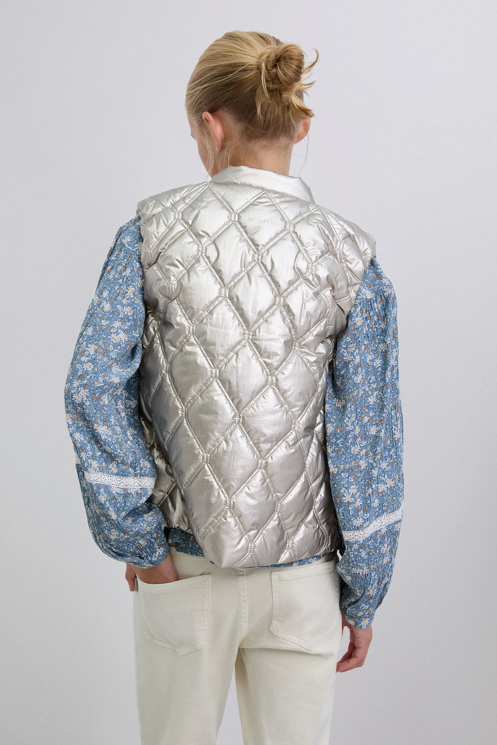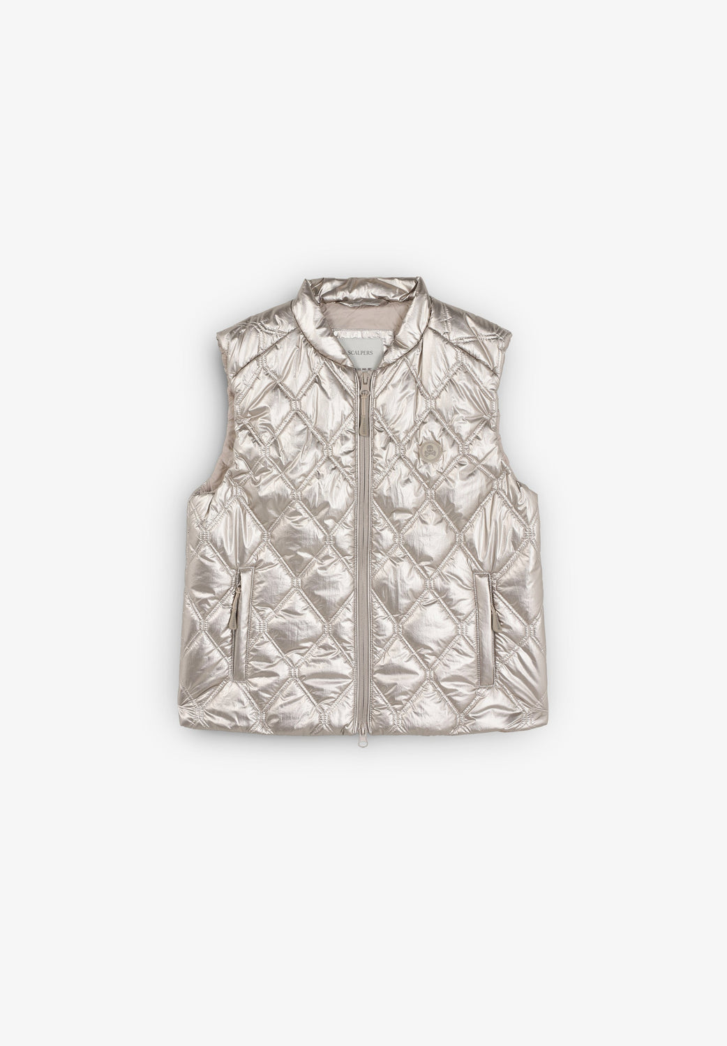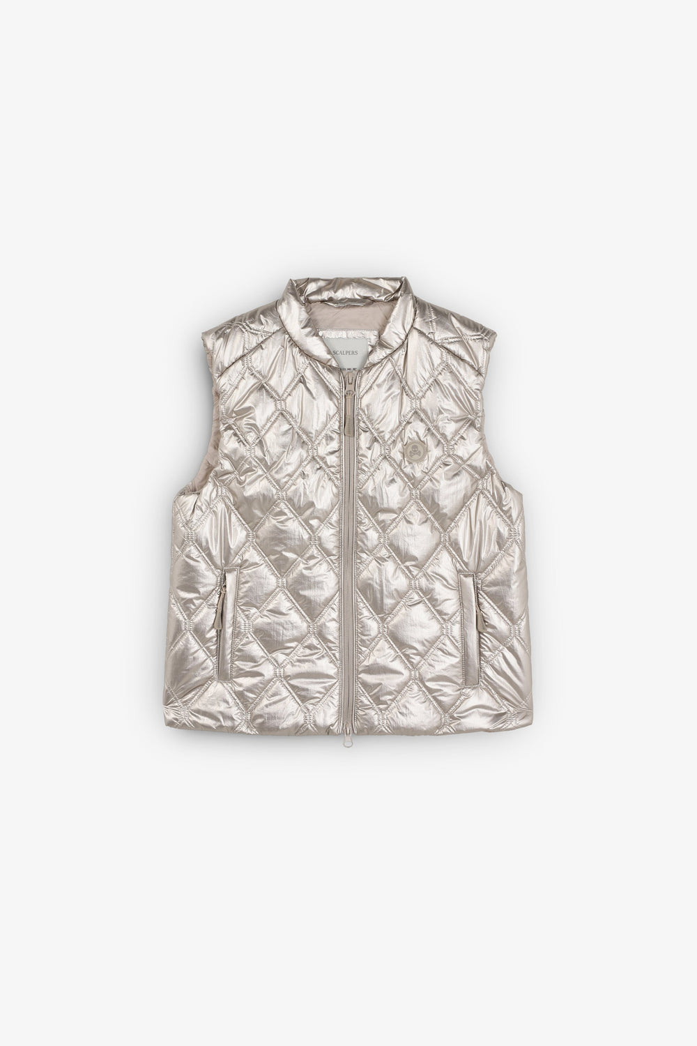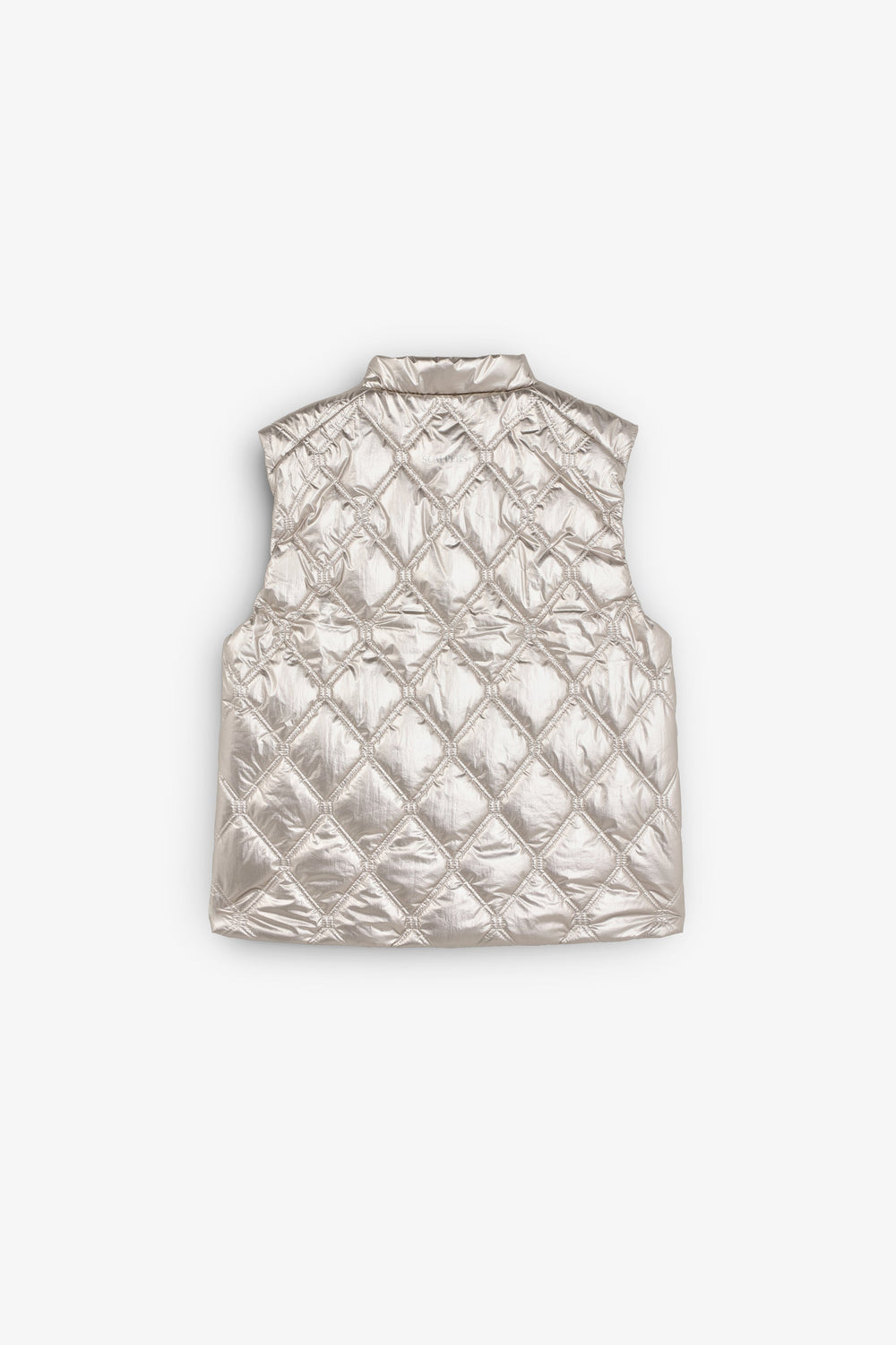 Reflective puffer vest. Front double slider zip fastening. Two front pockets. Rubberised patch with logo on chest. Logo detail on the back.