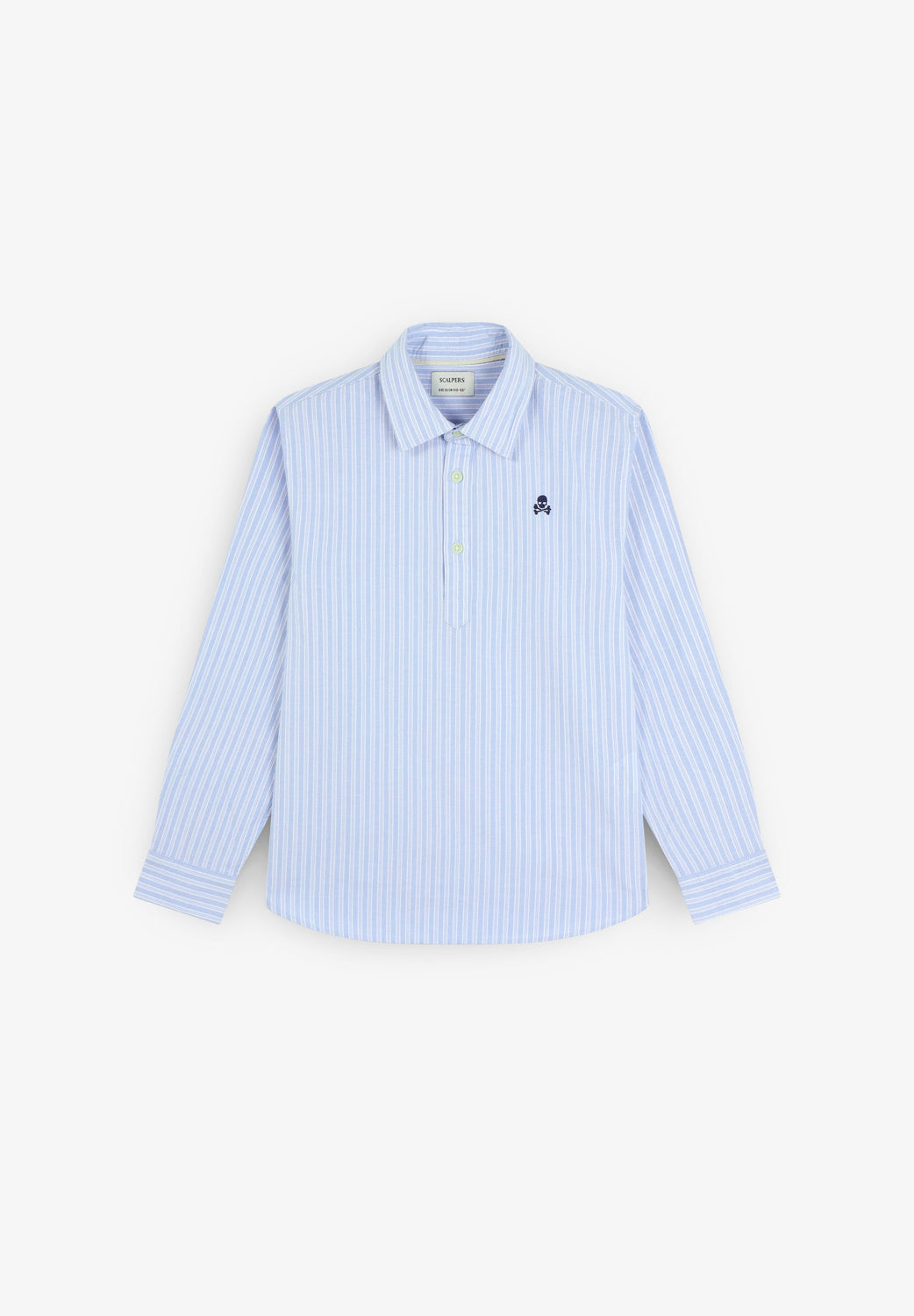 Striped polo shirt made of 100% BCI cotton. Classic collar, button fastening, regular fit, contrast skull on chest. Buttoned cuffs.