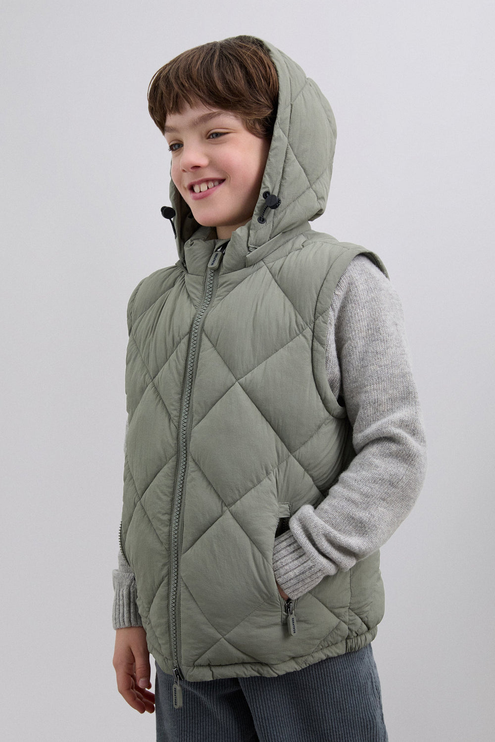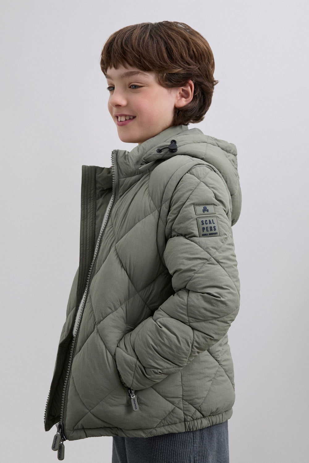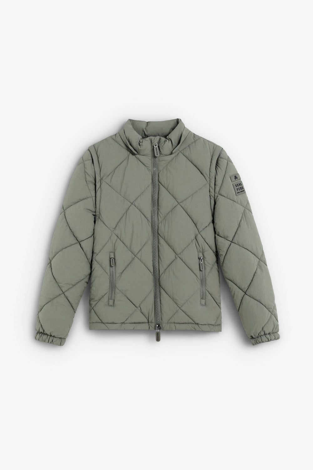 Jacket with hood and detachable long sleeves. Zip closure. Rubberised logo on sleeve. Front pocket. Logo detail at the neck.