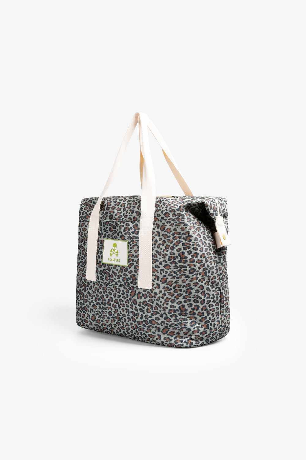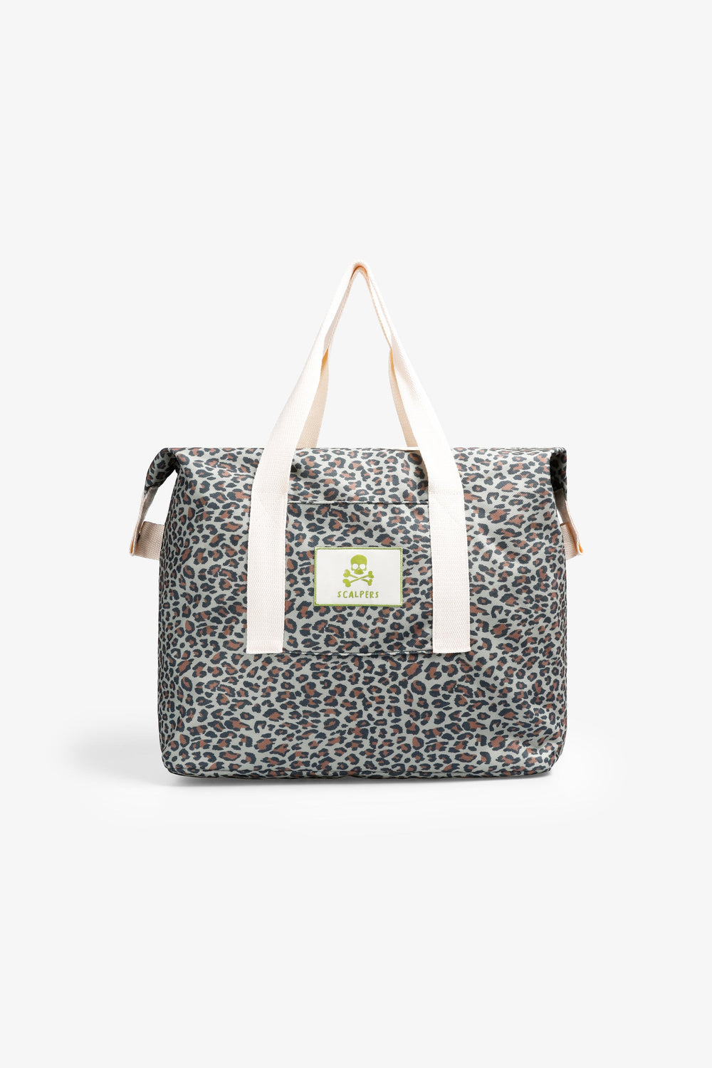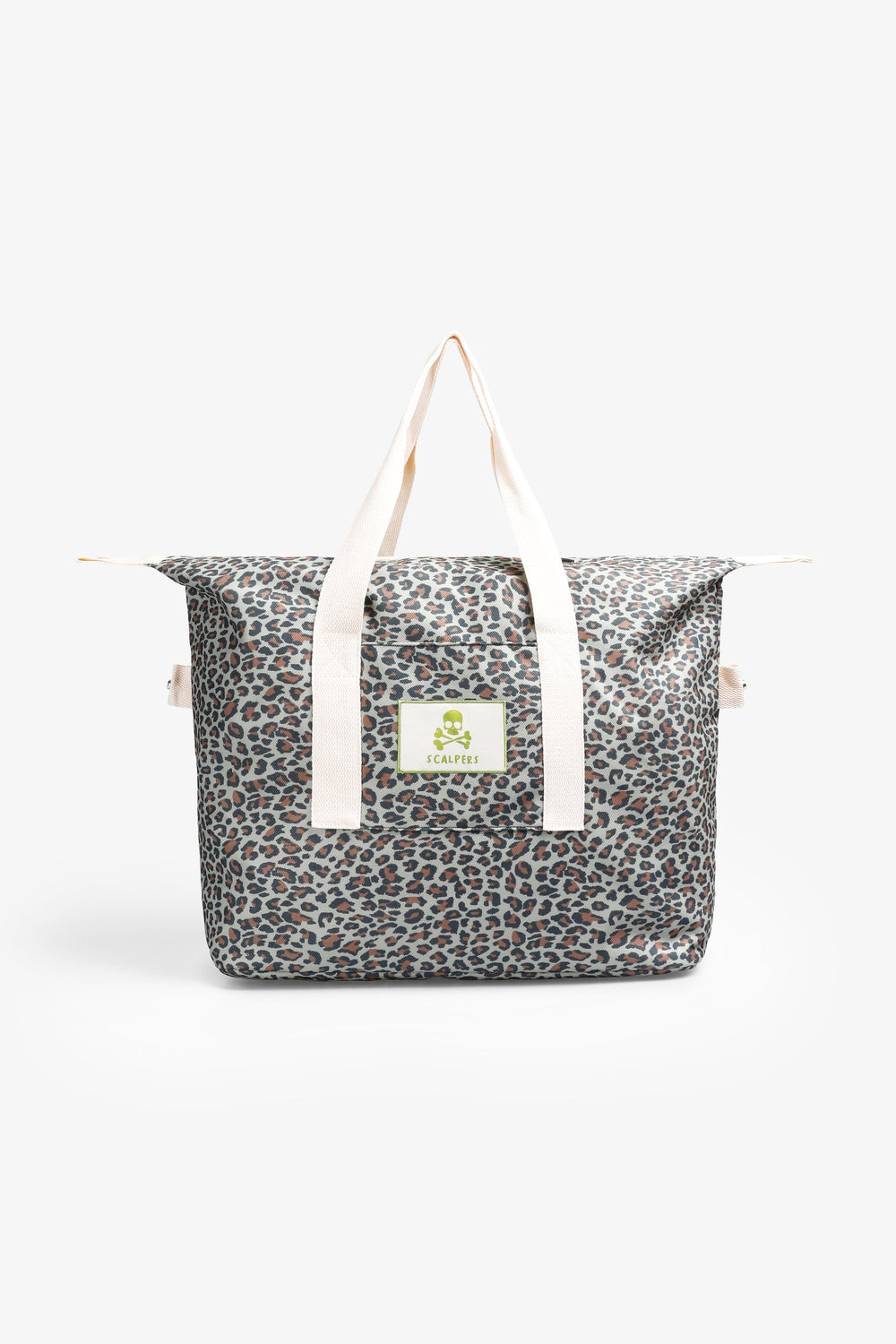 Bag with double strap. Animal print. Embroidered front label with logo and skull. Zip fastening. Logo detail on the inside.