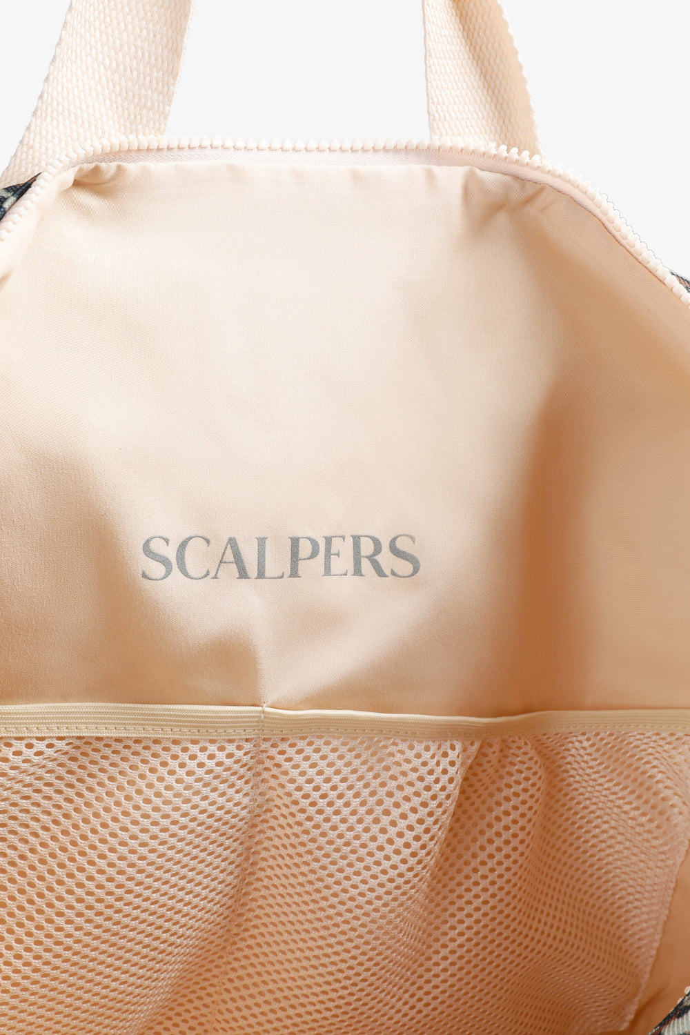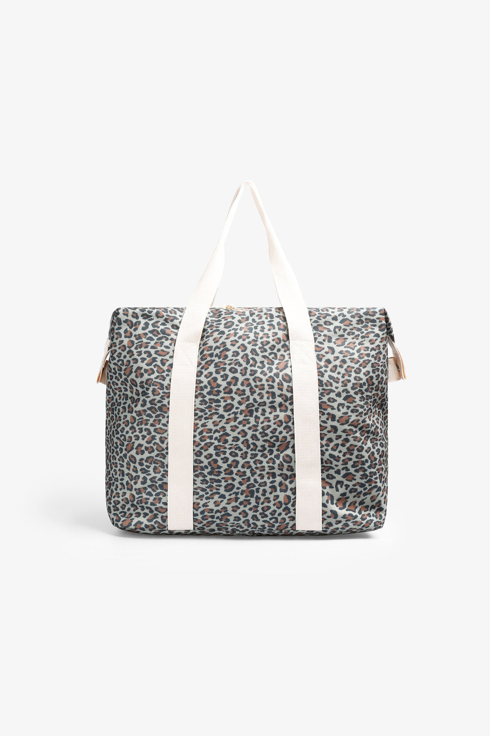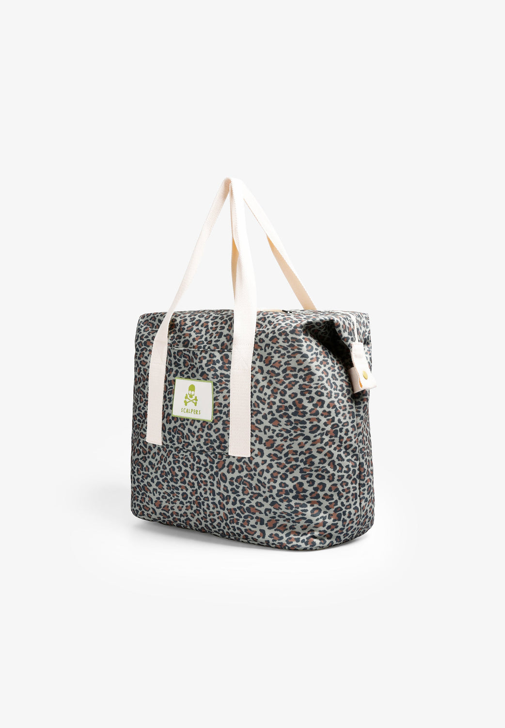 Bag with double strap. Animal print. Embroidered front label with logo and skull. Zip fastening. Logo detail on the inside.