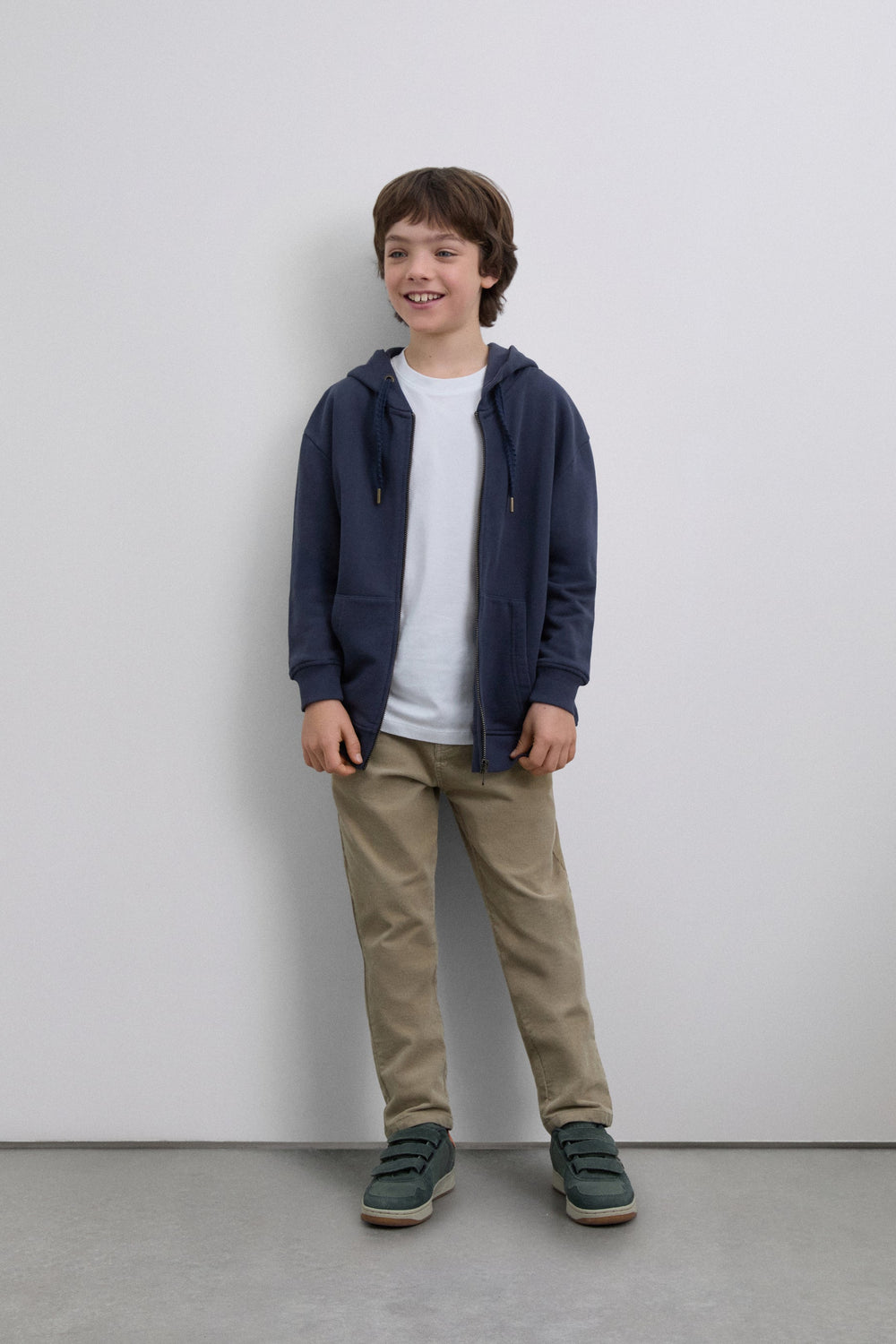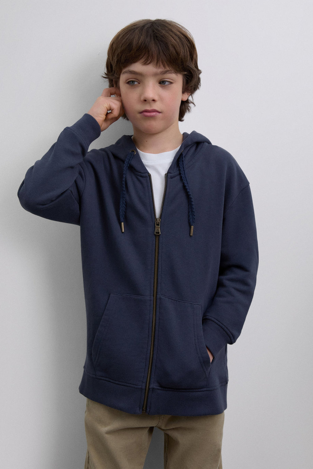 Sweatshirt made of 100% BCI cotton. Hood. Long sleeves. Ribbed trim. Front zip fastening and front pockets. Embroidered logo on the back.