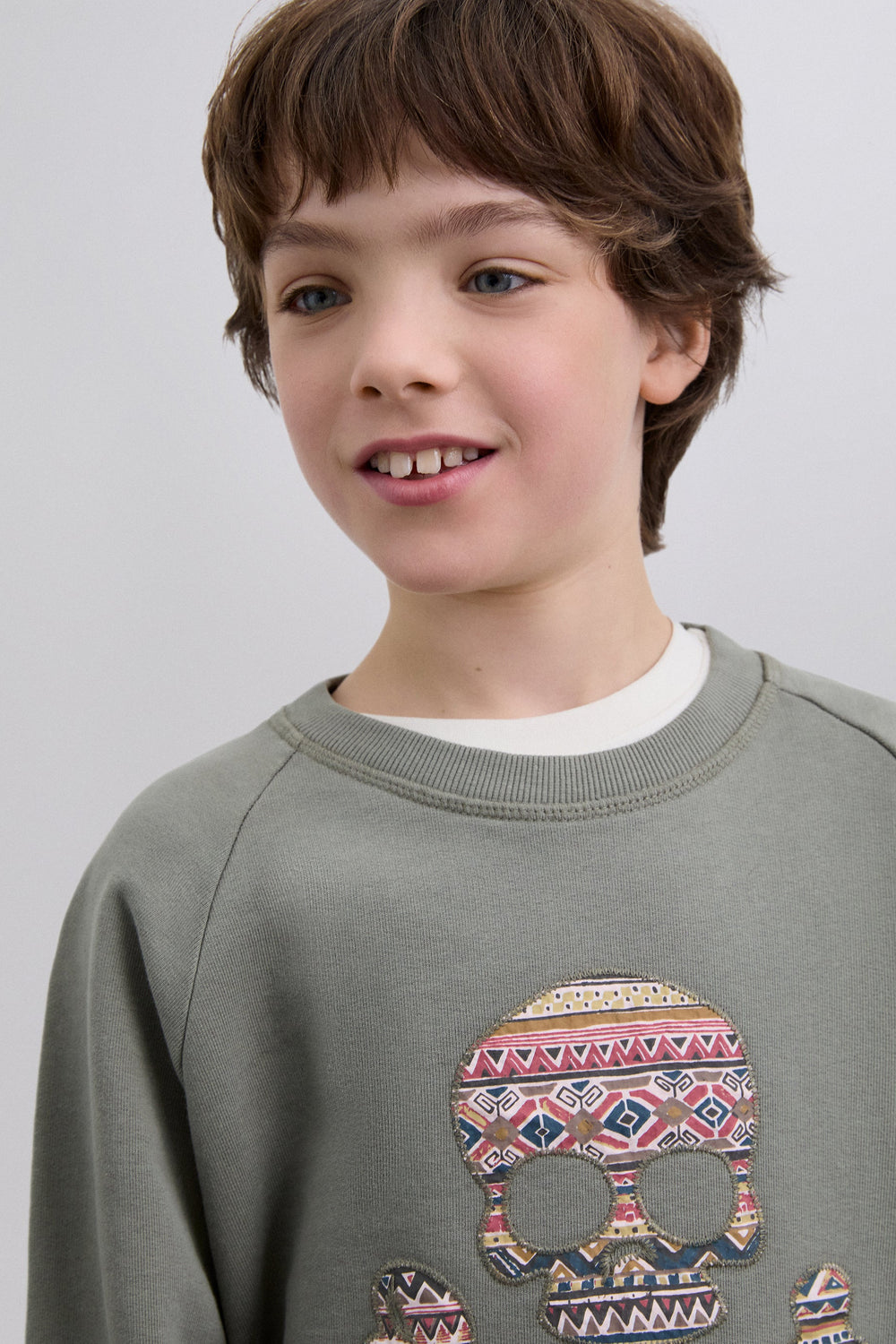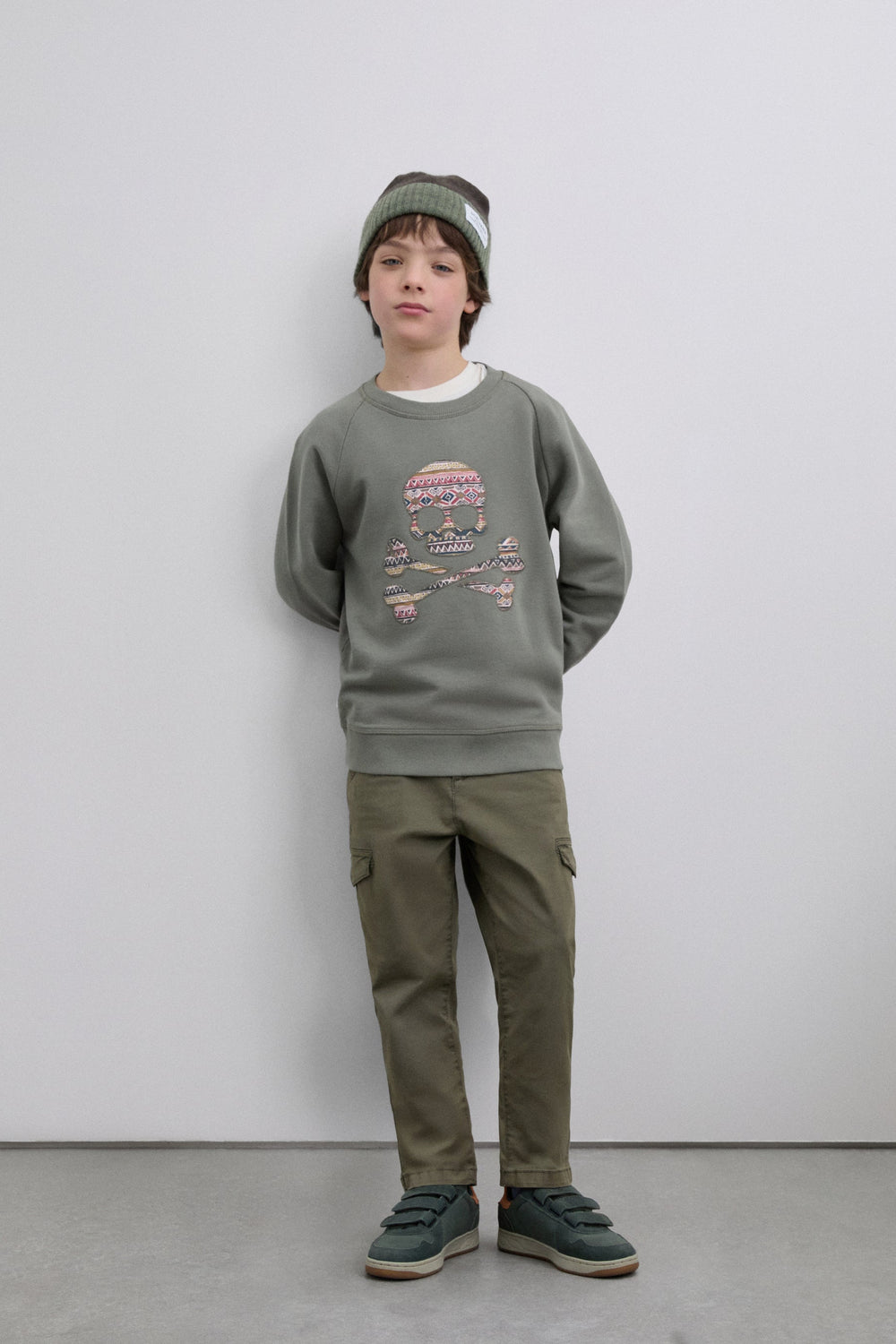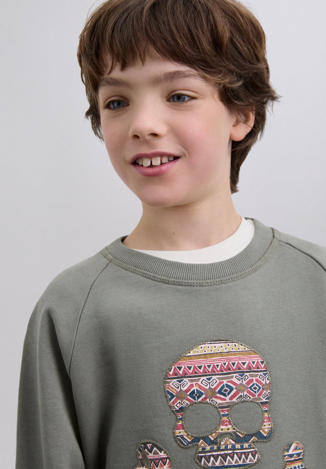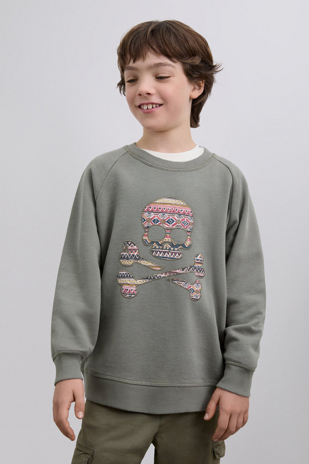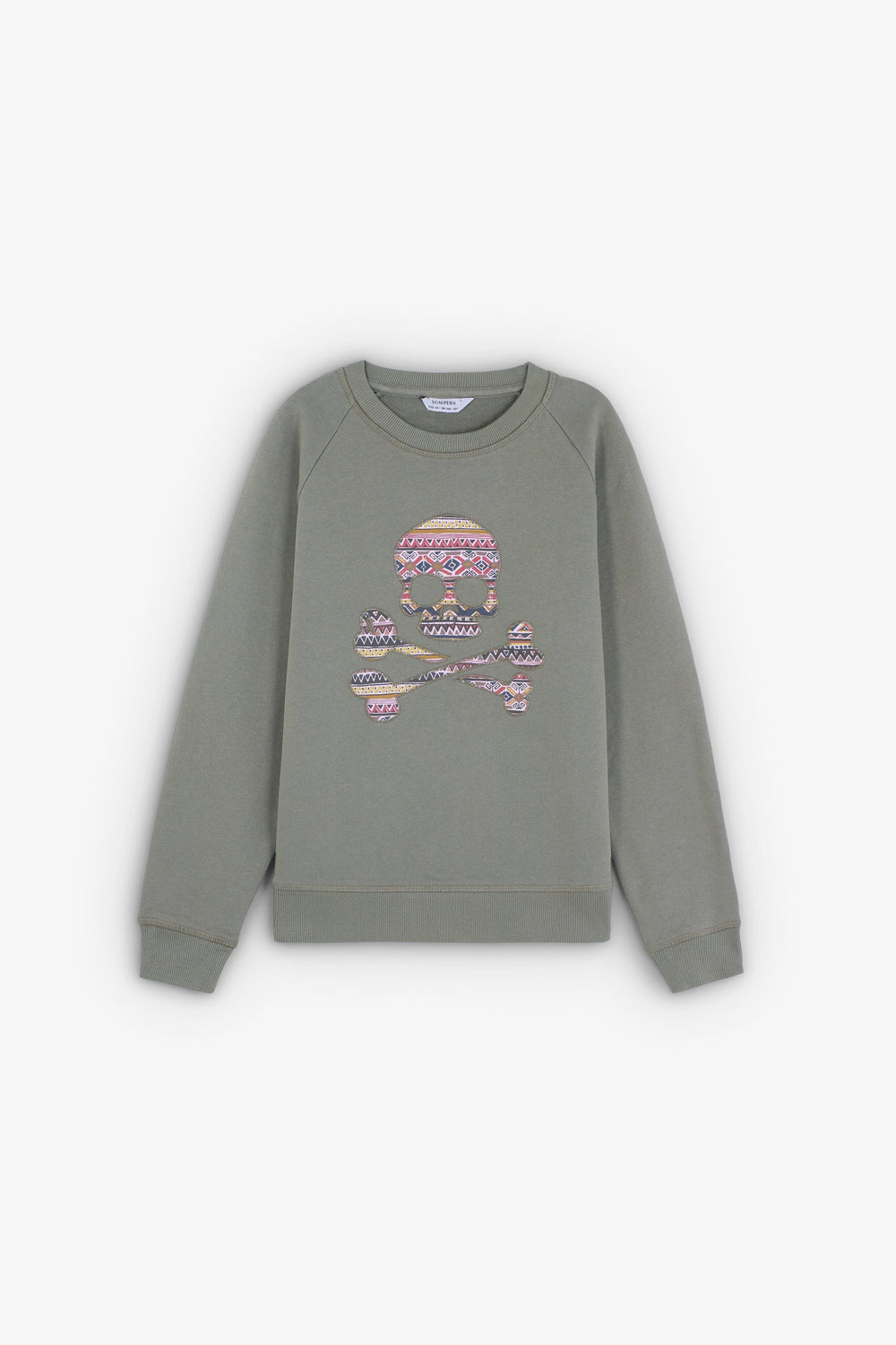 Sweatshirt made of 100% BCI cotton. Regular fit. Round neck. Long sleeves. Front skull print. Ribbed trim.