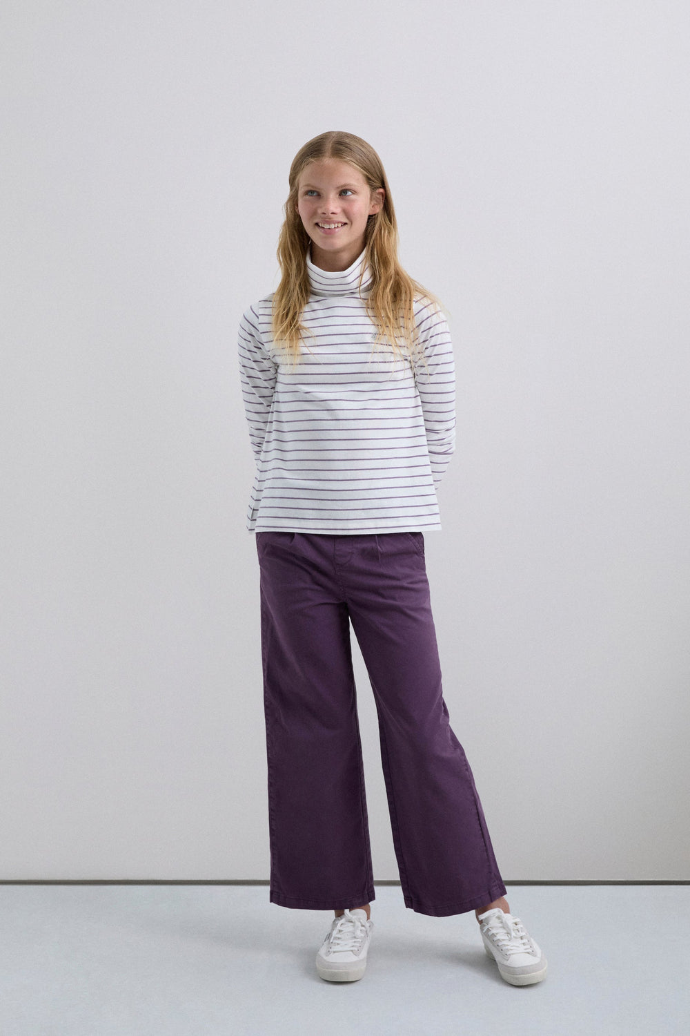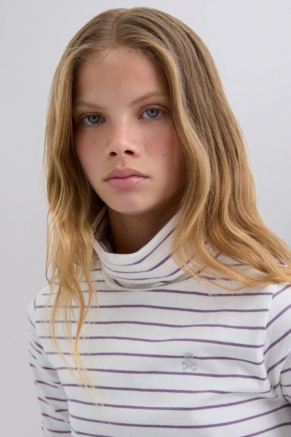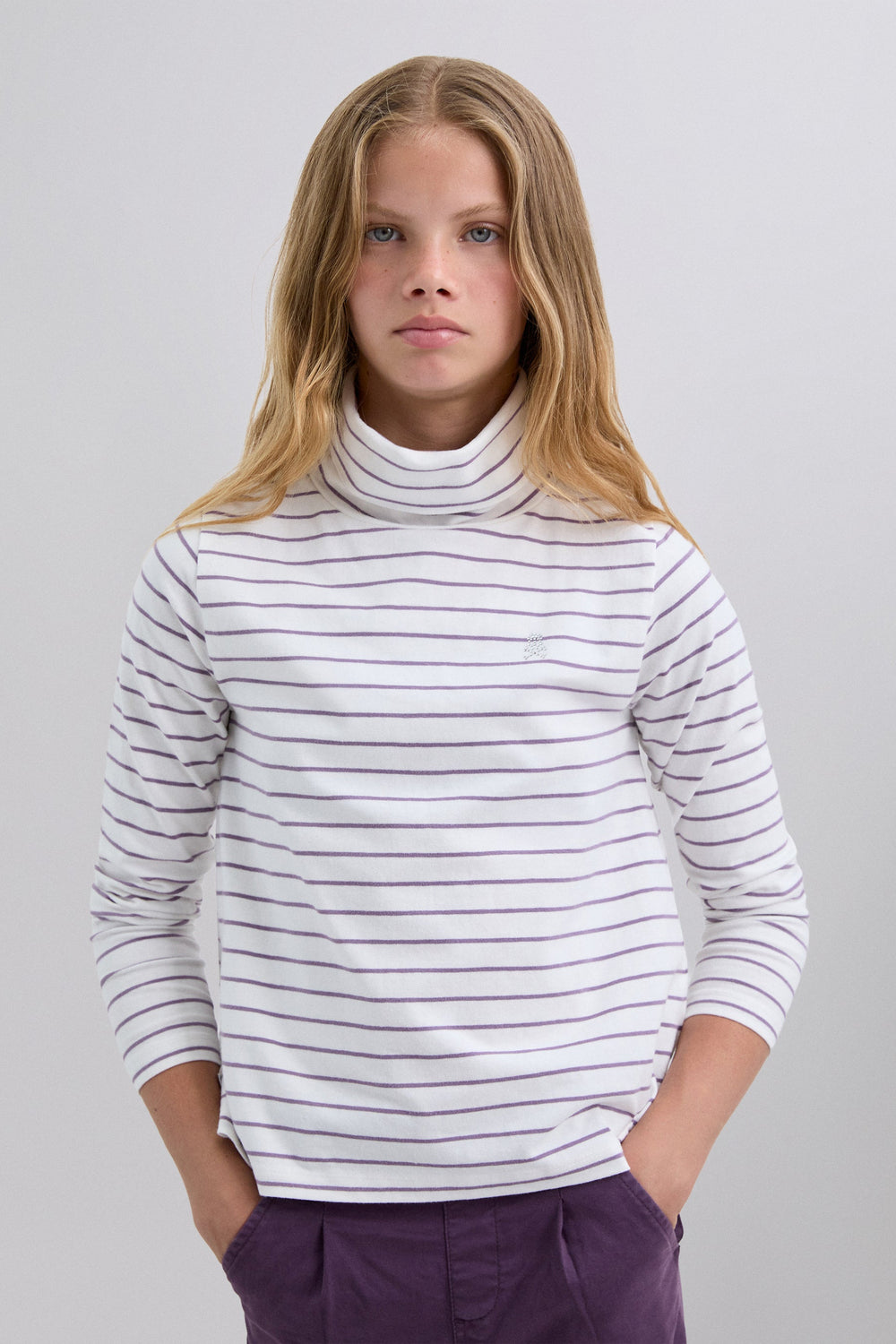 Striped T-shirt made of 100% BCI cotton. Long sleeves and turn-down collar. Logo detail on the chest.