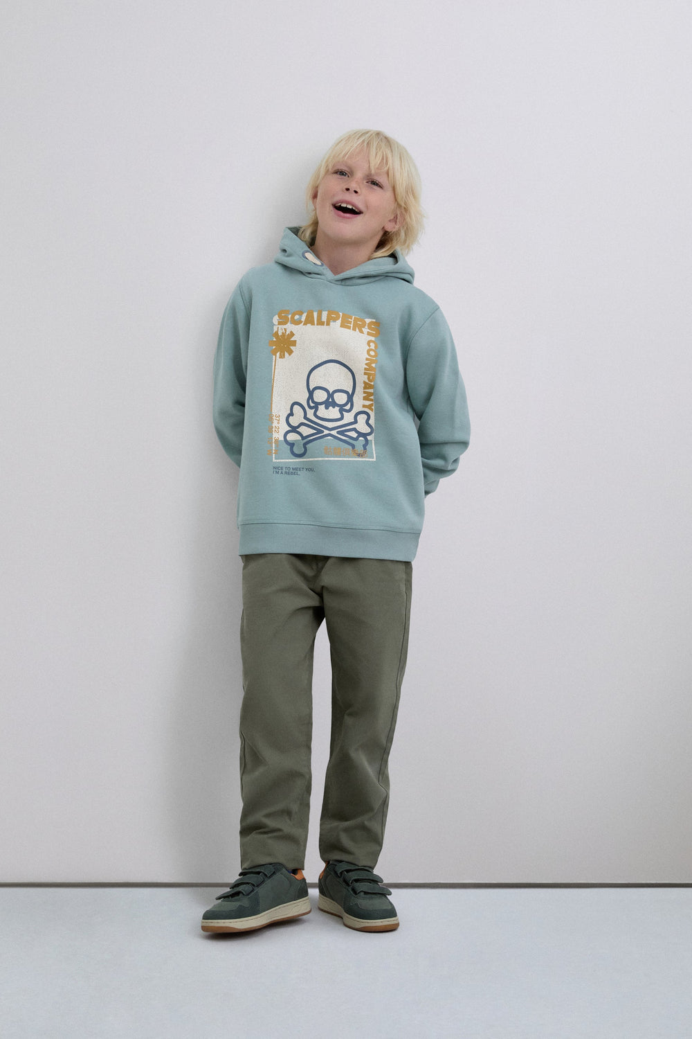 Sweatshirt with adjustable hood. Regular fit. Long sleeves. Front print with logo and skull. Ribbed trim.