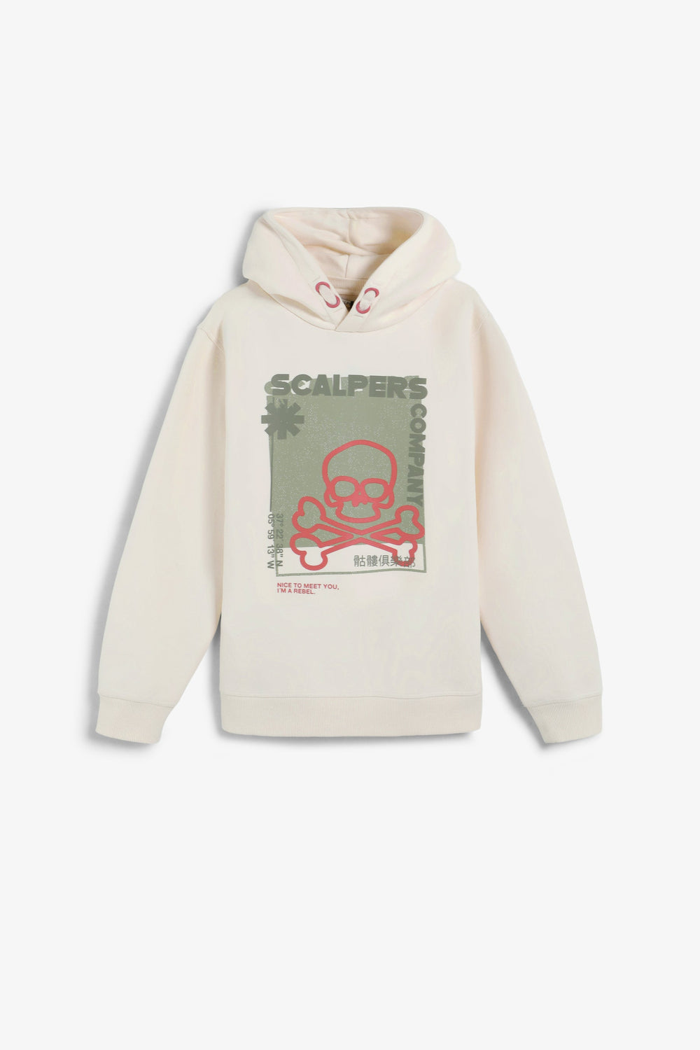 Sweatshirt with adjustable hood. Regular fit. Long sleeves. Front print with logo and skull. Ribbed trim.