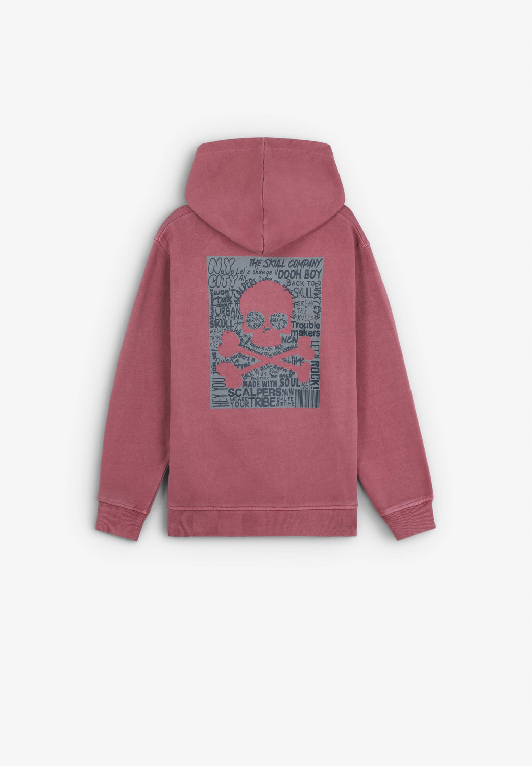 Sweatshirt with hood made of 100% BCI cotton. Print on chest and back. Long sleeves with cuffs and front pouch pockets. Skull label detail on waistband.