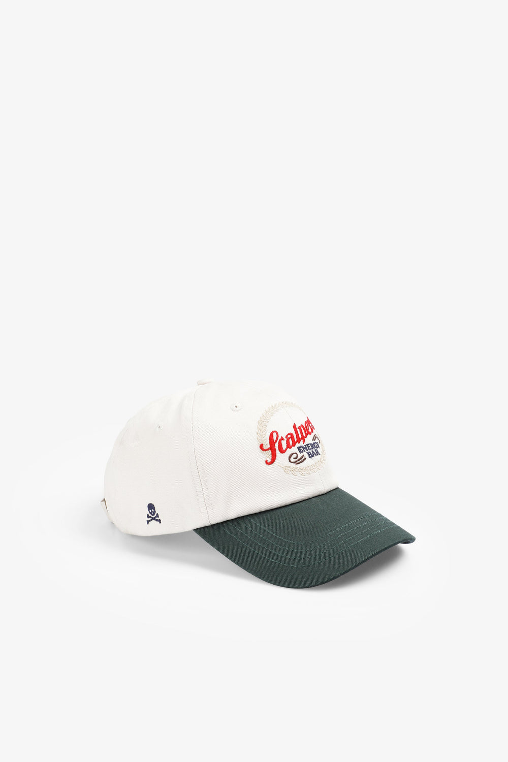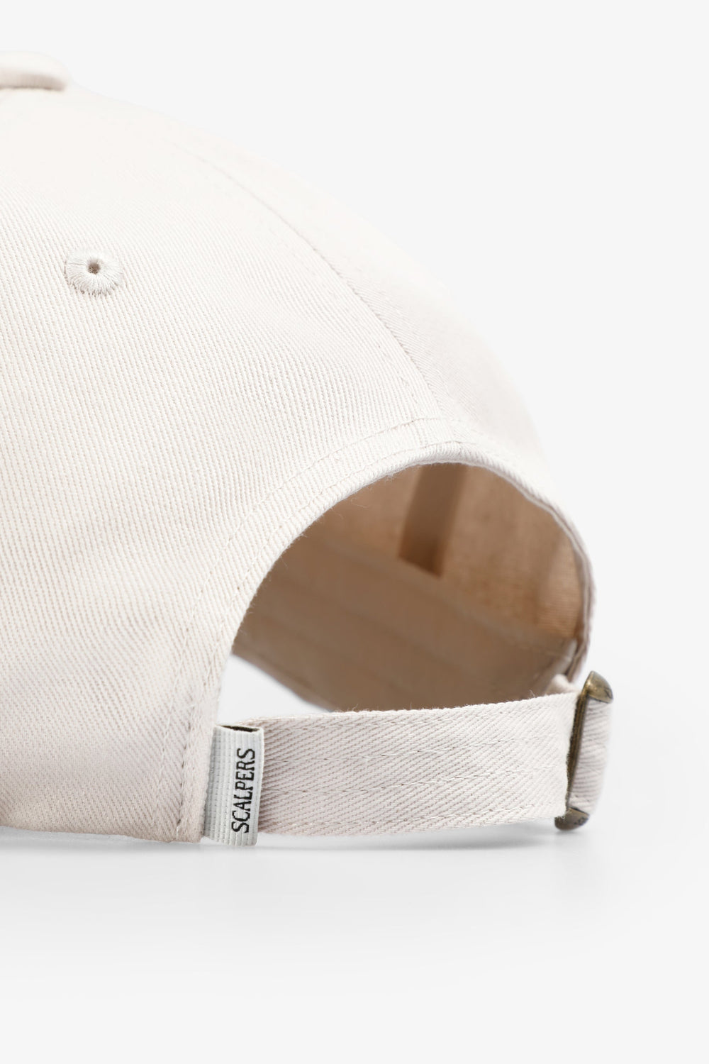 Cap made of 100% cotton. Embroidered front logo. Adjustable back fastening and contrast embroidered skull on the side. Logo label detail at the back. Contrast visor.
