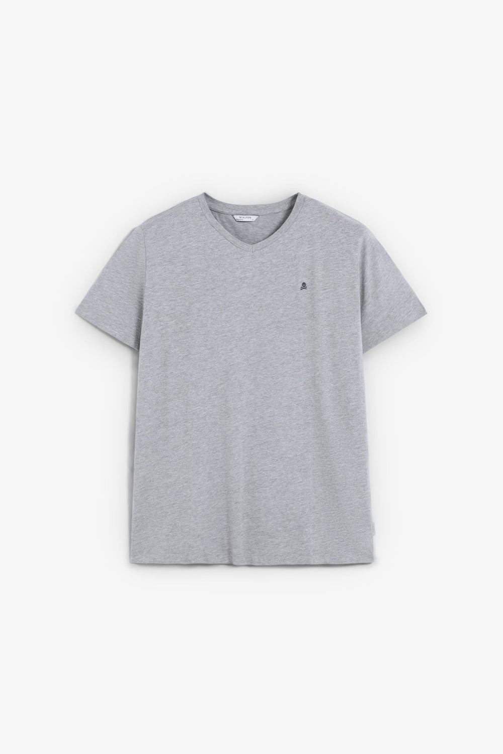Camiseta básica con calavera bordada. Confeccionada en 100% algodón BCI. Corte Regular Fit. Cuello en pico. Manga corta.
